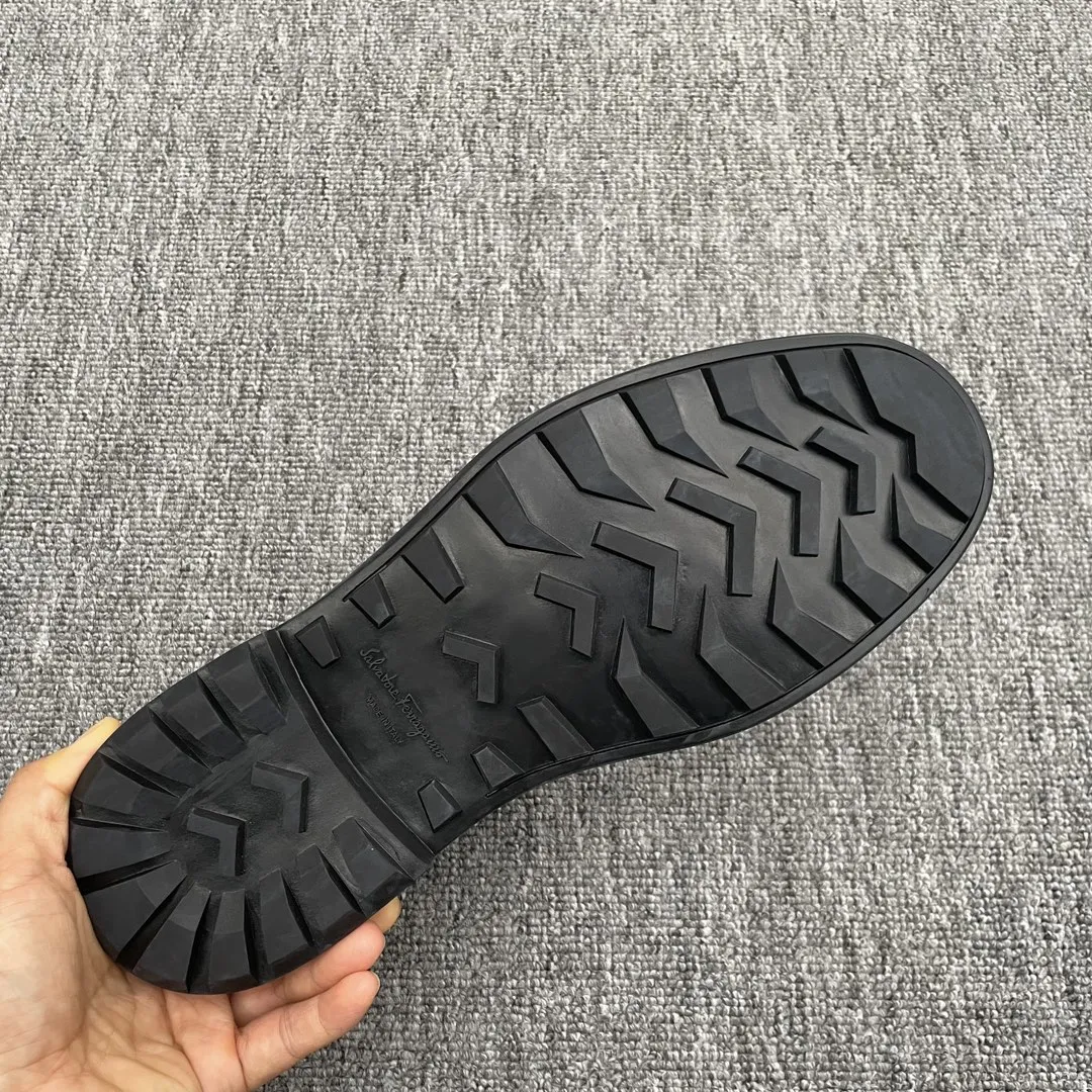 Верх выполнен из мягкой и блестящей лакированной коровьей кожи, импортированной специально для Ferragamo. Специальная легкая подошва с логотипом обеспечивает отличное сцепление и долговечность, не жертвуя при этом элегантностью.