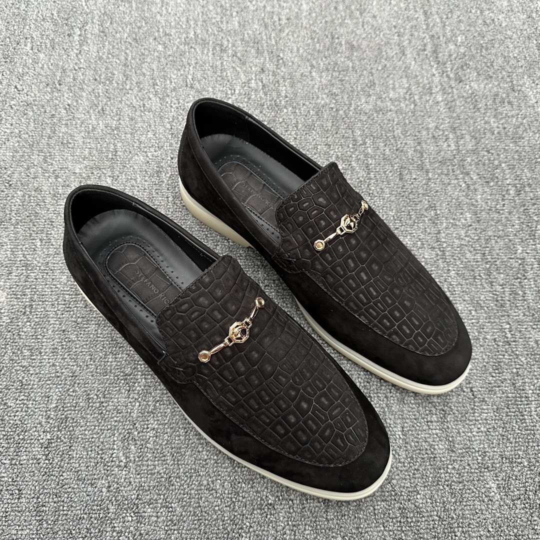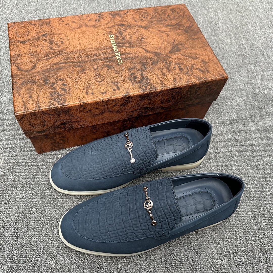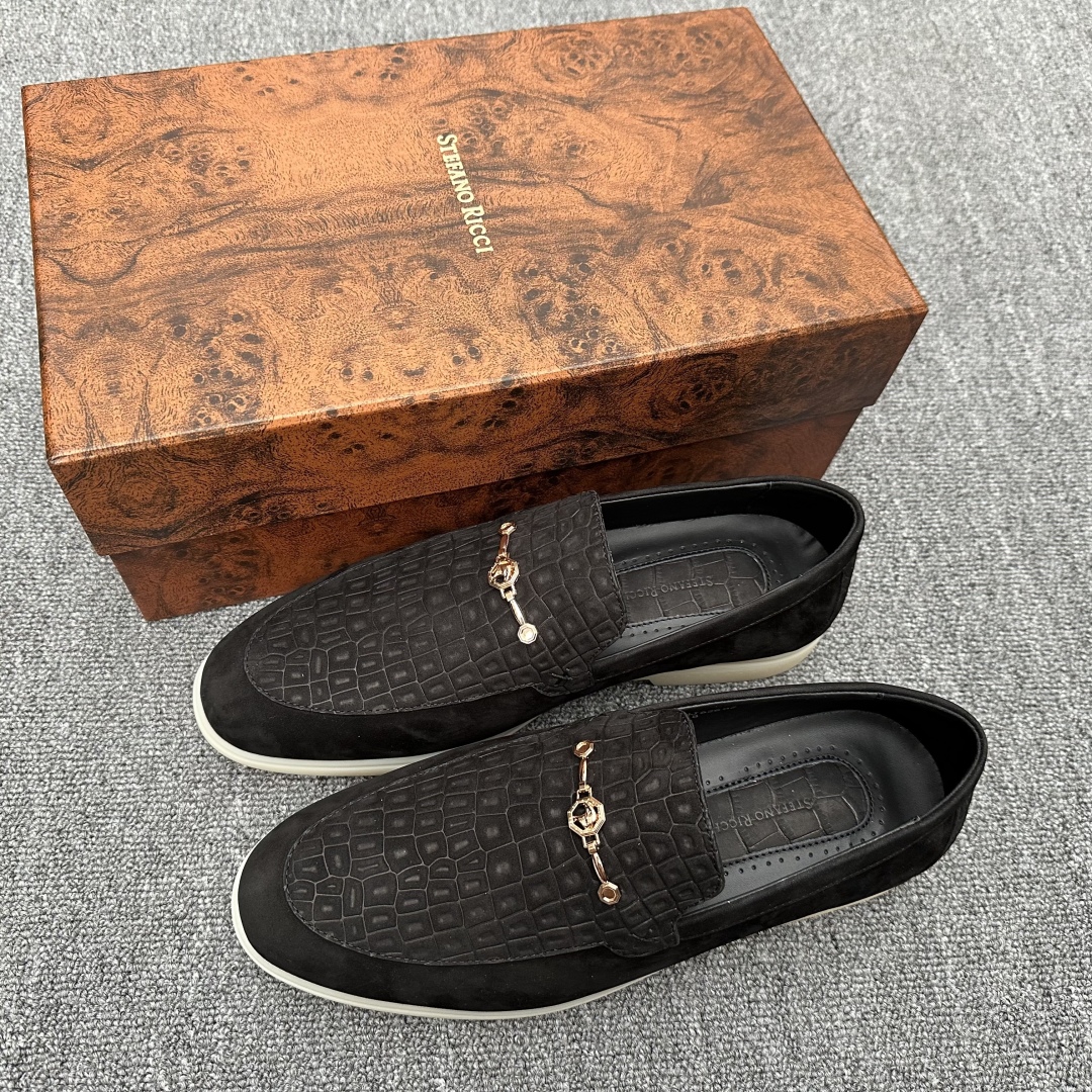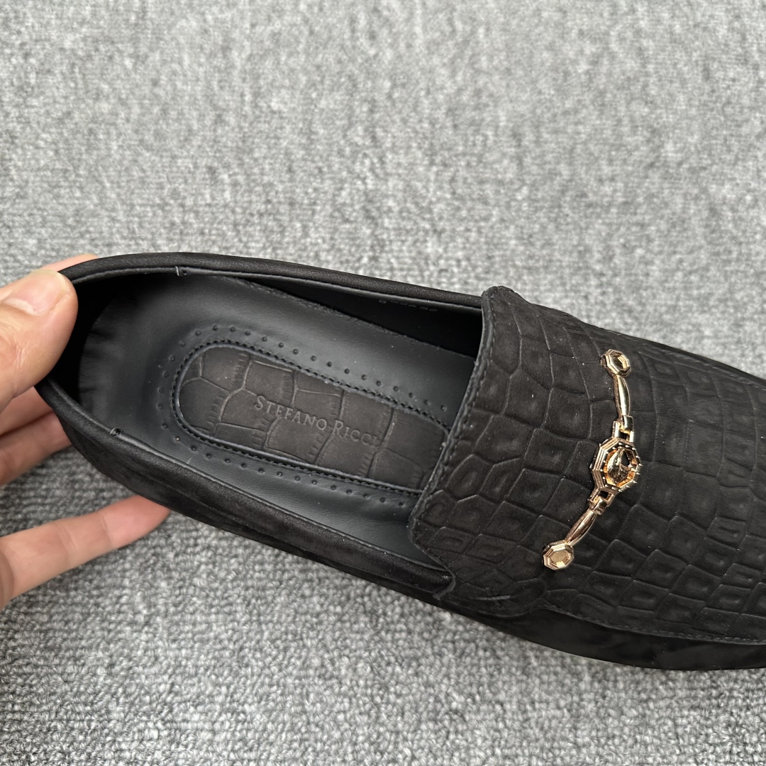 Элегантные мужские лоферы Stefano Ricci — воплощение итальянского стиля и роскоши. Верх пары выполнен из высококачественной натуральной кожи коровы с фактурным тиснением "под крокодила", что придаёт обуви особую изысканность. Внутренняя отделка — натуральная гладкая кожа, обеспечивающая максимальный комфорт и долговечность при ежедневной носке.