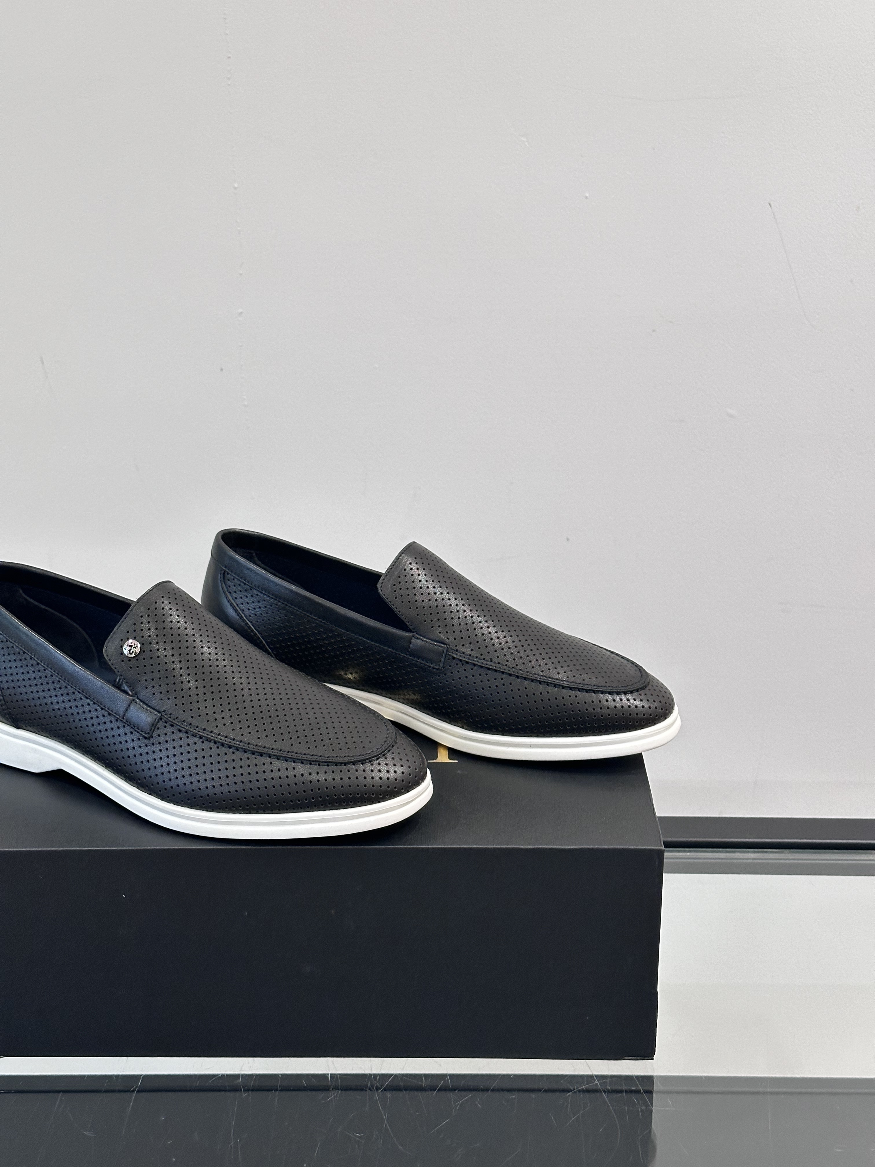 Лаконичный дизайн лоферов, дополненный фирменной металлической эмблемой, идеально подойдёт как для повседневных образов, так и для неформальных деловых встреч.