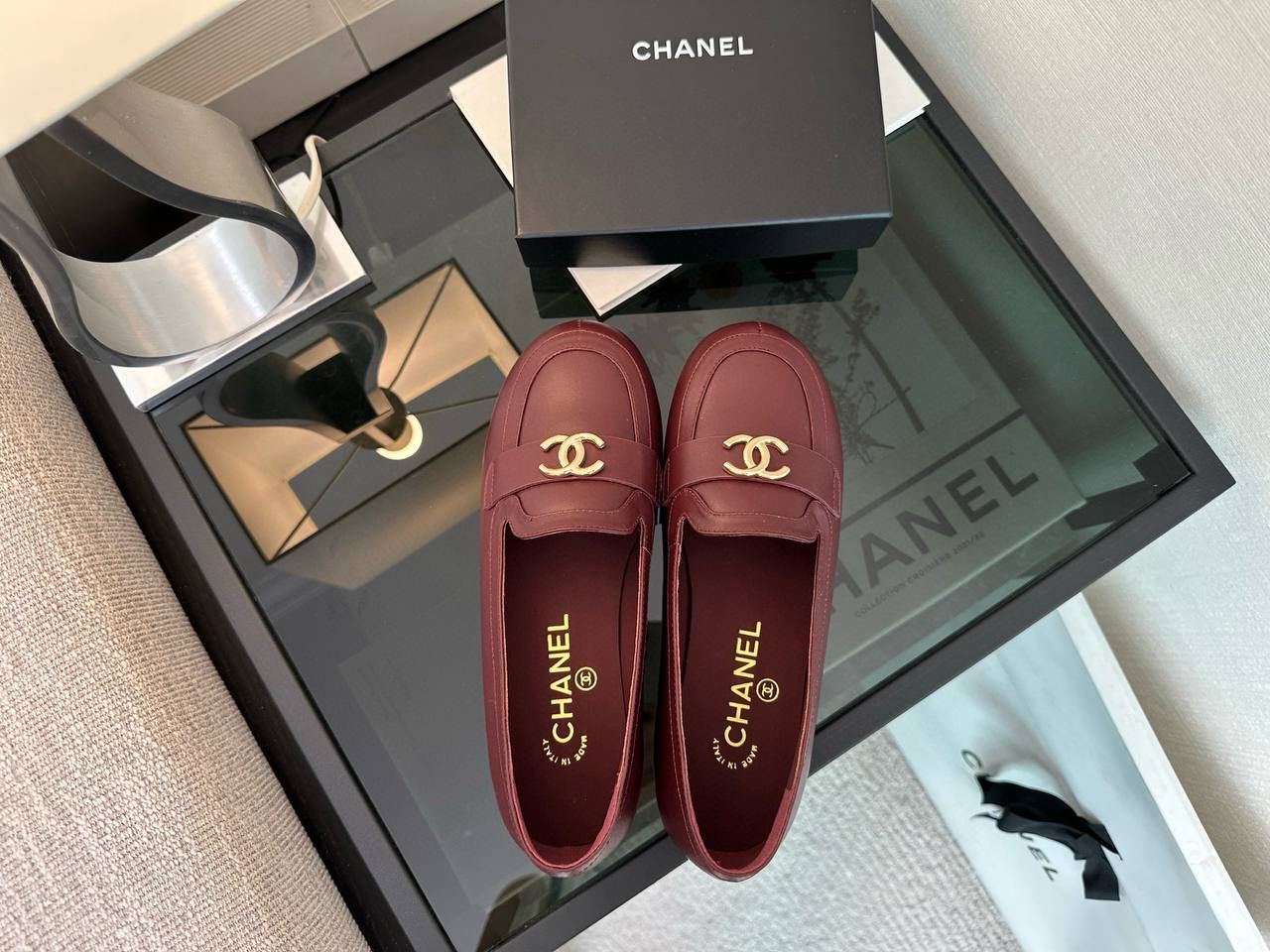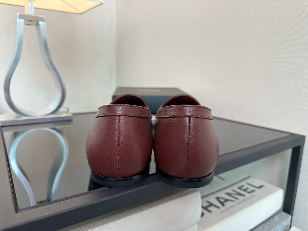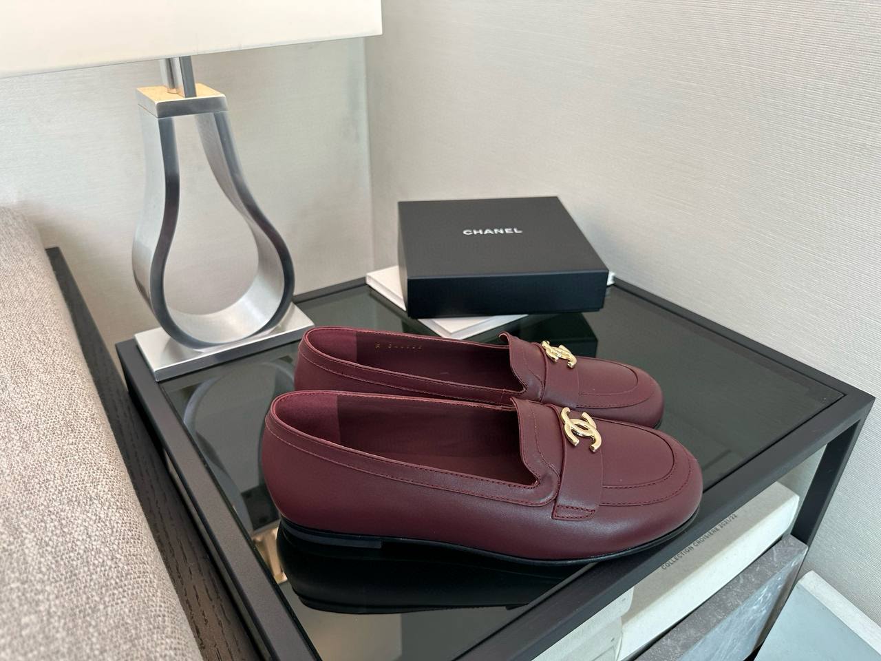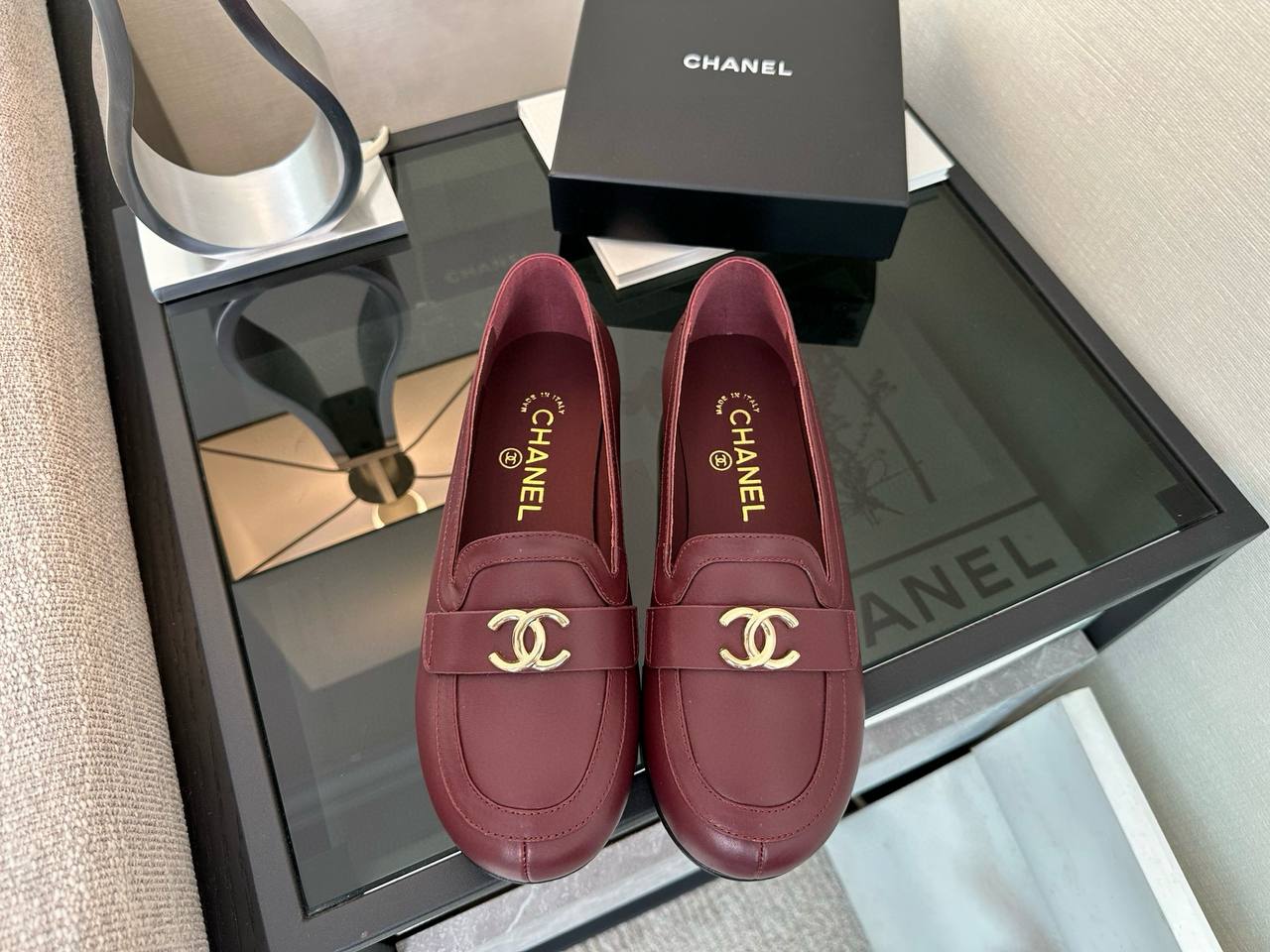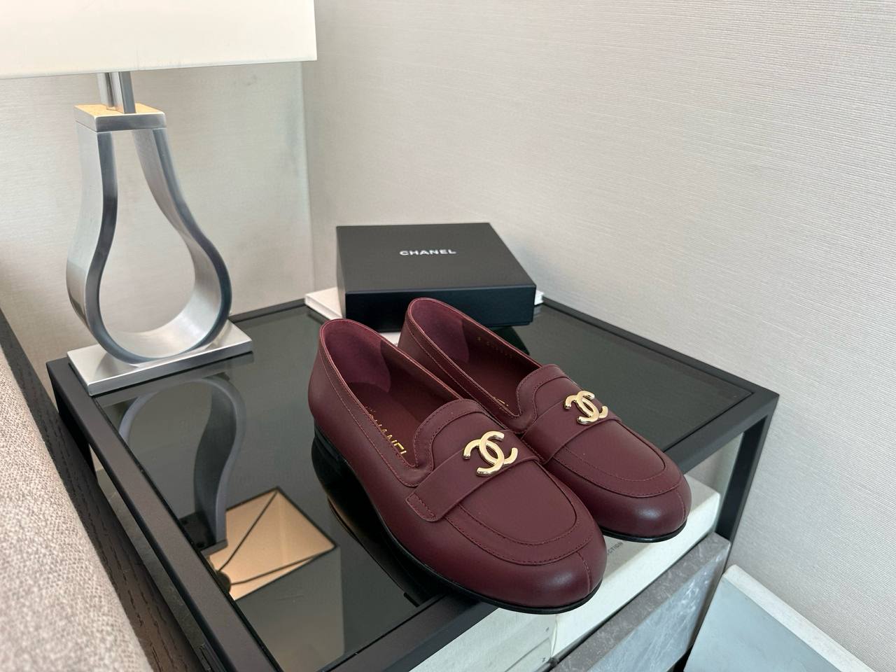 Элегантные женские лоферы от CHANEL выполнены из высококачественной натуральной кожи в стильном бордовом оттенке. Классический силуэт обуви дополняется золотистой эмблемой с фирменным логотипом бренда на союзке, что придает модели изысканность и утонченность. Лоферы обеспечивают комфорт при ходьбе благодаря мягкой стельке и оптимальной посадке. Идеальный выбор для создания образа в стиле smart casual, а также для дополнения делового или повседневного гардероба.