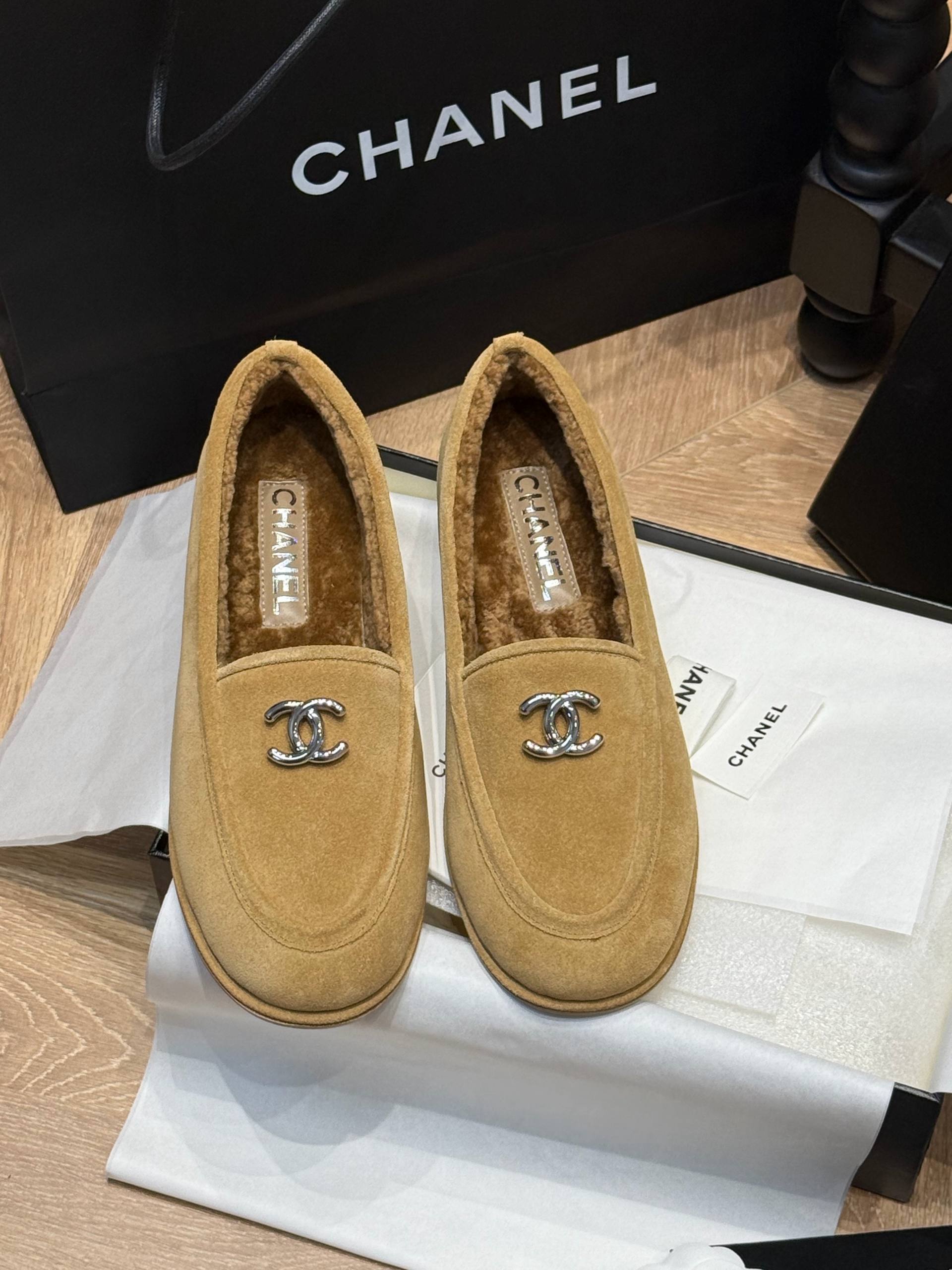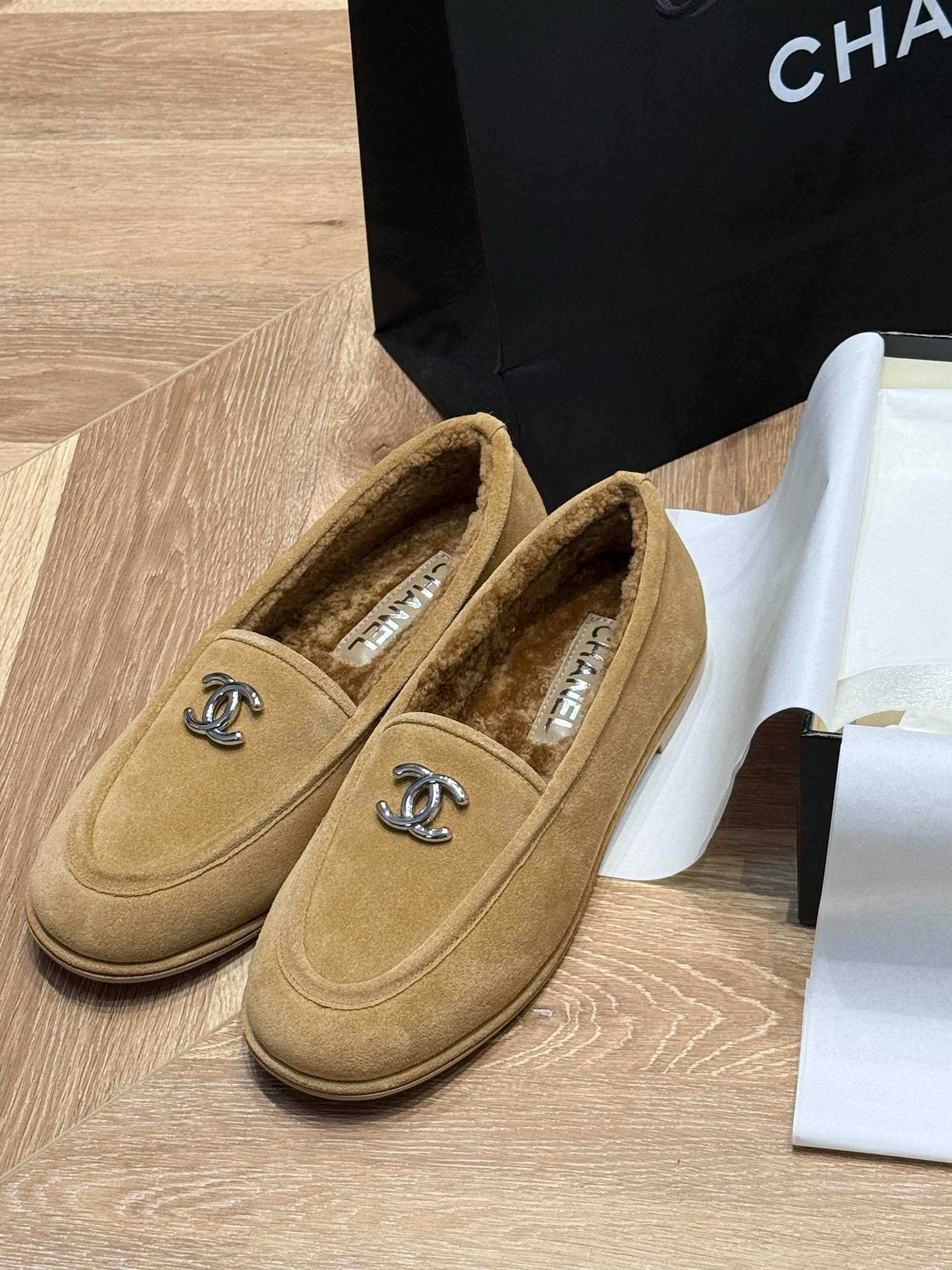Элегантные лоферы от CHANEL — воплощение утончённого стиля и комфорта. Модель выполнена из мягкой натуральной замши благородного бежевого оттенка, украшена культовой металлической эмблемой с логотипом бренда. Внутренняя отделка из нежного меха обеспечивает ощущение тепла и уюта даже в прохладное время года. Идеальный выбор для тех, кто ценит роскошь, качество и безупречный внешний вид в каждом элементе гардероба.