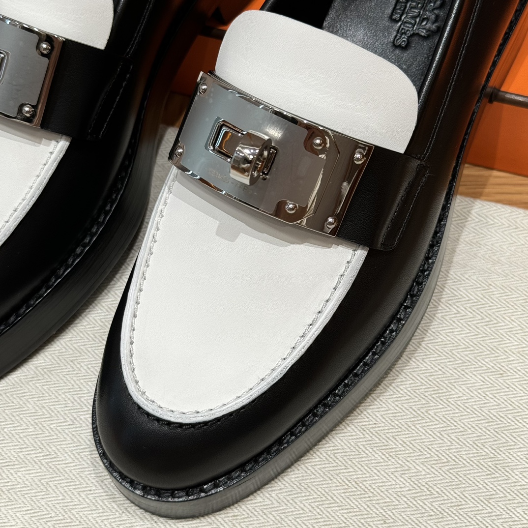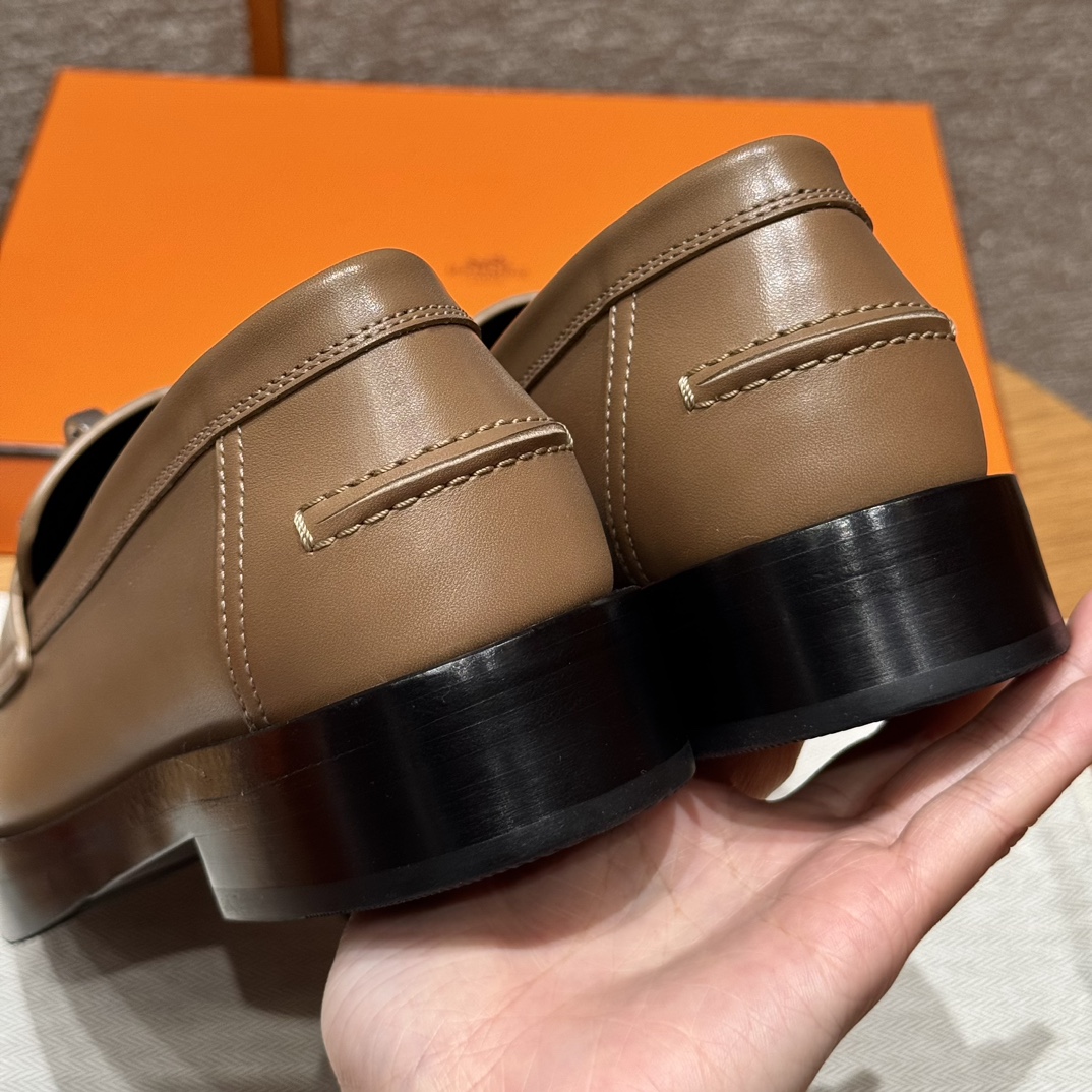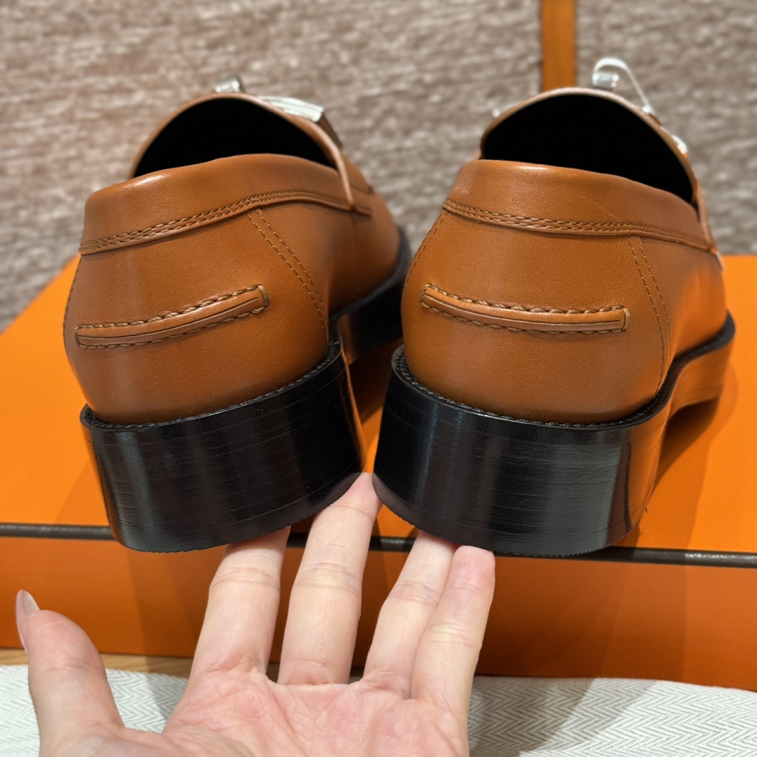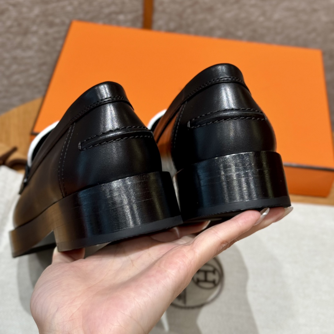 Женские лоферы HERMES Hot — это идеальное сочетание элегантности, комфорта и утонченного стиля. Эти туфли созданы для современных женщин, которые ценят как качество, так и дизайн. Изготовлены из мягкой и прочной натуральной кожи, лоферы обеспечивают комфорт при носке и долговечность. Классический силуэт с лаконичными линиями и минималистичными деталями придает обуви утонченный вид, который легко сочетается с различными нарядами.