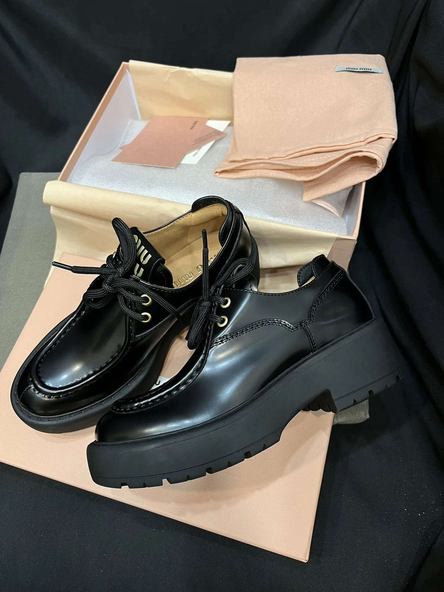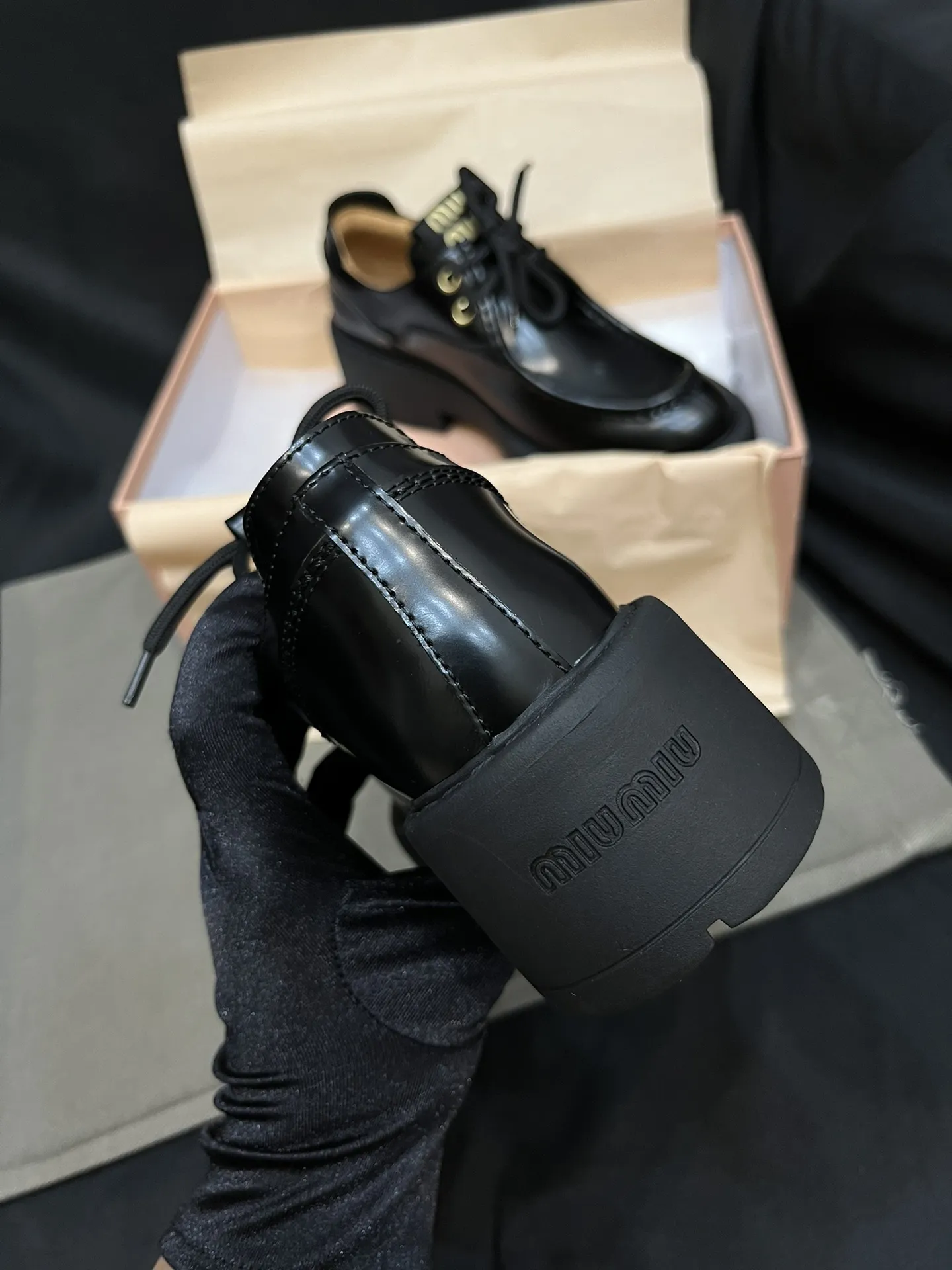 Эти лоферы представляют собой гармоничное сочетание классического силуэта и современных деталей, отражая тенденцию к смешению стилей. Платформа добавляет роста и уверенности, подчеркивая женственный образ. Шнуровка, традиционный элемент мужской обуви, здесь выступает в качестве акцента, придавая лоферам нотку дерзкой индивидуальности.