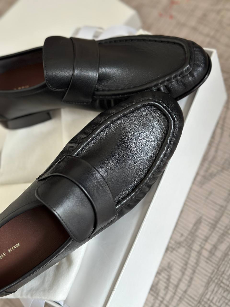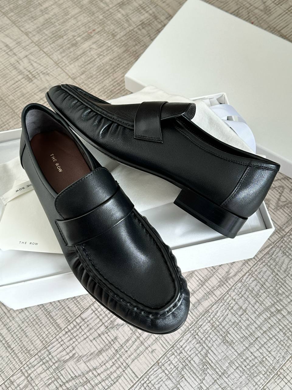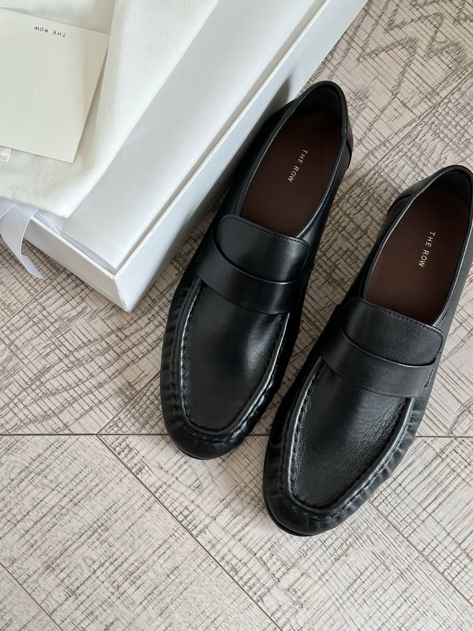 • Подкладка и стелька: мягкая кожаная стелька с тиснением логотипа THE ROW для дополнительного комфорта.