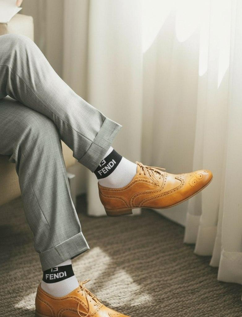 Эти мужские носки от FENDI сочетают в себе комфорт, качество и узнаваемый стиль компании. Они представлены в классических цветах, делая носки универсальными и подходящими для различных стилей. Они украшены логотипом FENDI, что подчеркивает их принадлежность к бренду и придает им стильный вид.