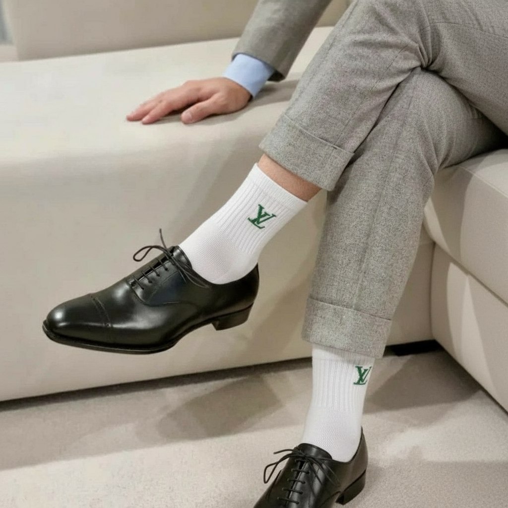 Мужские носки от LOUIS VUITTON предлагают идеальное сочетание стиля и комфорта. Изготовленные из высококачественного материала, они обеспечивают долговечность и износостойкость. Воздухопроницаемая ткань гарантирует отличную вентиляцию, а логотип LV добавляет элегантный шарм, указывая на приверженность известному бренду.