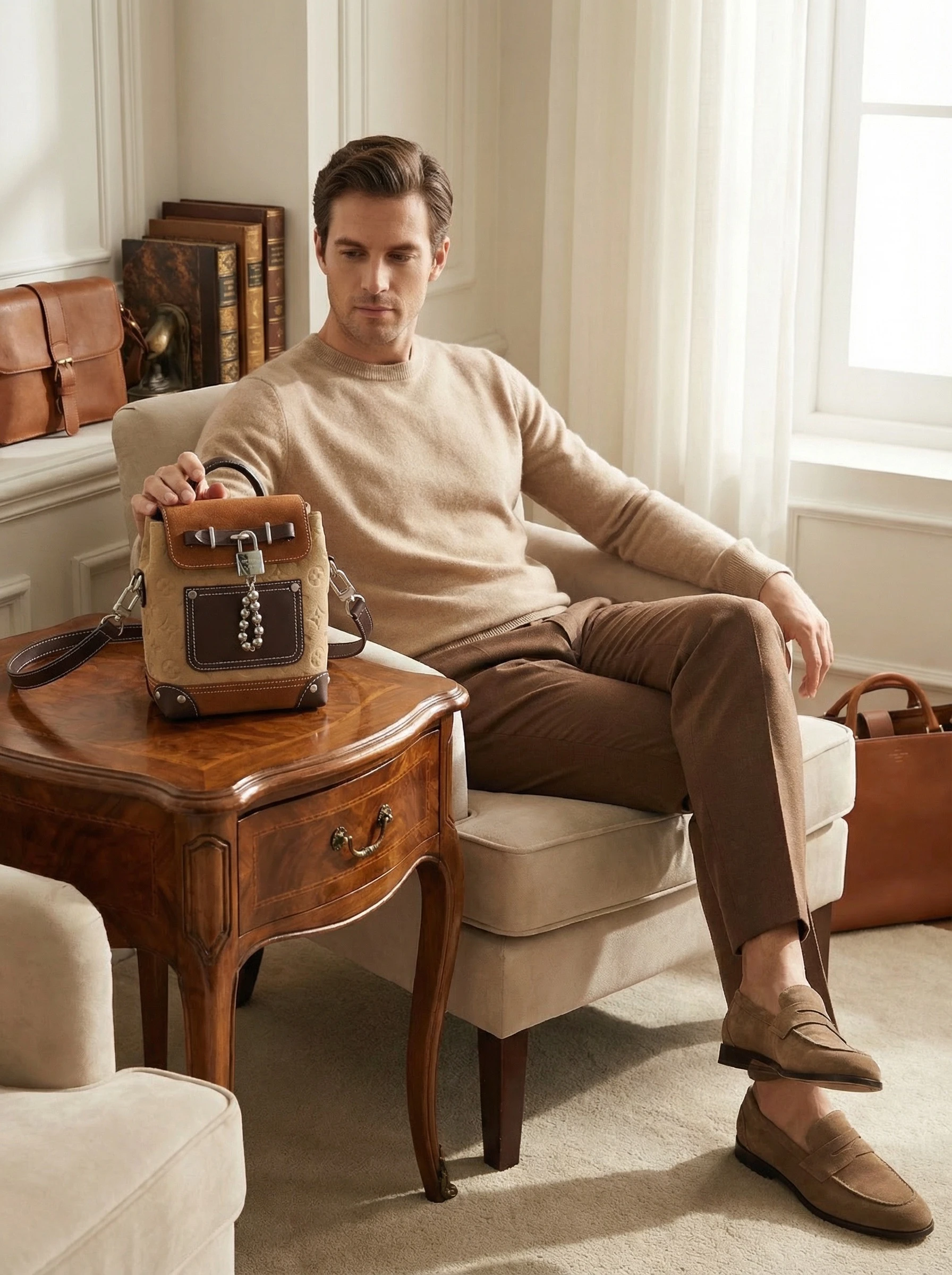 Модель создана в рамках современной мужской коллекции под руководством Pharrell Williams и отражает идею сочетания путешествий, урбан-эстетики. Она отлично подходит для повседневных образов, поездок и вечернего городского стиля.
