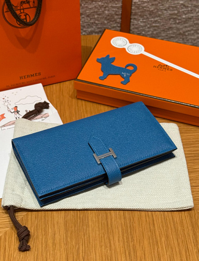 HERMES Кошелёк Bearn 17.5 см M3/Blue encer Epsom
