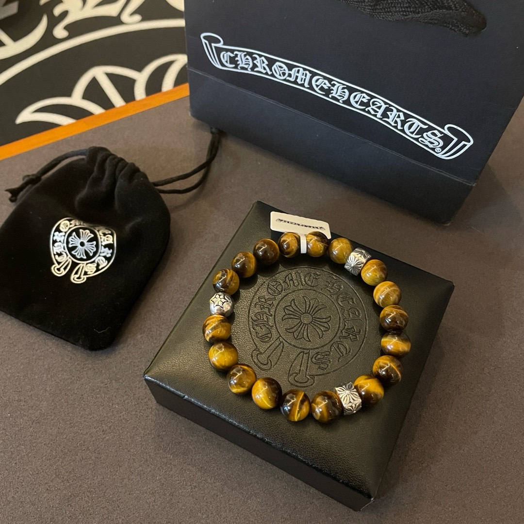 Браслет Chrome Hearts в стиле ретро с использованием камня тигровый глаз и элементами хромированных сердечек — это яркий аксессуар, который сочетает в себе стиль и уникальность. Тигровый глаз известен своими защитными свойствами и считается камнем, который приносит удачу и уверенность.