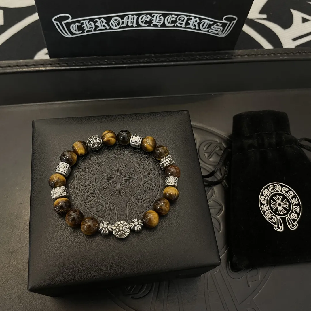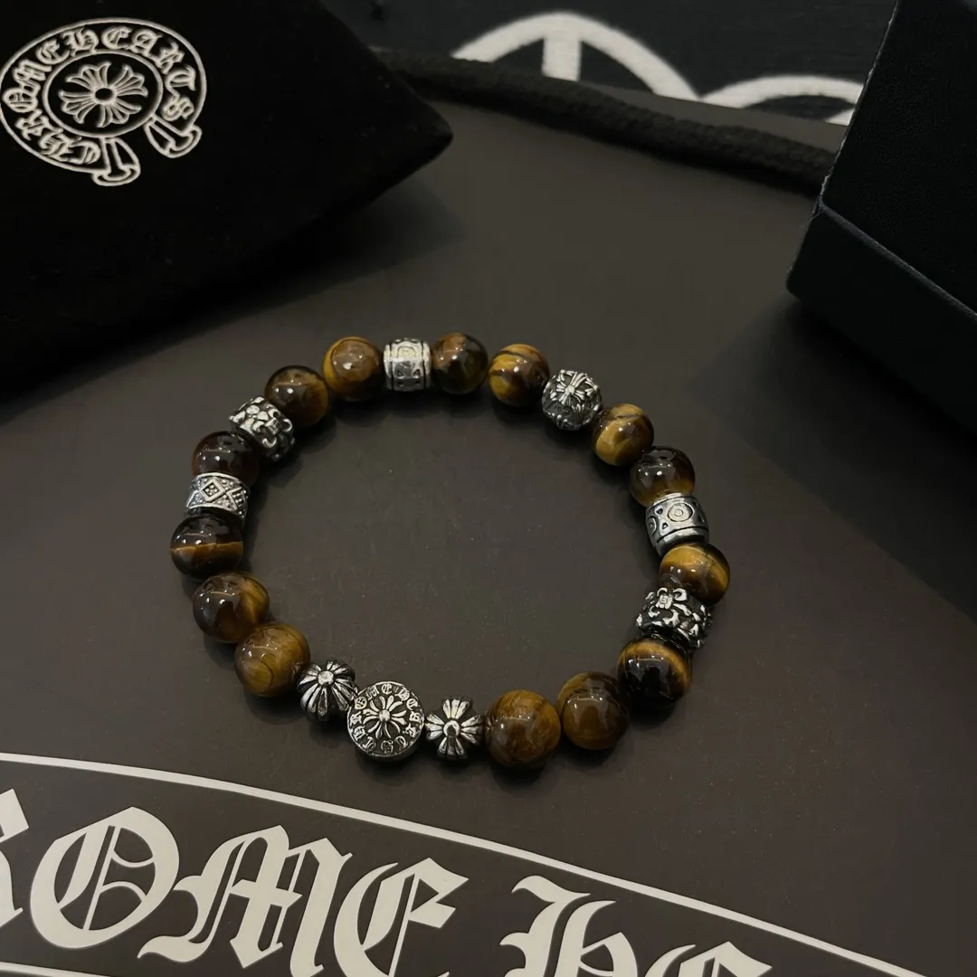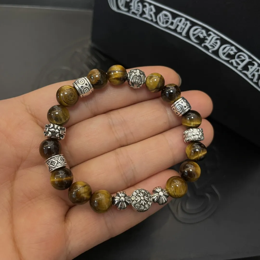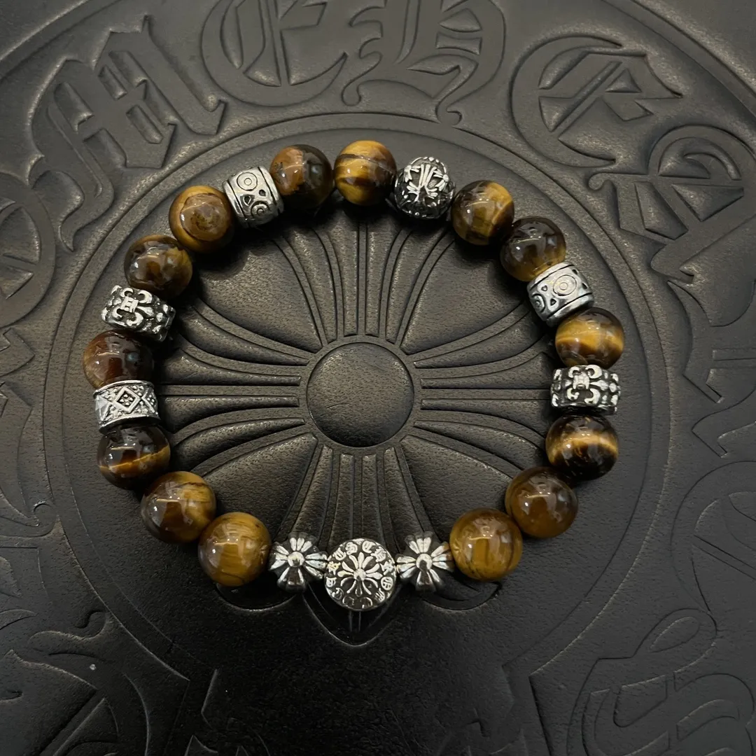Браслет Chrome Hearts в стиле ретро с использованием камня тигровый глаз и элементами хромированных сердечек — это яркий аксессуар, который сочетает в себе стиль и уникальность. Тигровый глаз известен своими защитными свойствами и считается камнем, который приносит удачу и уверенность.