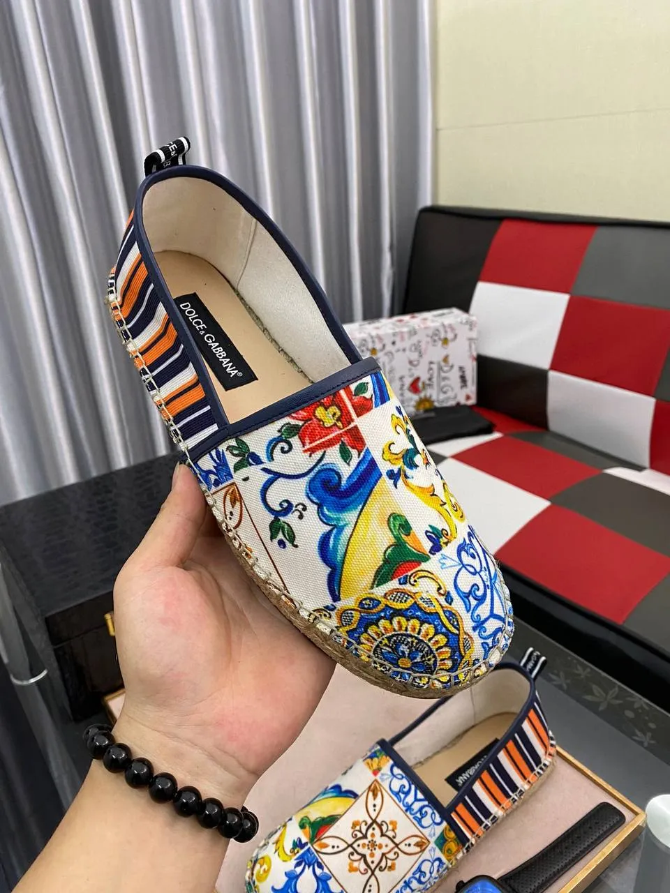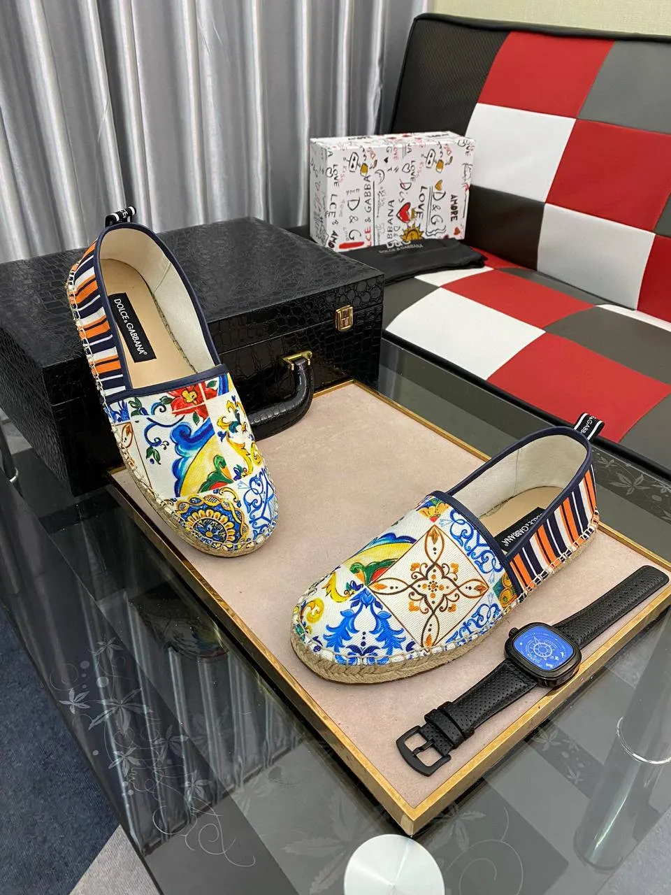 Мужские цветные эспадрильи от бренда Dolce & Gabbana представляют собой стильную и удобную обувь, идеально подходящую для летнего сезона. Они выполнены из текстиля, а также имеют характерный принт и яркий цвет, отражающий стиль бренда. Эспадрильи обычно имеют легкую подошву из джута, что делает их удобными для ношения в теплую погоду.