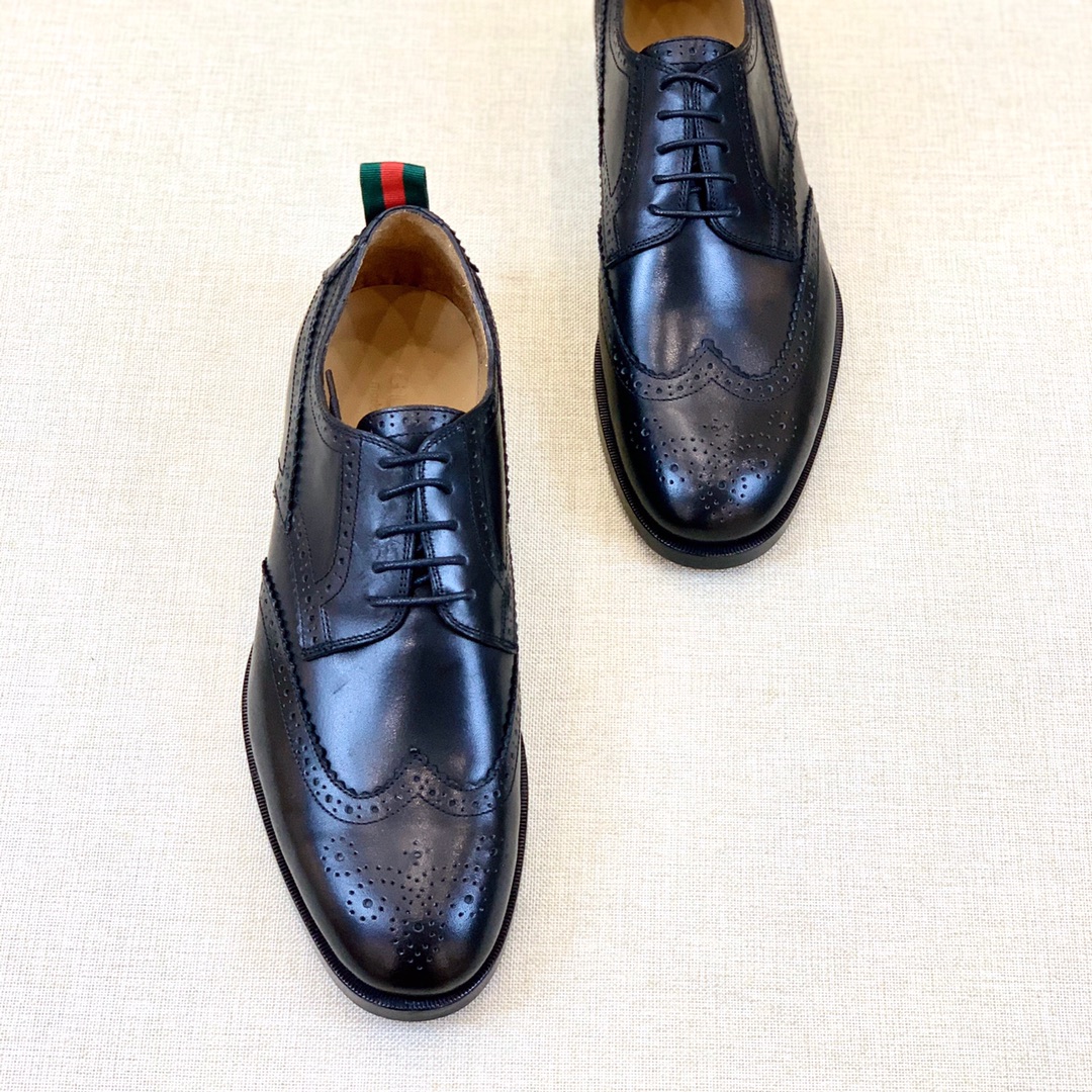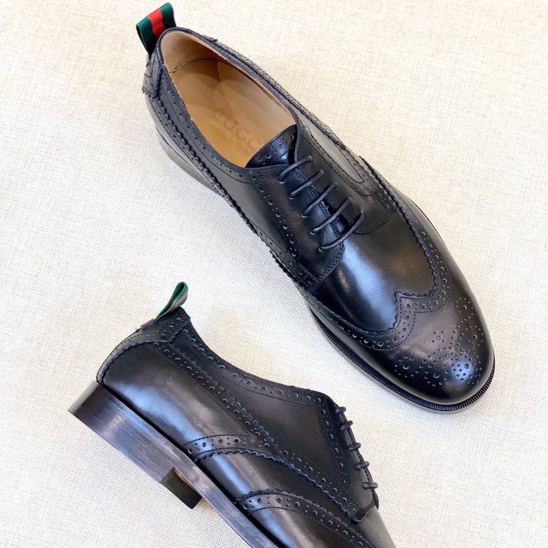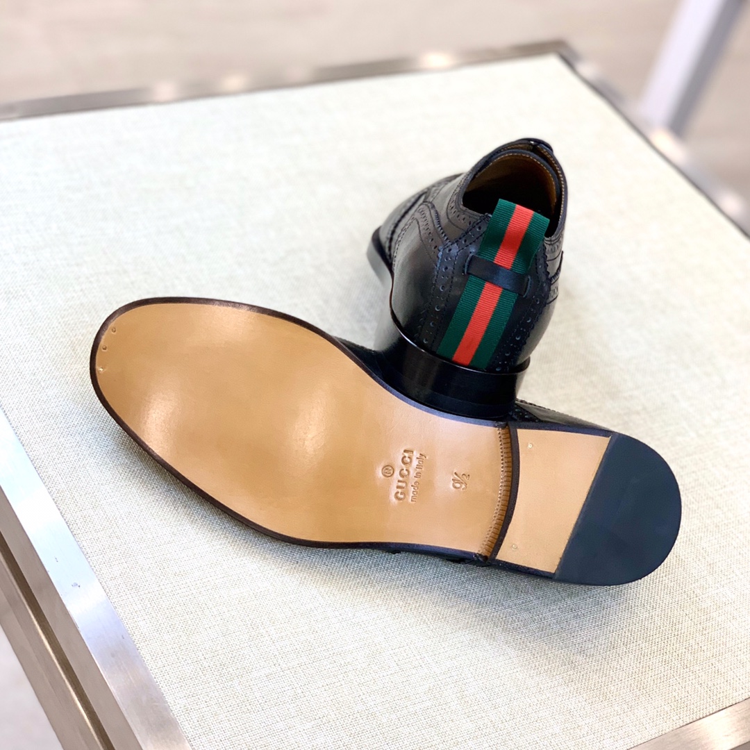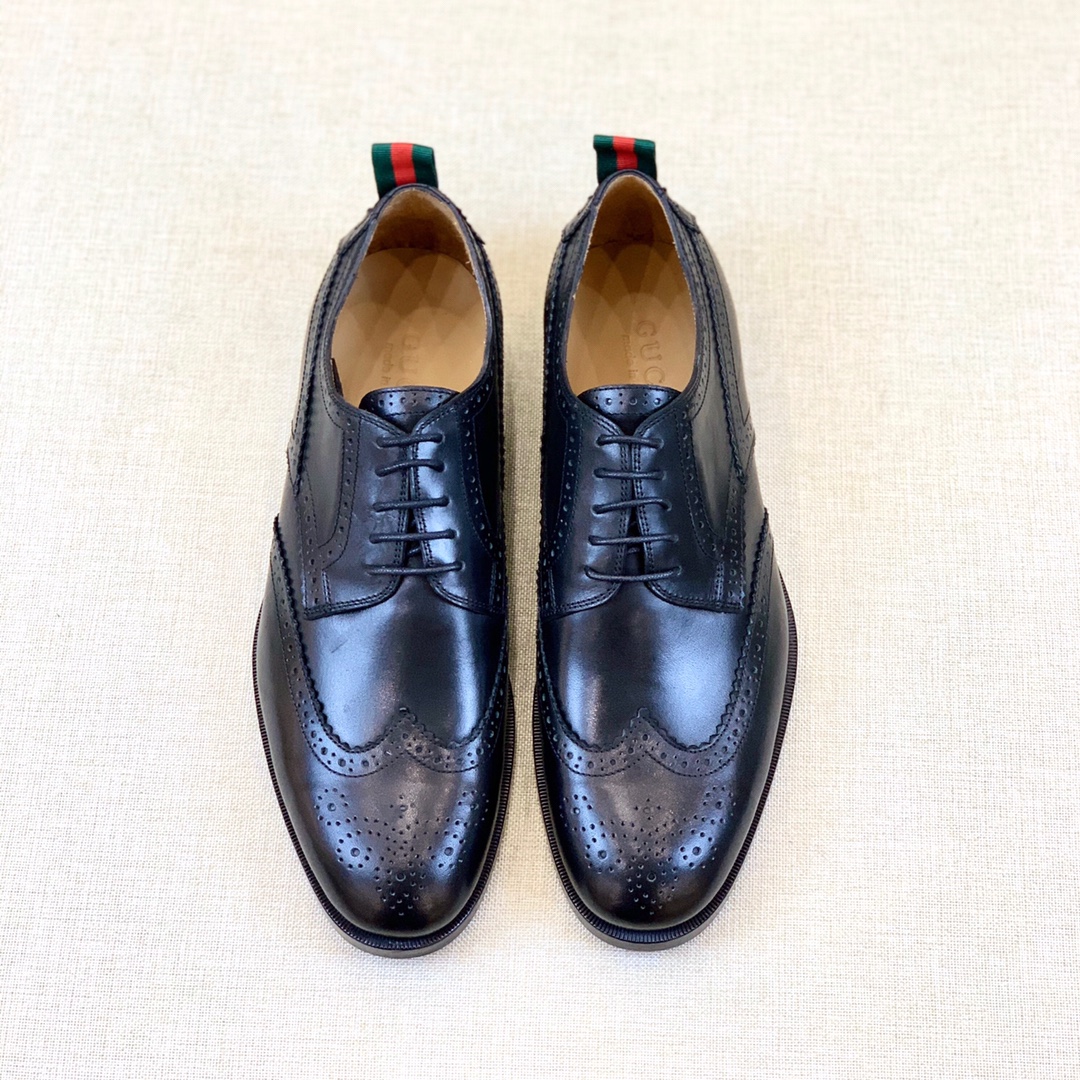 Мужские лоферы Gucci из натуральной коровьей кожи — воплощение элегантности и утончённого стиля. Классический дизайн с декоративной перфорацией подчёркивает премиальное качество и внимание к деталям.