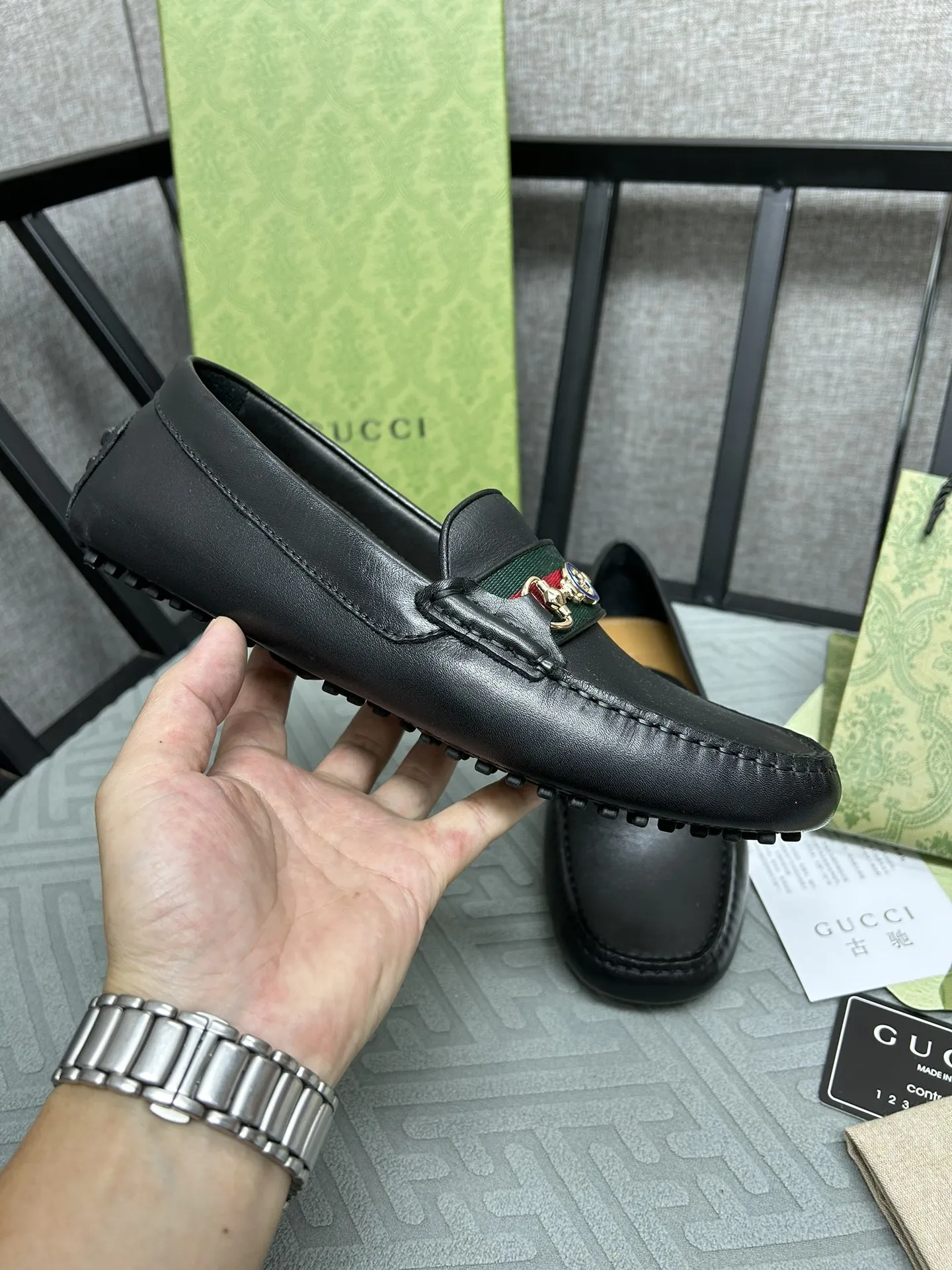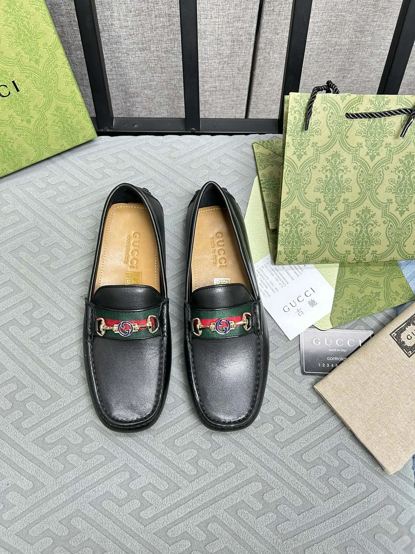 Мокасины Gucci из черной кожи с зеленой и красной паутиной - это стильный и оригинальный обувной аксессуар от всемирно известного итальянского бренда. Каждая деталь этих мокасинов пропитана эстетикой итальянской моды и роскошной элегантности. Зеленая и красная паутина, являющаяся символом бренда Gucci, добавляет нотку оригинальности и узнаваемости. Золотистая фурнитура дополняет образ роскошью и статусом, а кожаная подошва обеспечивает комфорт и удобство в носке.
