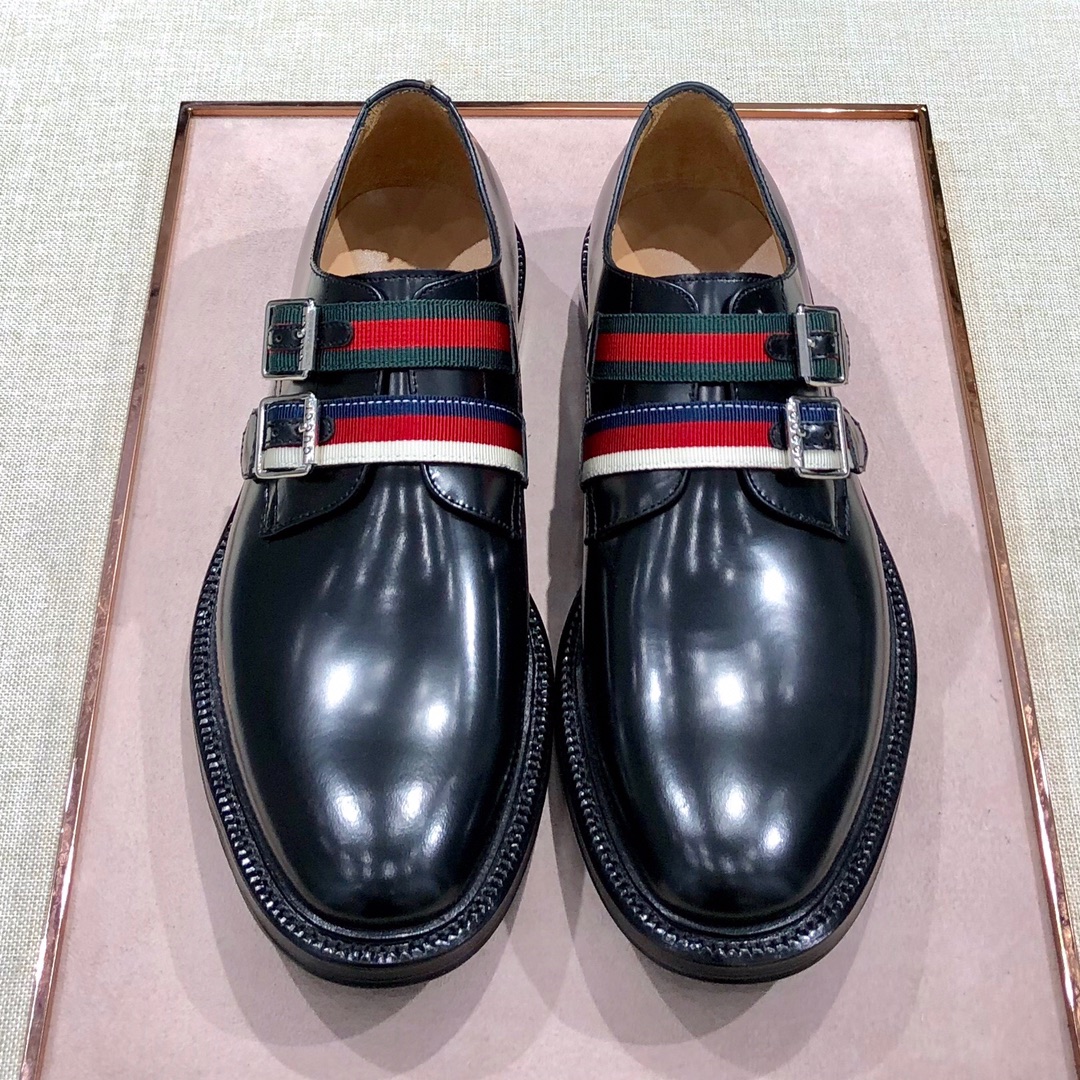 Мужские туфли Gucci из натуральной коровьей кожи — воплощение элегантности и утончённого стиля. Гладкая кожа премиального качества обеспечивает долговечность и комфорт, а блестящая поверхность добавляет изысканности.