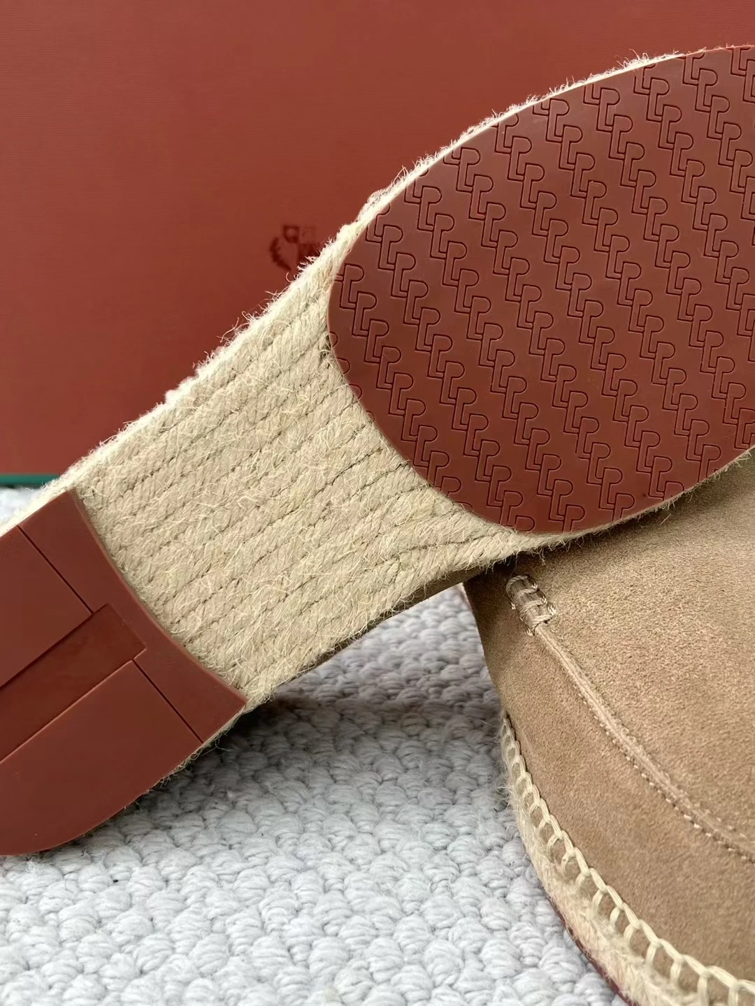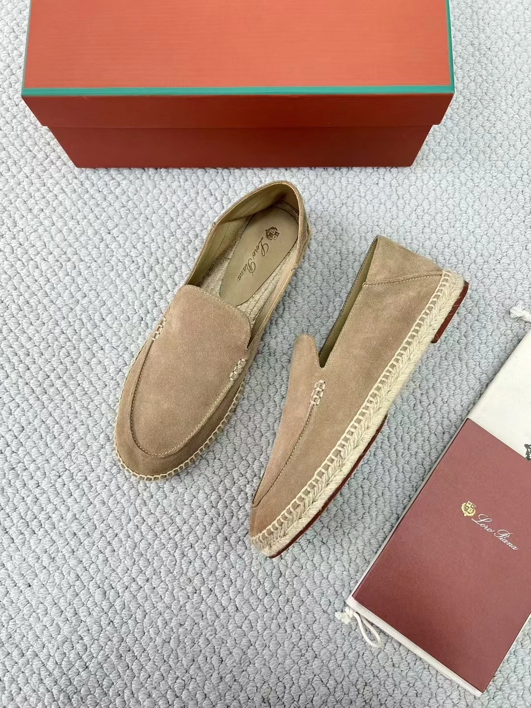 Эспадрильи LORO PIANA — утонченная и комфортная модель из нежной замши светло-бежевого оттенка. Обувь выполнена в классическом стиле с аккуратной строчкой и традиционной плетеной джутовой подошвой, которая придает изделию легкость и естественность. Эти эспадрильи идеально подойдут для теплого сезона, сочетая элегантность и непринужденный casual, создавая стильный и расслабленный образ.