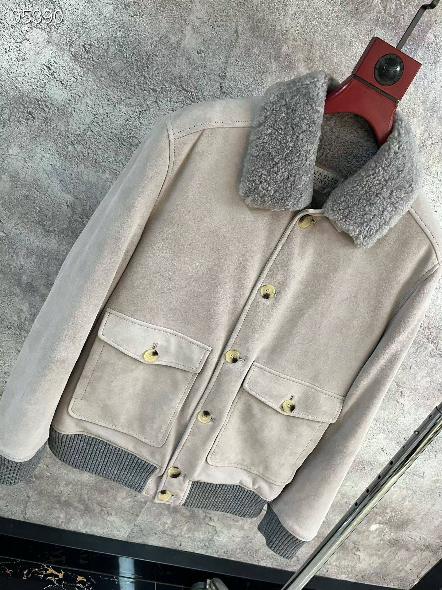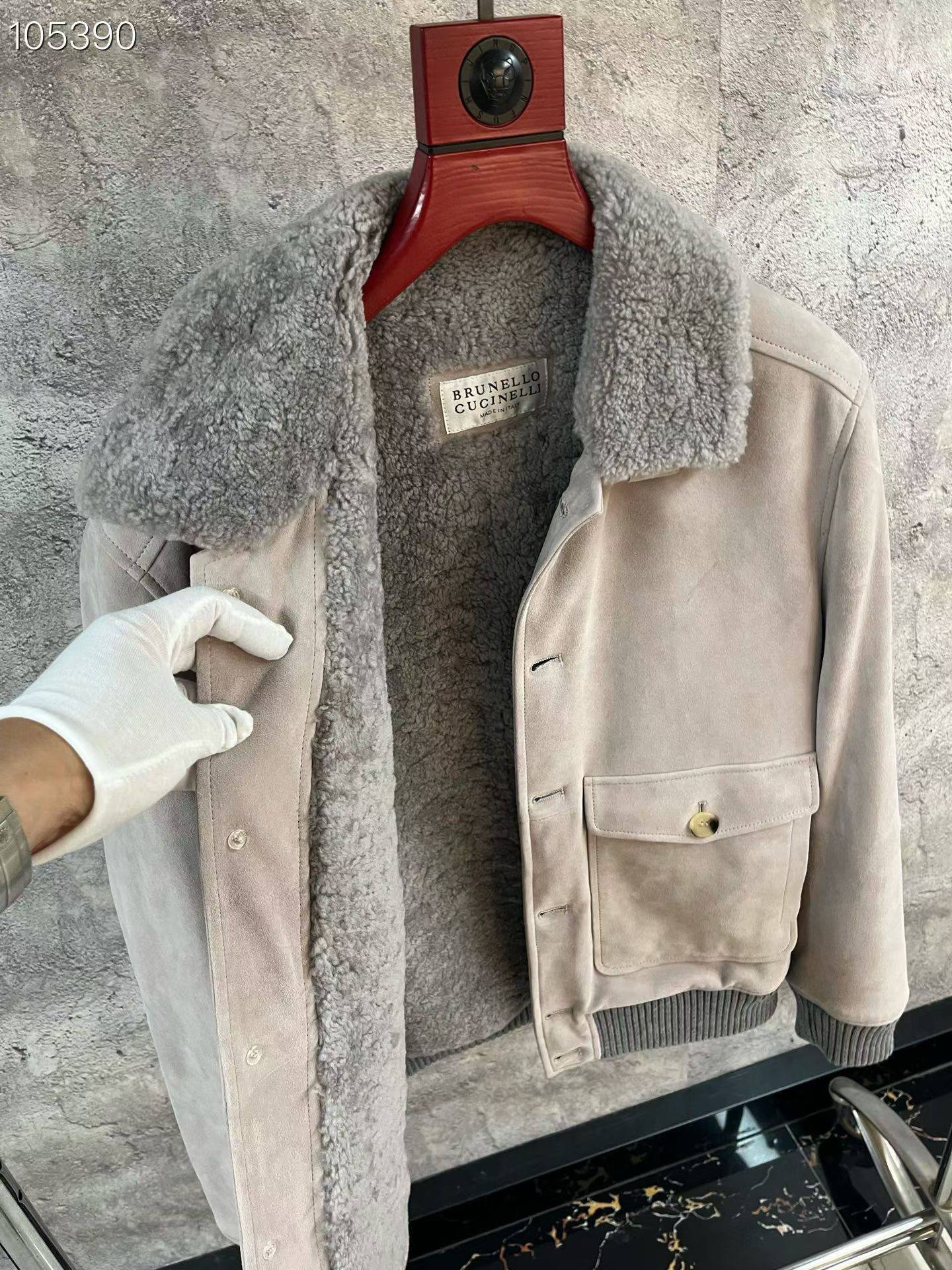 BRUNELLO CUCINELLI Мужская дублёнка из замши и шерсти ягнёнка