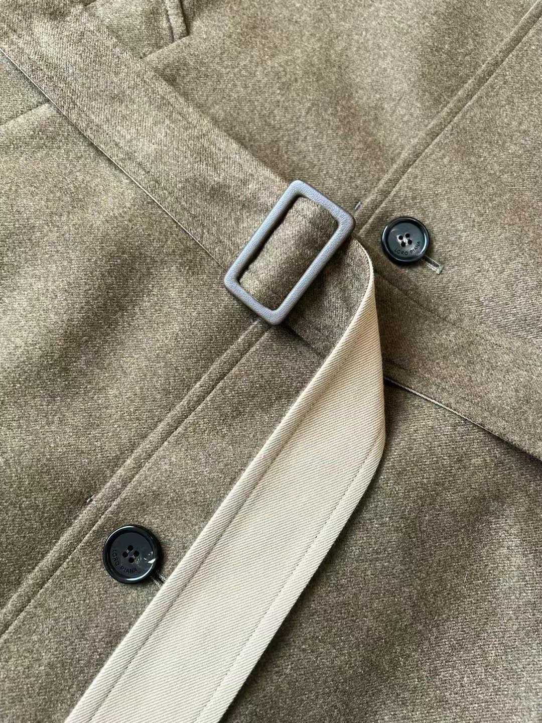 Модель имеет классический прямой силуэт, который подходит для большинства типов фигур. Отложной воротник добавляет элегантности, а застежка на пуговицы обеспечивает надежную защиту от ветра. Пояс, который идет в комплекте, можно регулировать по желанию, что позволяет подчеркнуть талию и создать более структурированный образ.