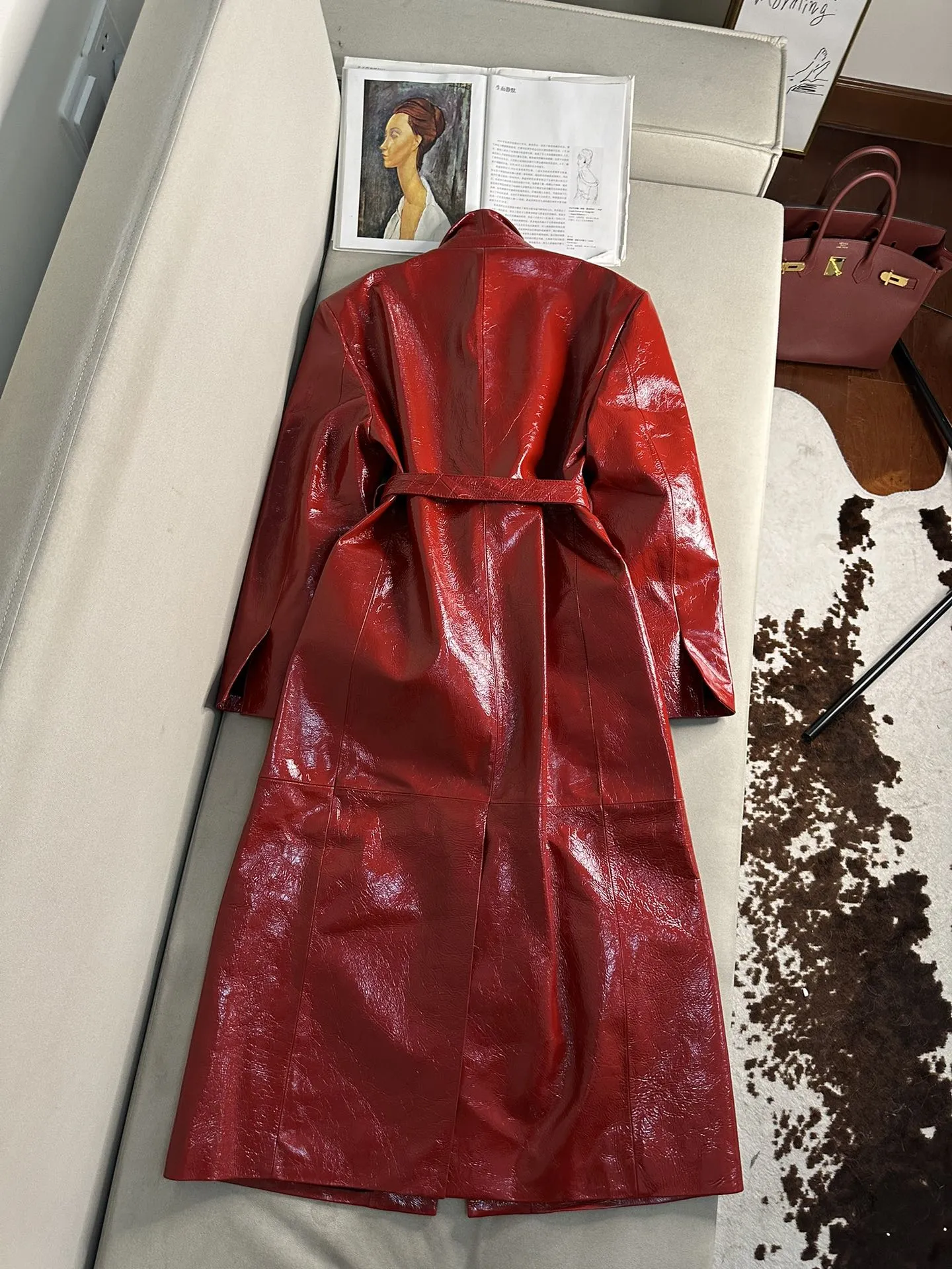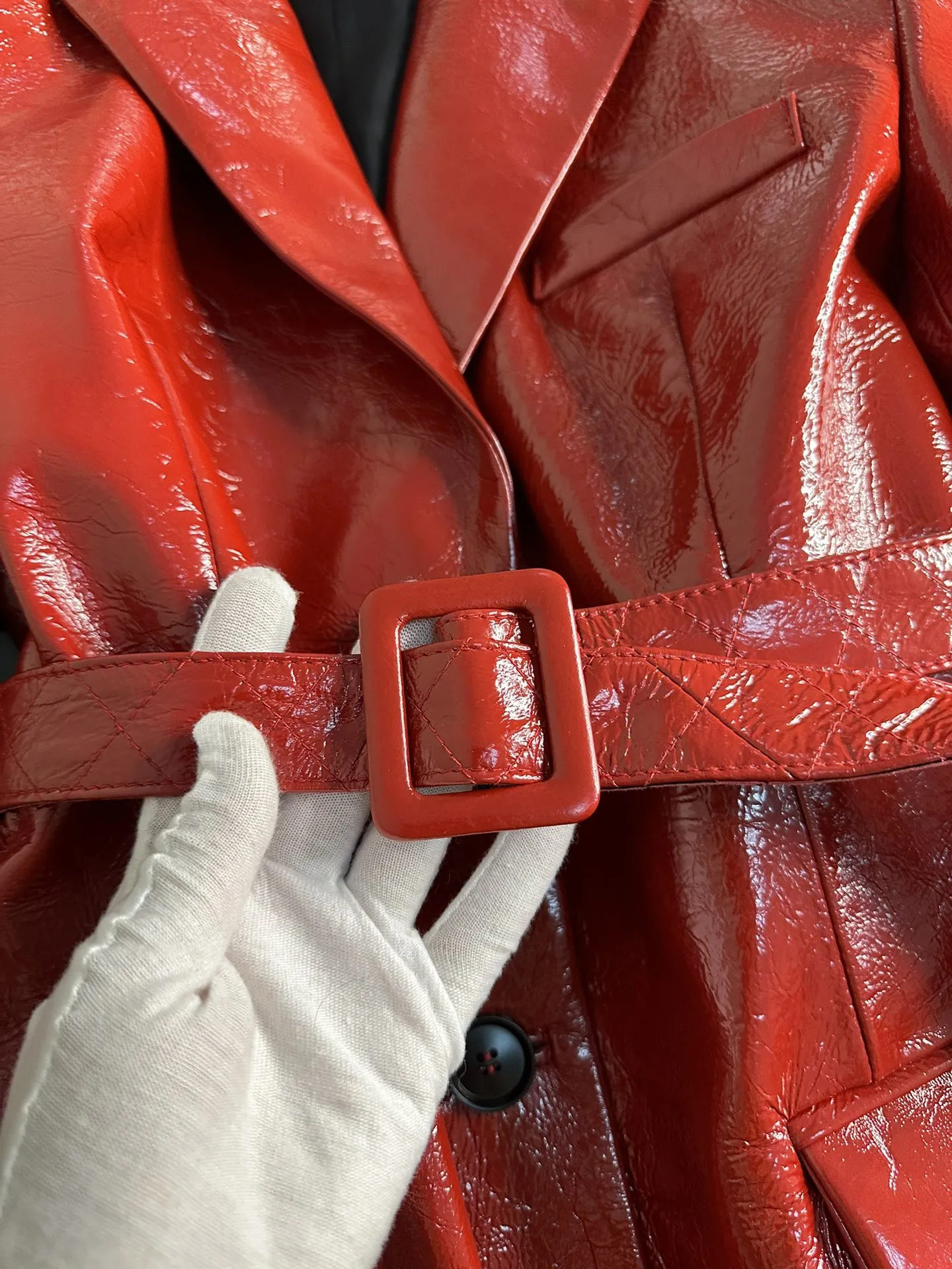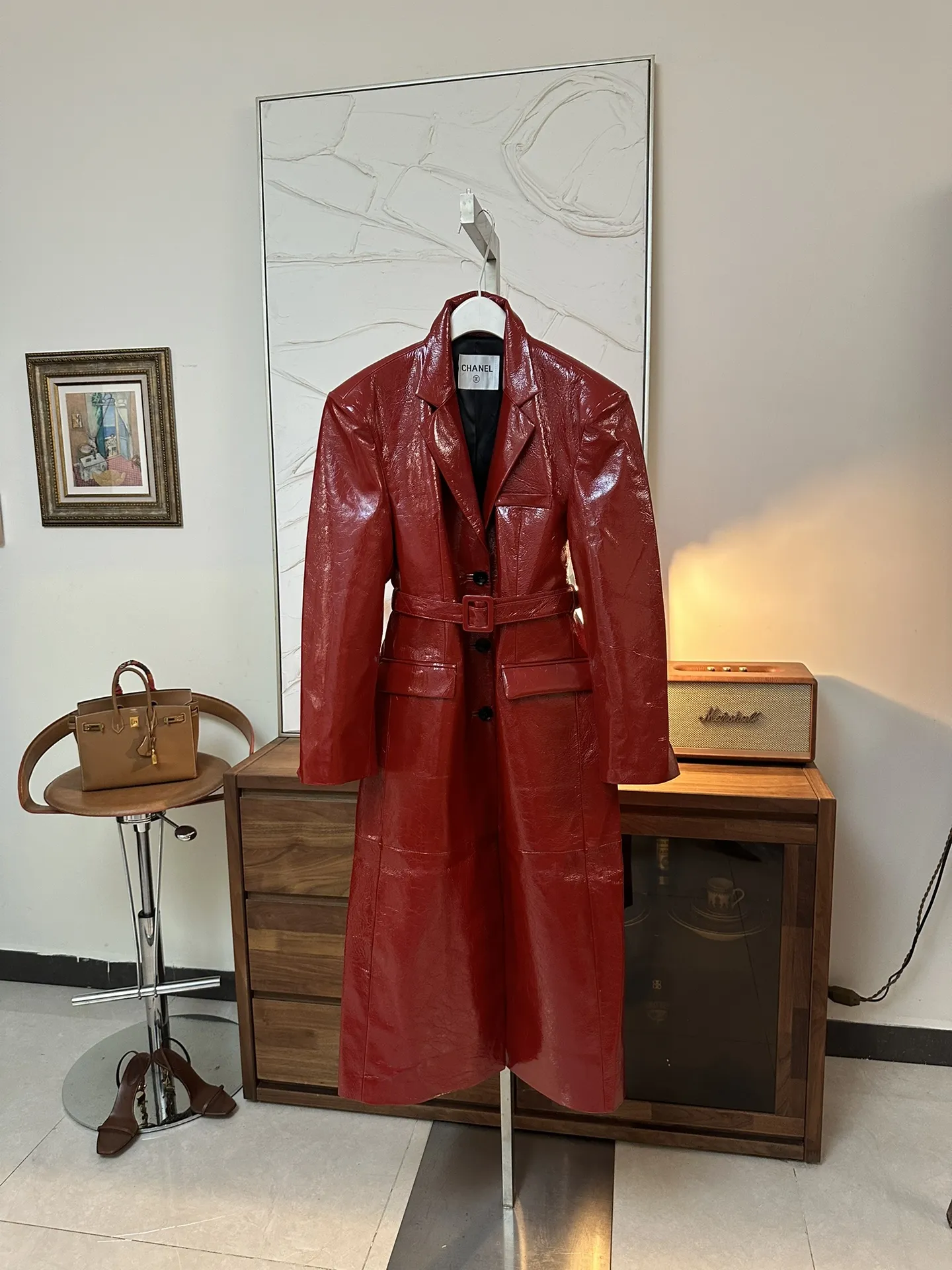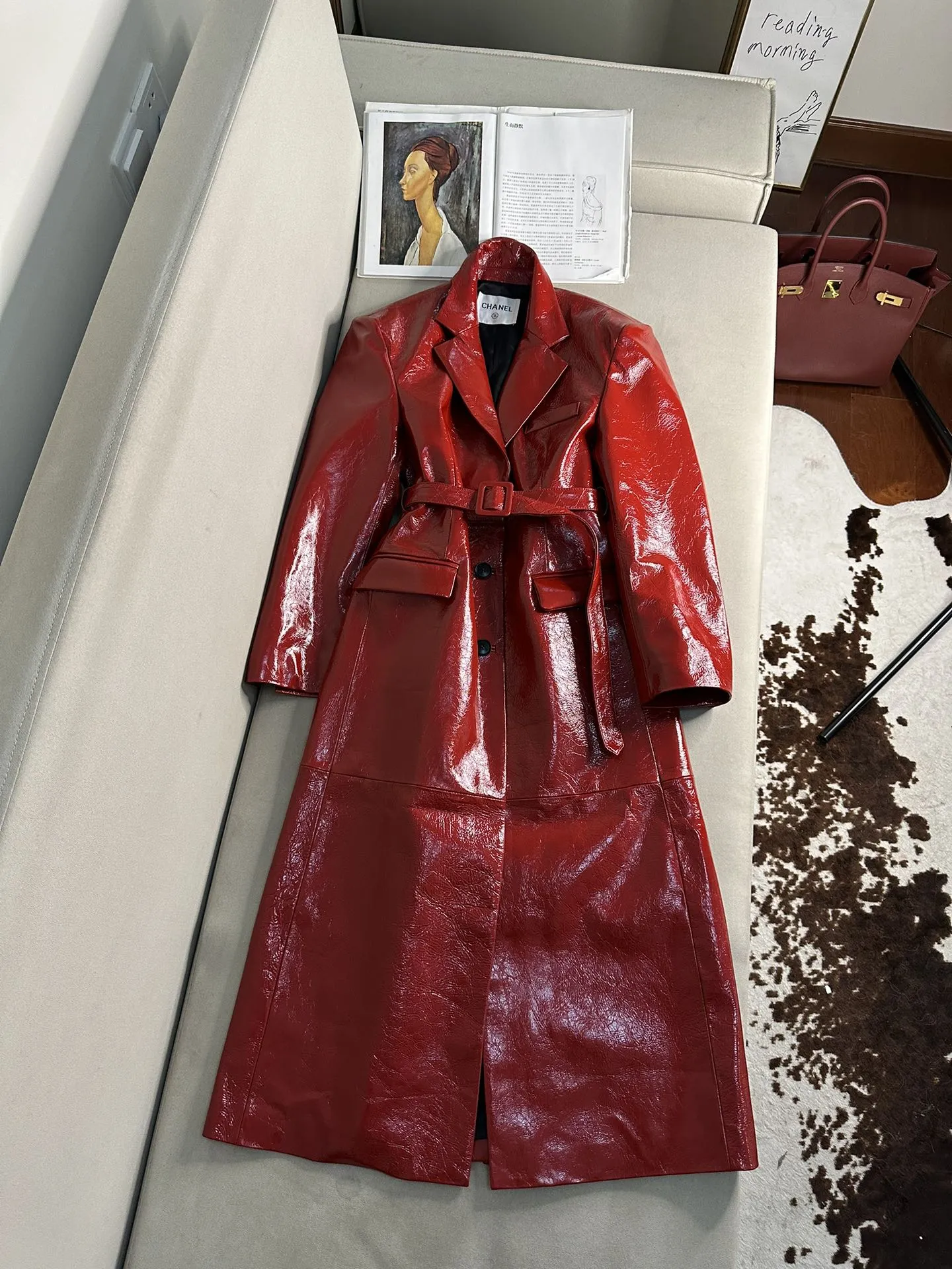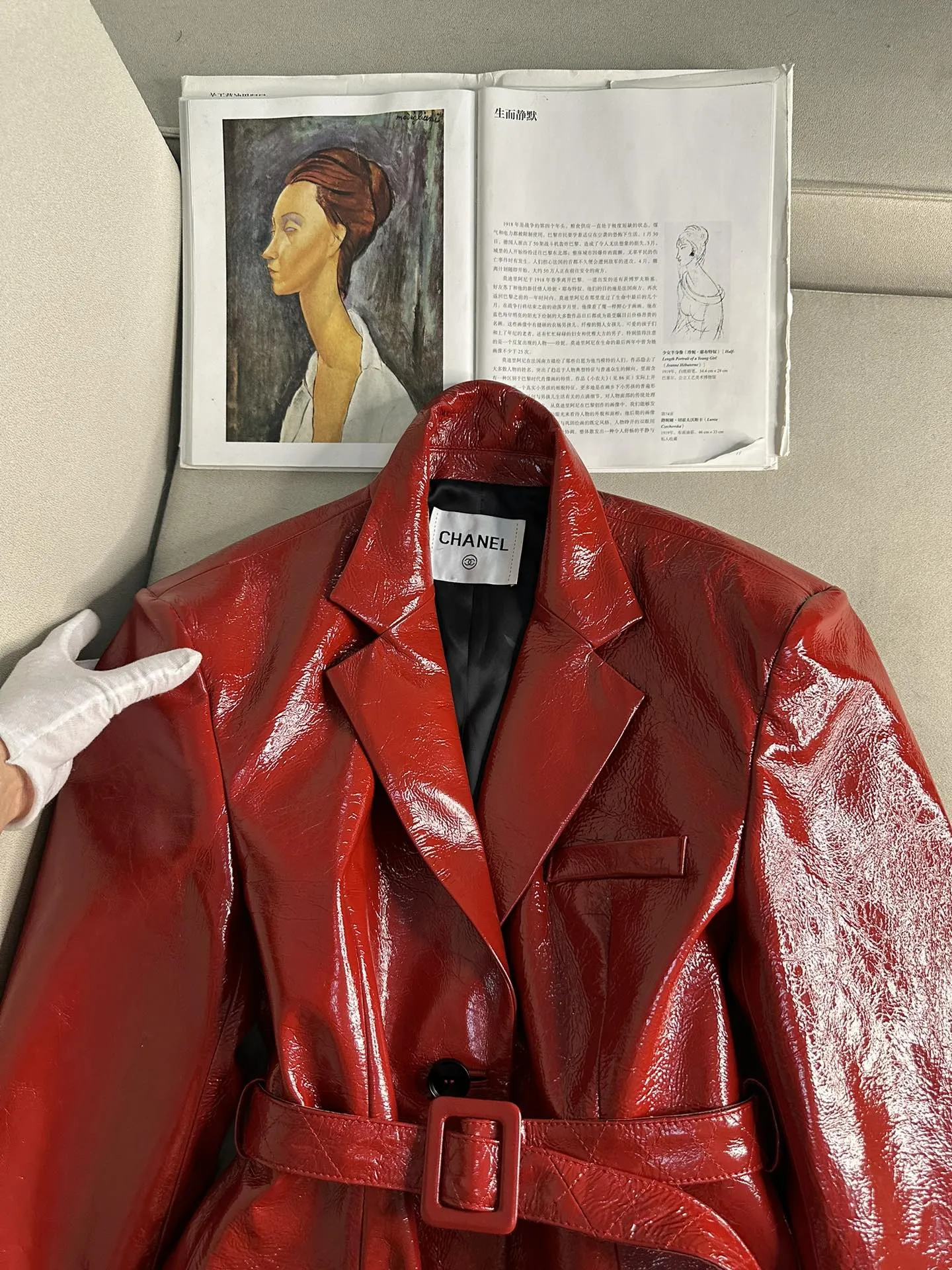 Эффектный женский плащ Chanel из вощёной лакированной коровьей кожи — воплощение элегантности и смелости. Яркий красный цвет подчеркивает дерзкий характер модели, а глянцевая текстура добавляет роскоши и современного шика.