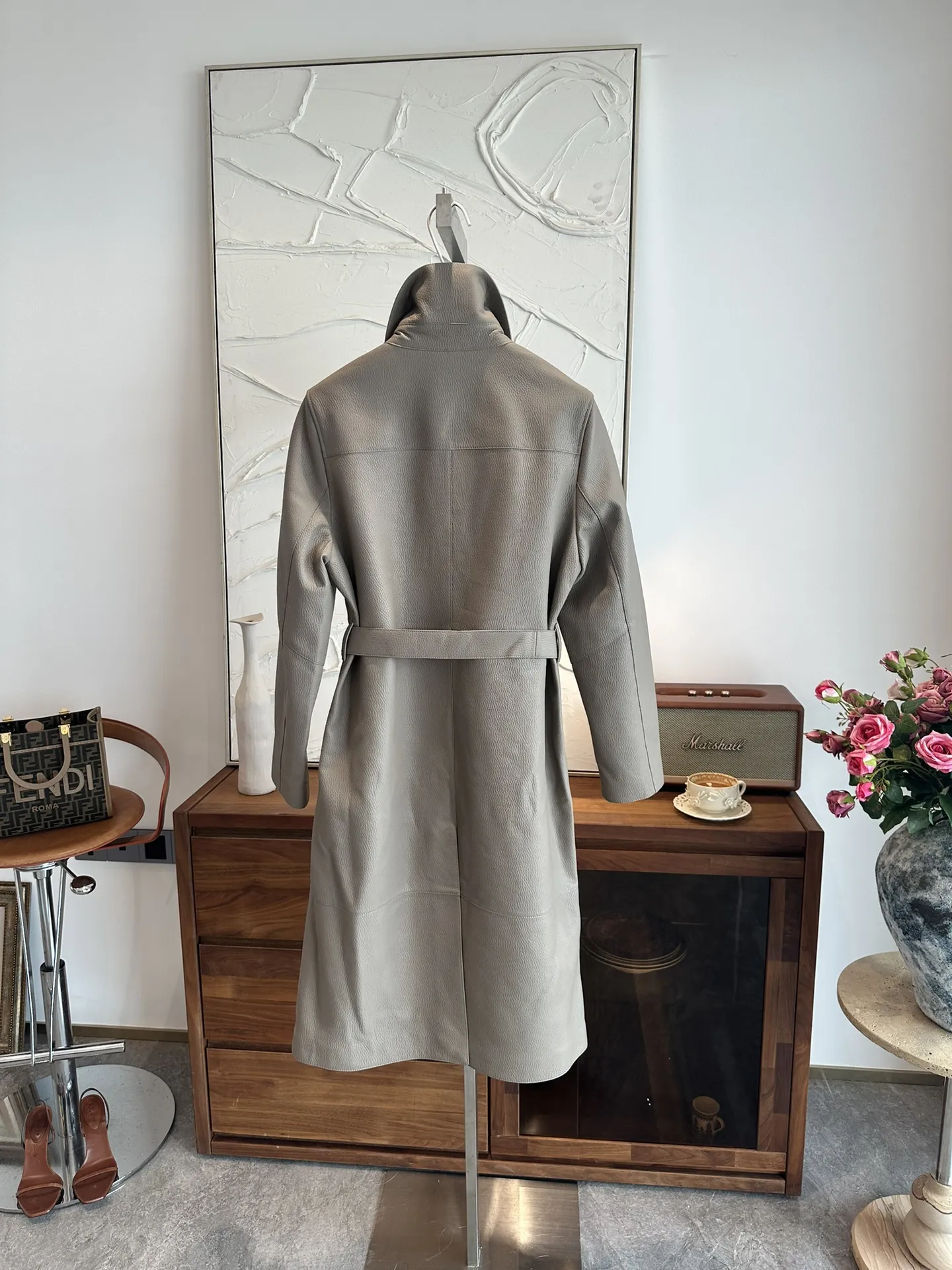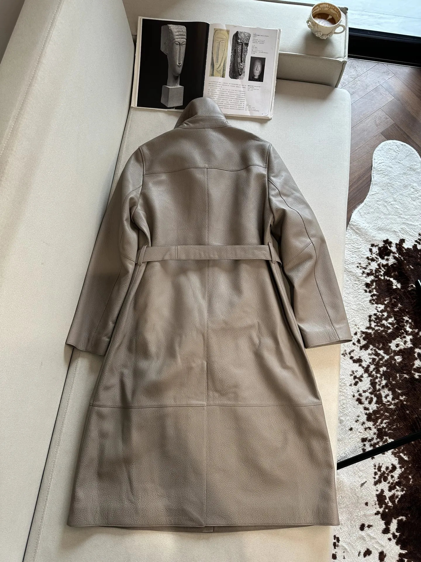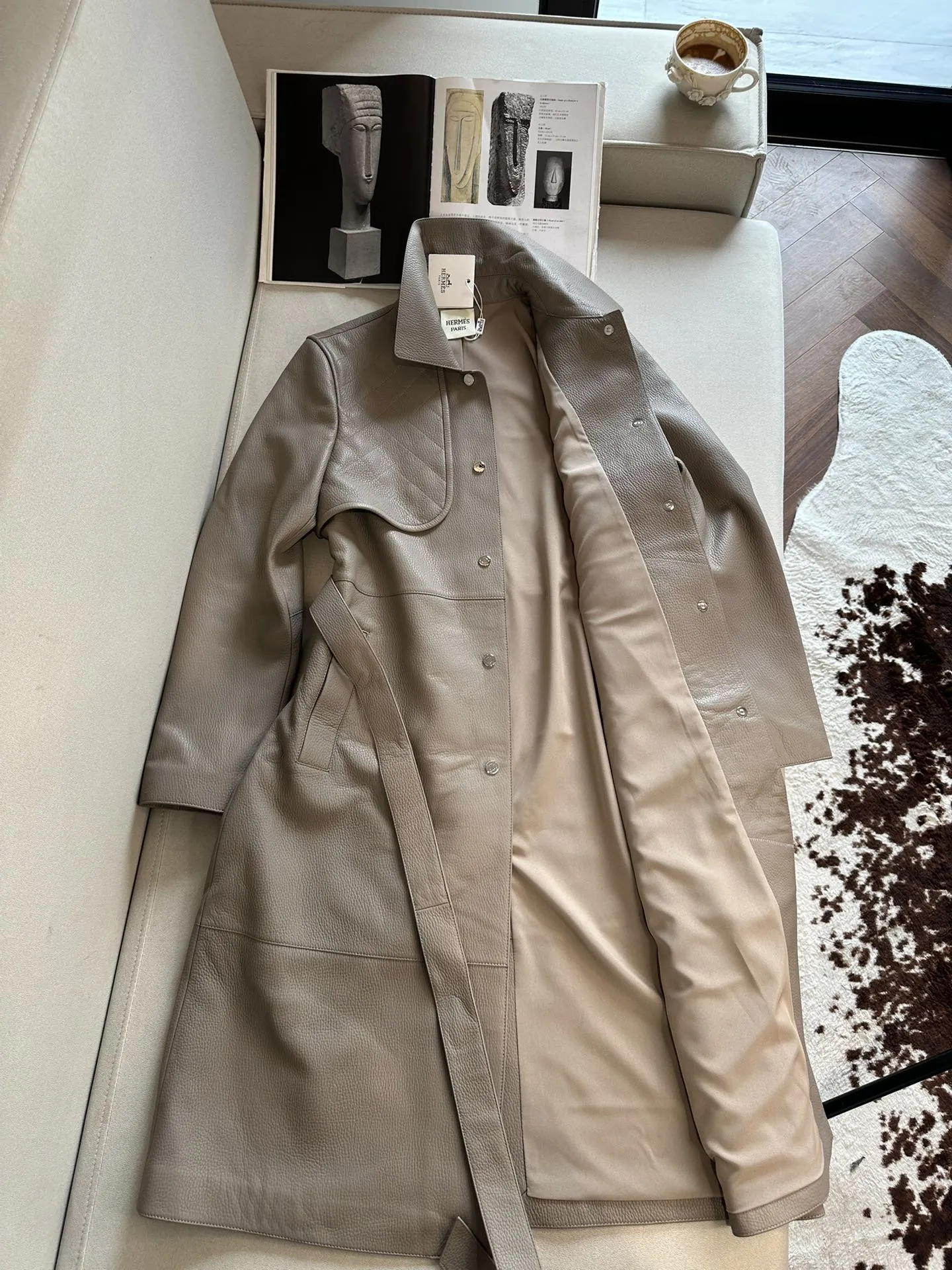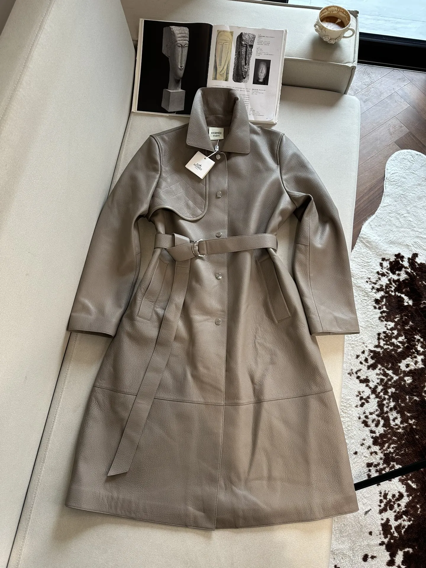 HERMES Женский кожаный плащ в сером цвете