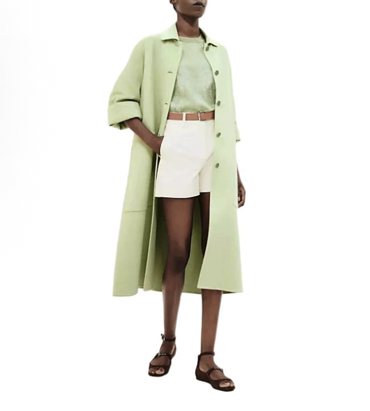 Минималистичный дизайн: Чистые линии и отсутствие лишних деталей делают это пальто идеальным выбором для тех, кто ценит минимализм и классику. Оно легко комбинируется с различными аксессуарами и обувью, позволяя создавать разнообразные образы.