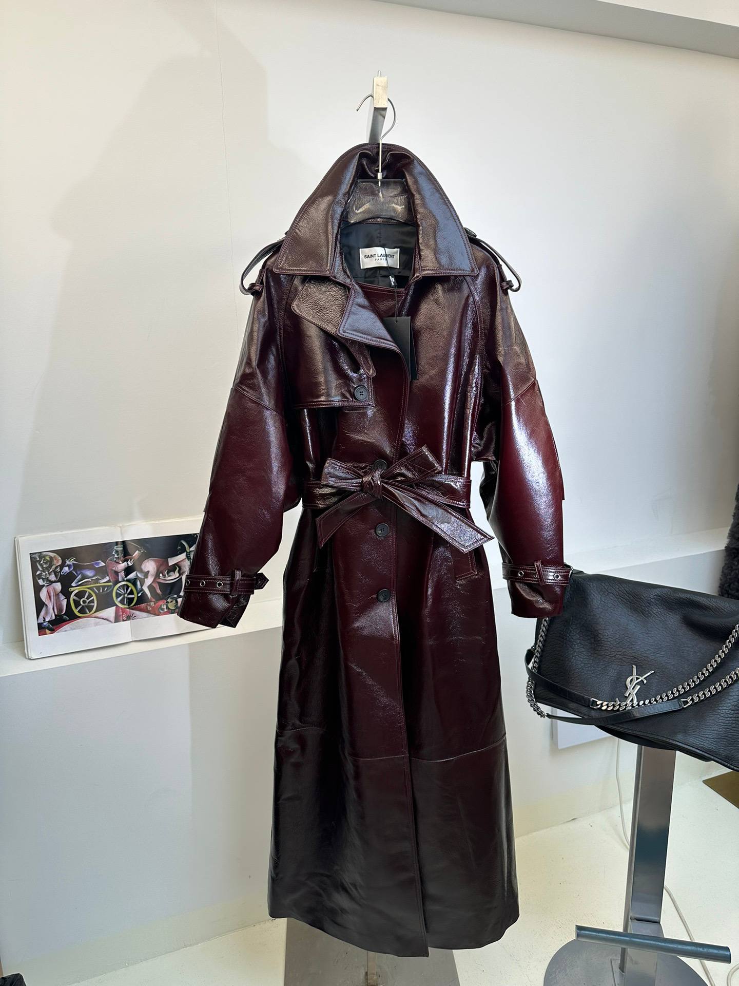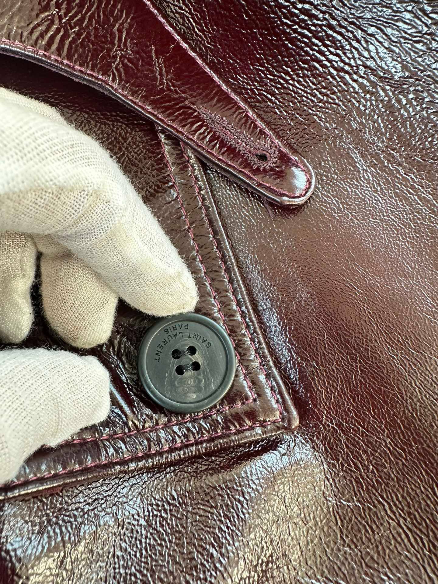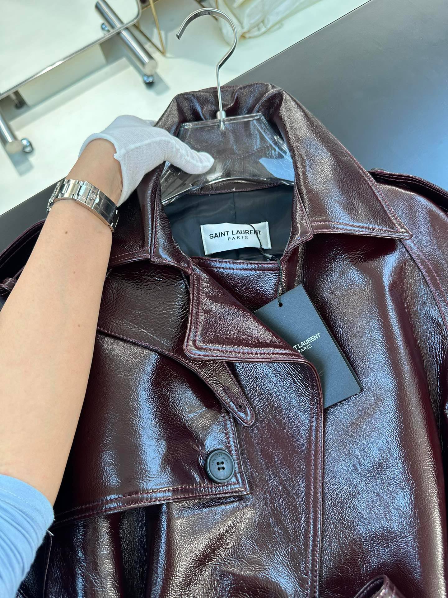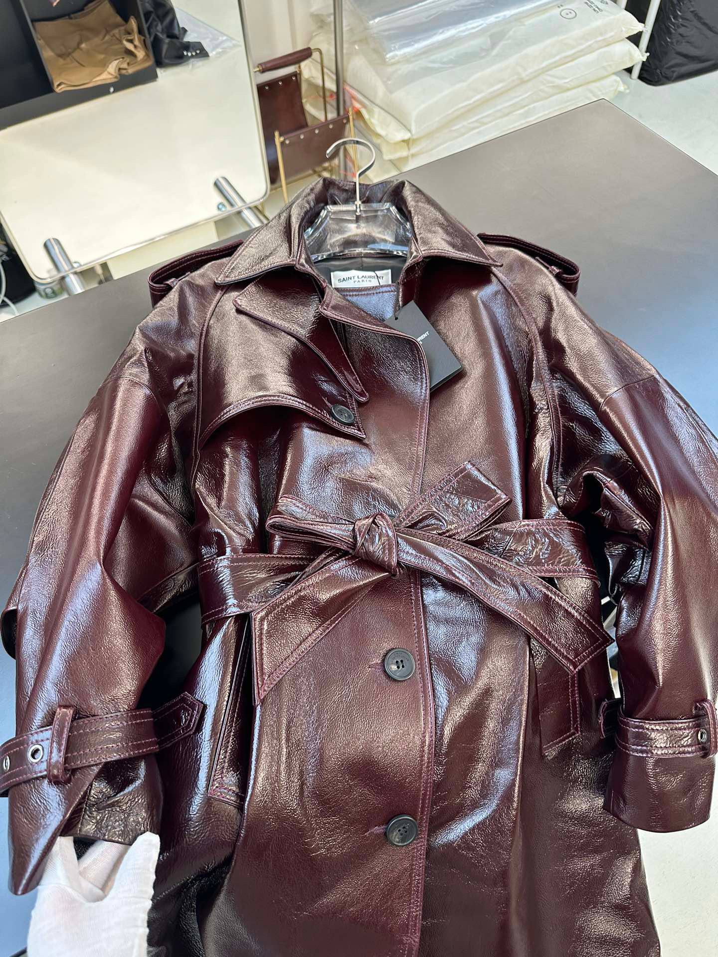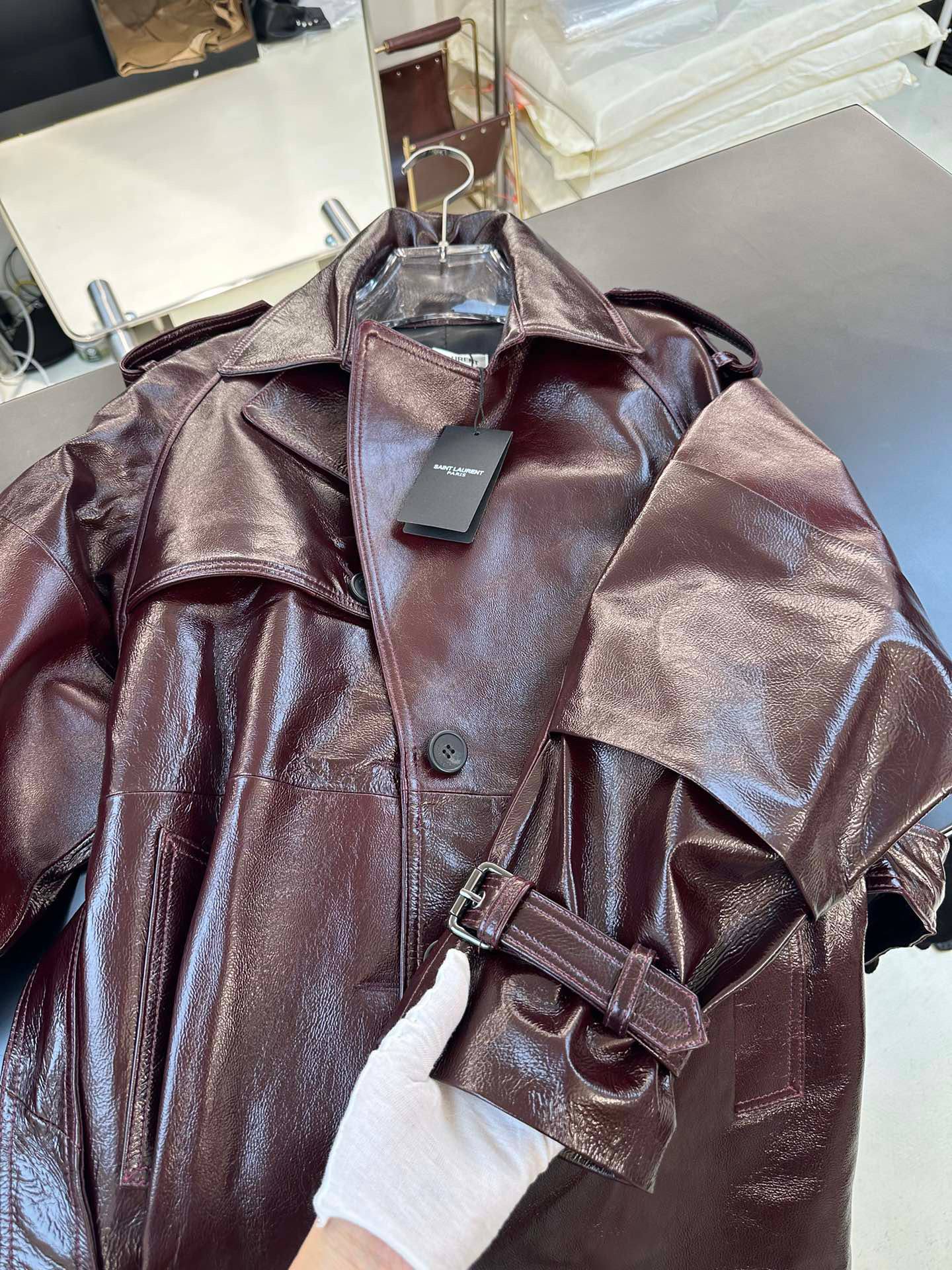SAINT LAURENT Женский кожаный плащ бордовый