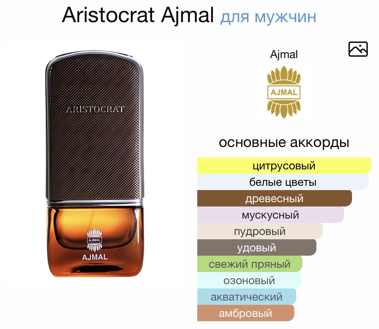 Мужская парфюмерная вода ARISTOCRAT HIM от AJMAL. Изысканный парфюм, раскрывающий величие, мощь и элегантность того, кто его носит. Благородный аромат пропитан аурой успеха и адресован мужчинам, которые хотят насладиться настоящим превосходством ароматических сочетаний этой композиции. Свежий бергамот и арбуз сочетаются с мускусным сердцем, а древесно-амбровая база олицетворяет настоящую роскошь с долговечным и смелым отпечатком.