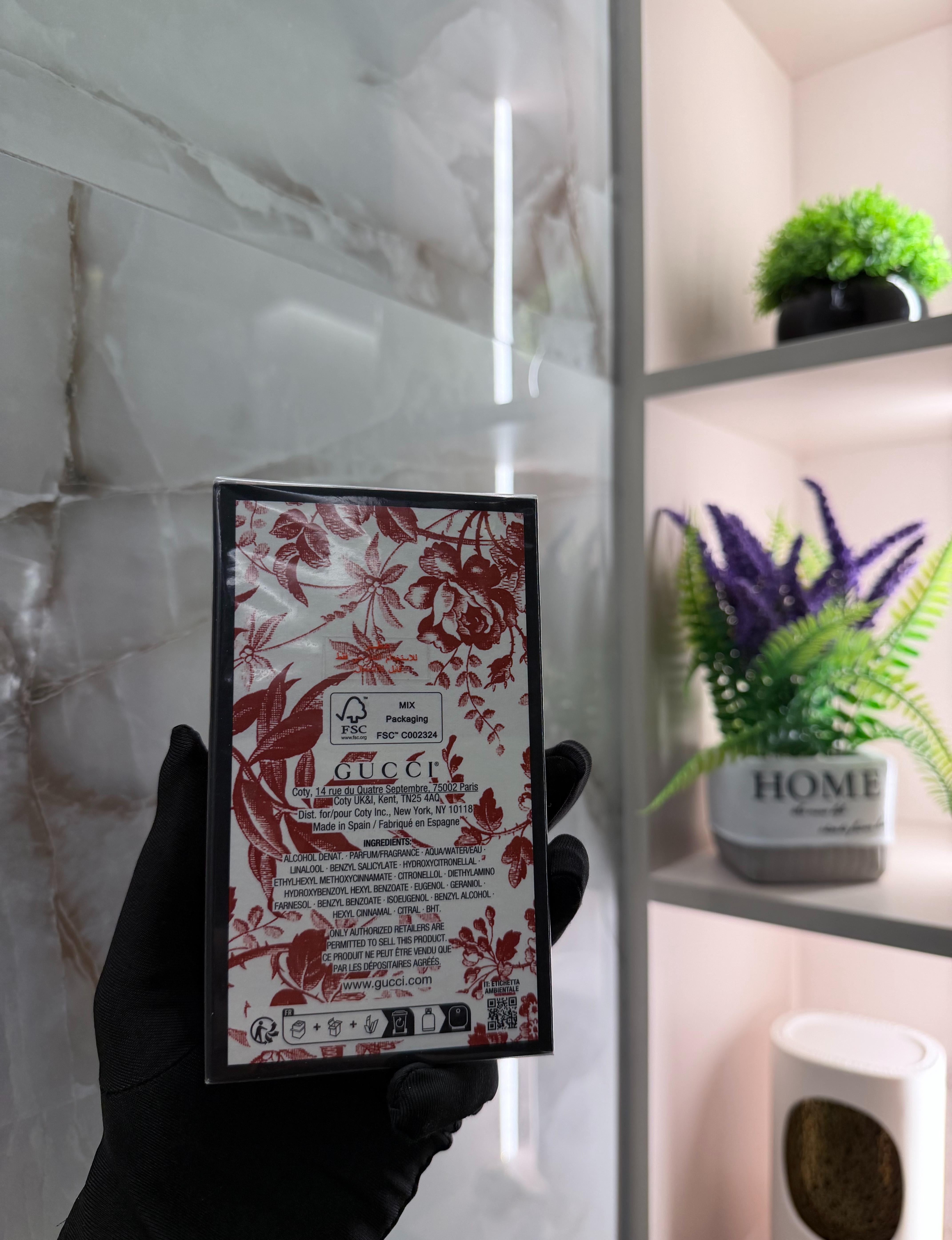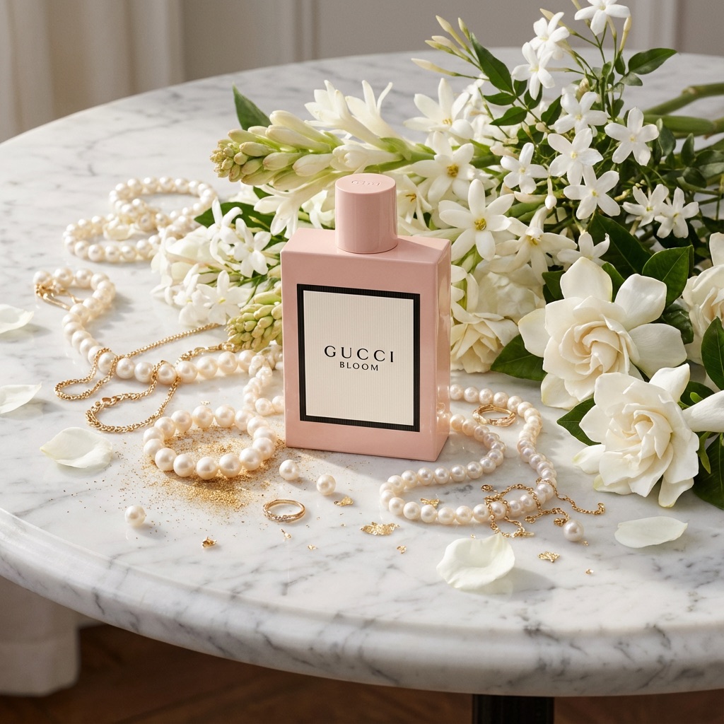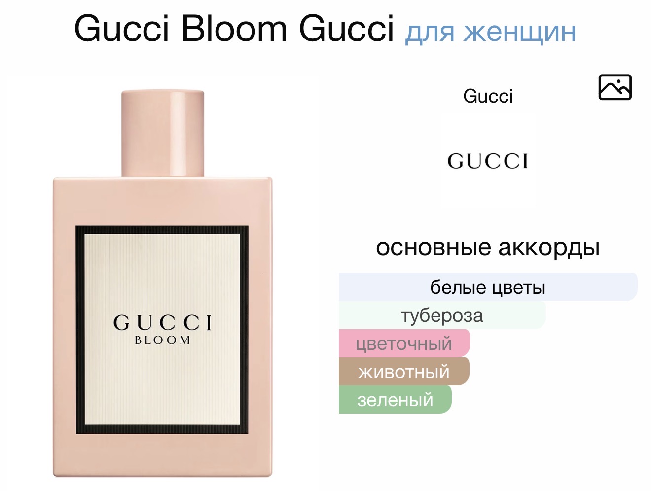 Аромат Gucci Bloom, созданный при содействии великого парфюмера Альберто Морильяса, словно расцветает, вторя своему названию. Абсолю индийской туберозы переплетается с абсолю жасмина. Нота рангунской лианы, входящая в состав аромата, используется в парфюмерии впервые. Она являет собой воплощение концепции и названия аромата. Белые соцветия этого растения по мере цветения постепенно меняют цвет от нежно-розового до темно-красного. Благоухающие цветы лианы имеют нежный женственный аромат с лёгким пудровым оттенком. Креативный директор Модного Дома Gucci Алессандро Микеле создал флакон и упаковку, передающие характер аромата, посвящённого многообразию женской красоты. Винтажный пудровый оттенок подчёркивает форму и линии флакона, декорированного логотипом Gucci в чёрной рамке. Внешние и внутренние поверхности коробочки украшены цветочным орнаментом Herbarium – красно-белым узором из листьев, вишнёвых веток и цветов.