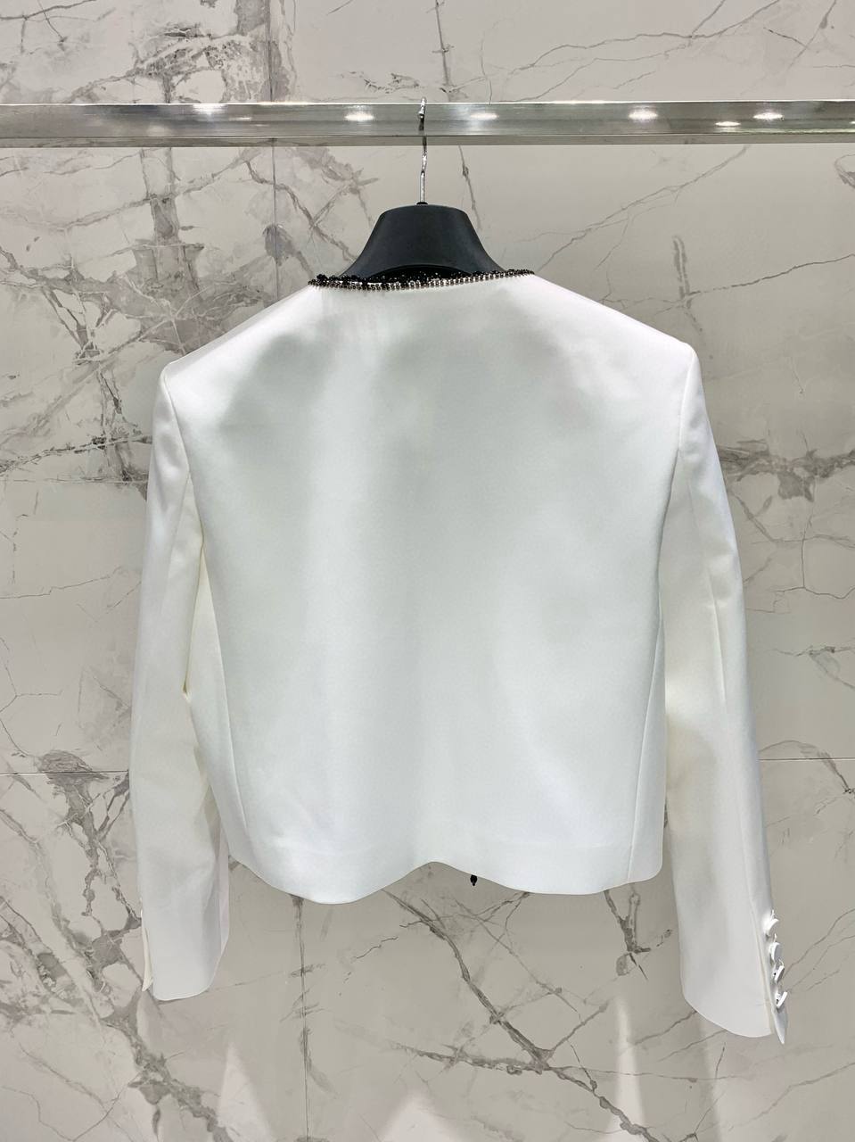 Классический укороченный крой с прямыми длинными рукавами великолепно садится по фигуре и подходит как для торжественных мероприятий, так и для роскошных повседневных выходов. Отделка бархатным кантом вдоль борта придаёт жакету завершённость и делает образ стильным и запоминающимся. Жакет прекрасно сочетается с классическими брюками или юбкой-карандаш, а также может стать выразительным акцентом в сочетании с лаконичными платьями. BALMAIN — выбор для тех, кто ценит изысканность, высокое качество и французский шик.