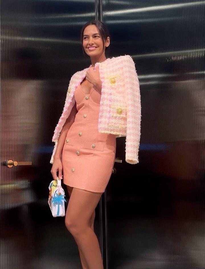 • Материал: текстурированный твид / букле с выразительной фактурой.