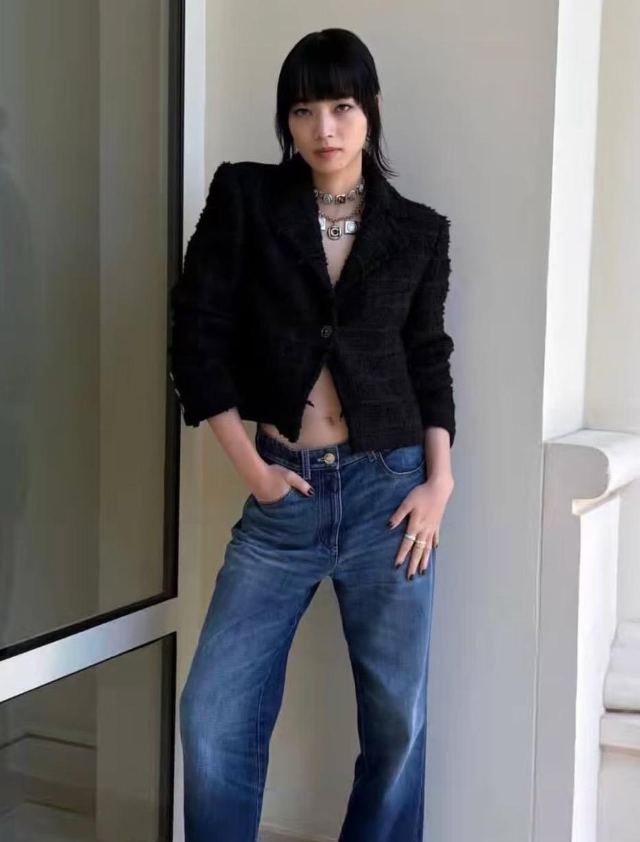 Жакет выполнен в укороченном крое, идеально сидящем по фигуре, с приталенным силуэтом, который подчеркивает талию и создает гармоничные пропорции. Воротник и манжеты украшены мягкой бахромой из той же твидовой ткани, добавляя легкий романтический акцент и текстурную глубину. Застежка на четырех золотистых металлических пуговицах с логотипом CHANEL обеспечивает удобство и стильное завершение. Рукава длинные, с аккуратным прилеганием, а подкладка из гладкого шелка гарантирует комфорт при ношении.