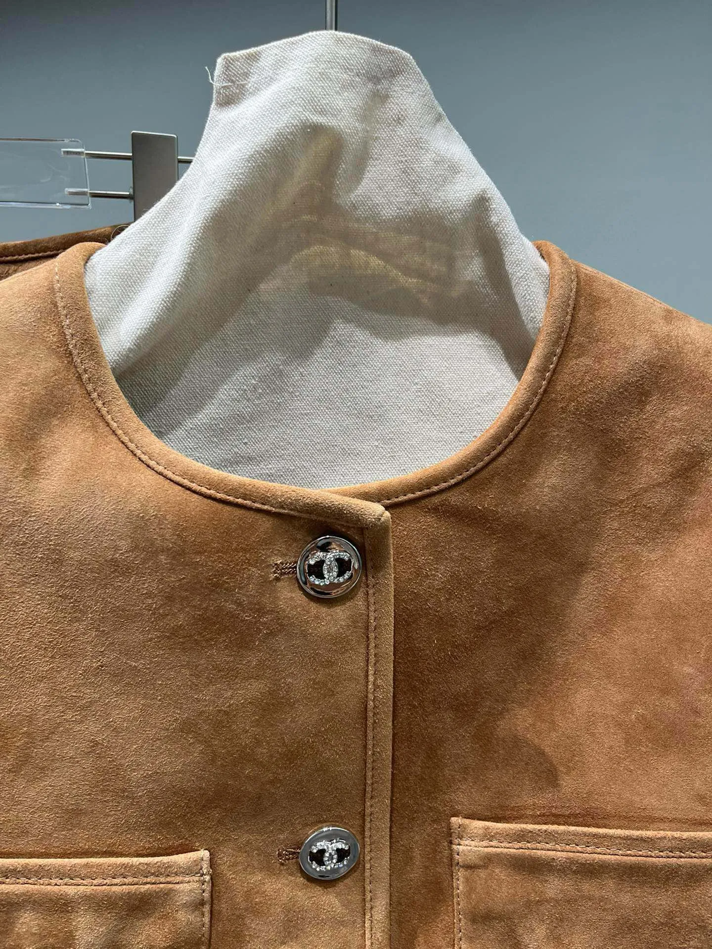 Женский жакет Chanel из натуральной козьей замши — воплощение утончённого стиля и безупречного качества. Модель выполнена в теплых карамельных тонах, что делает её универсальной для создания как повседневных, так и вечерних образов.