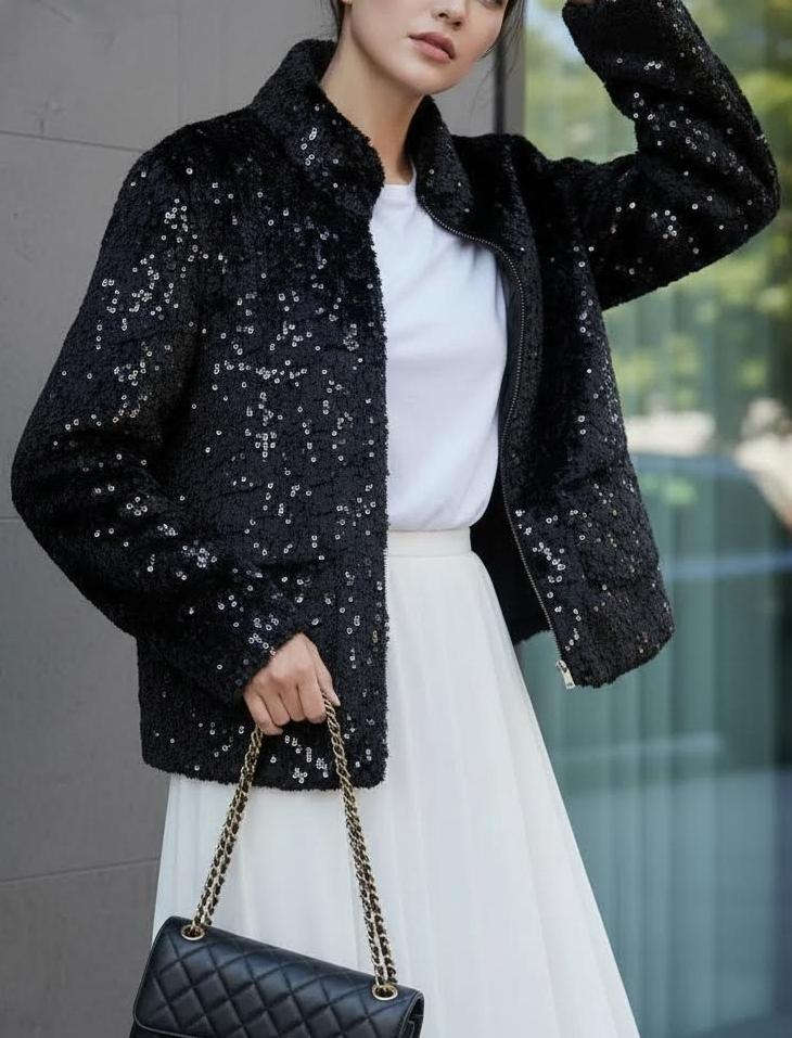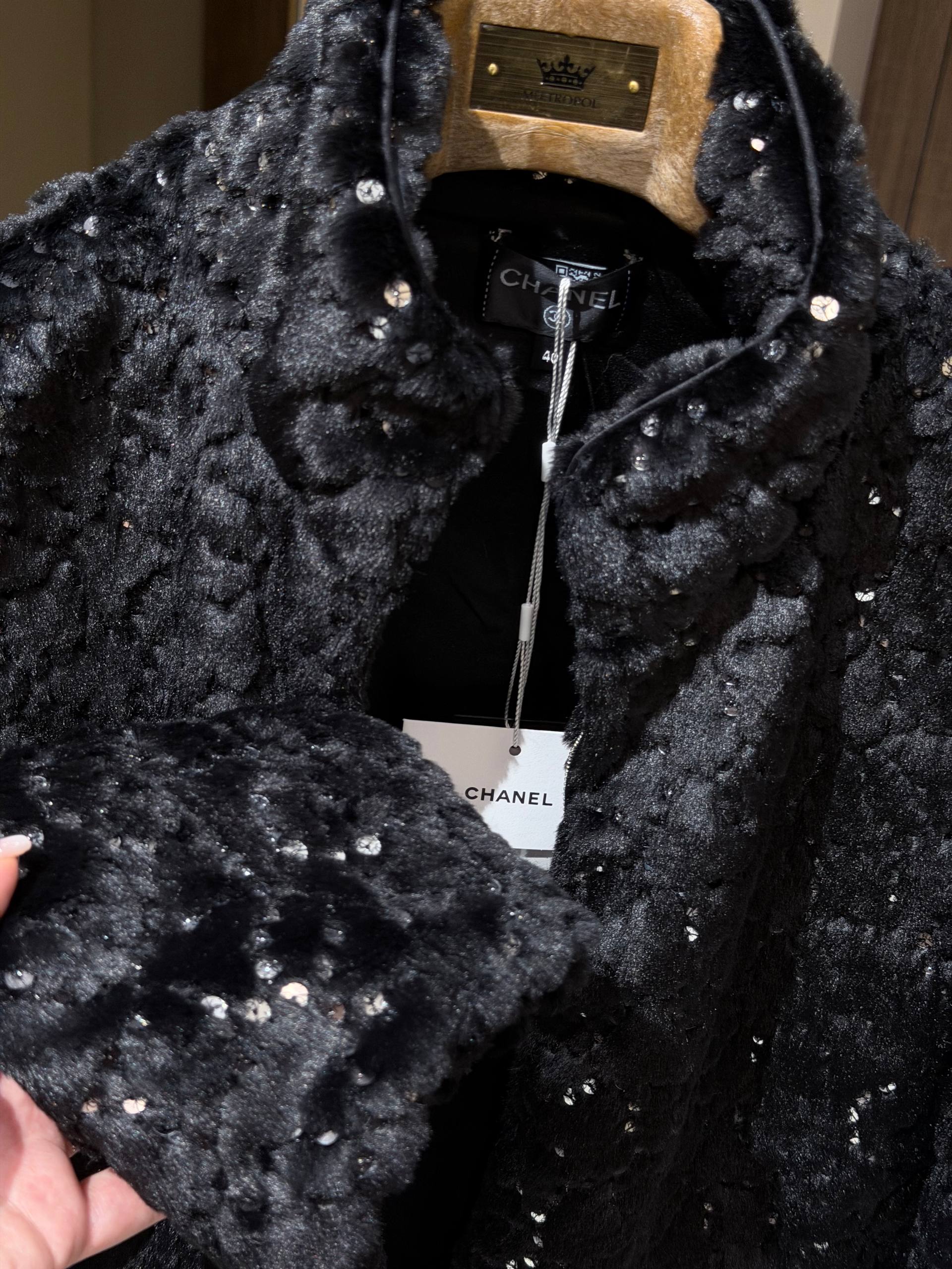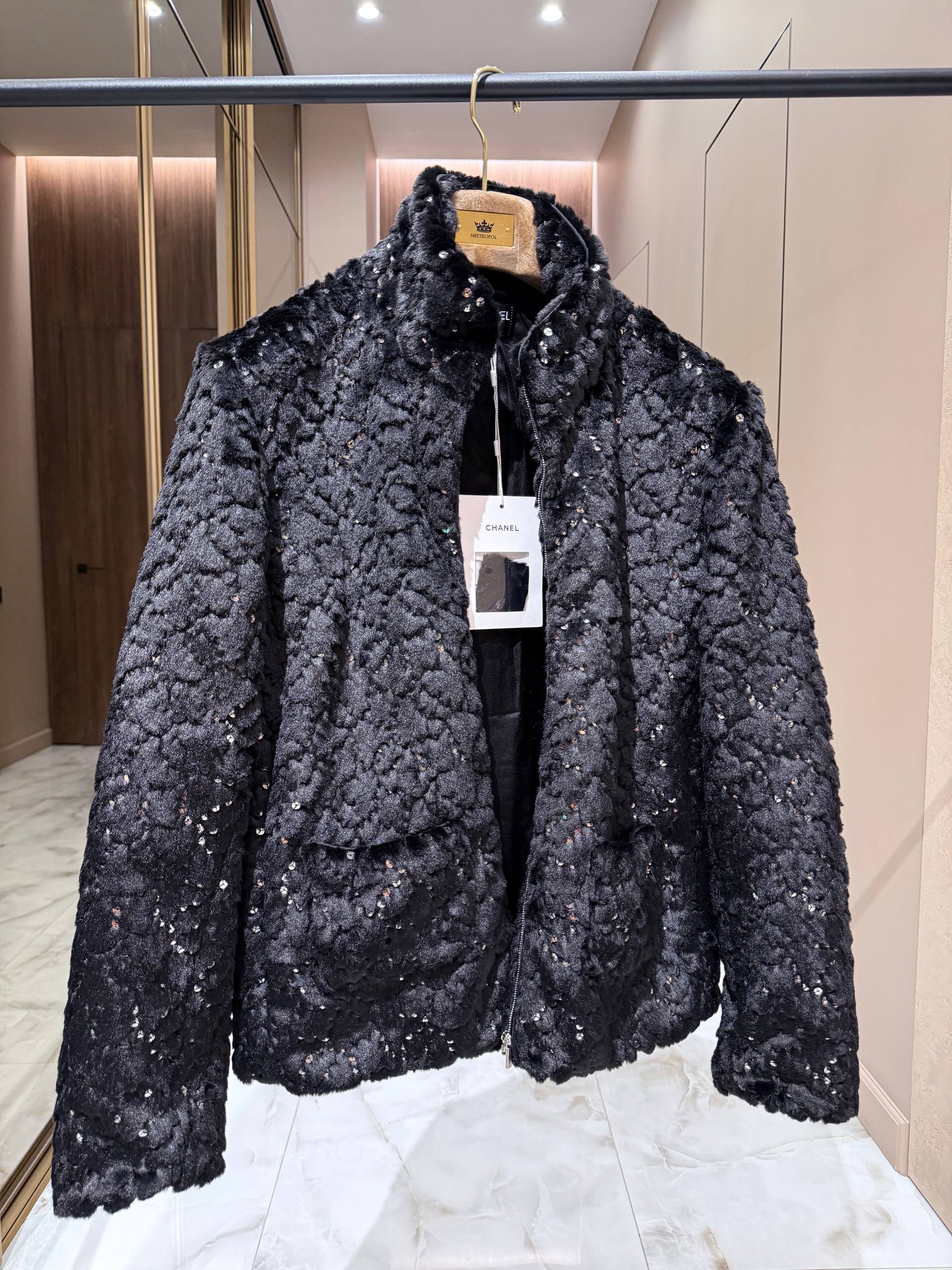 Женский жакет CHANEL из искусственного меха с пайетками — элегантная и выразительная вещь для вечернего и повседневного образа.