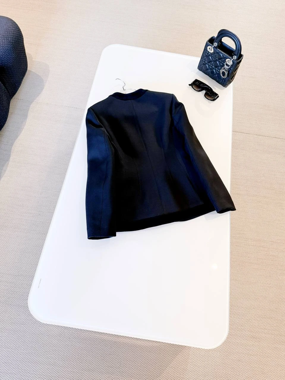 Женский жакет CHRISTIAN DIOR — элегантная классика с современным акцентом. Идеален для деловых образов и торжественных выходов, этот жакет подчёркивает талию и создаёт утончённый, ровный силуэт.