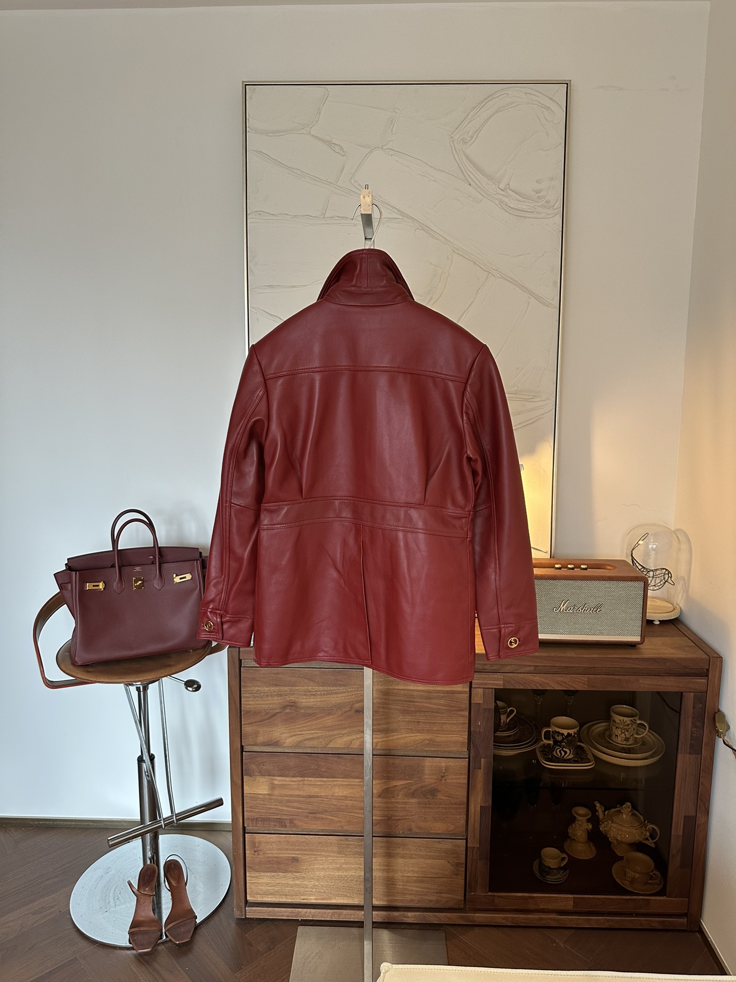 Жакет оснащён четырьмя функциональными карманами, что делает его не только стильным, но и практичным. Мягкая и гладкая текстура овечьей кожи обеспечивает комфорт и долговечность.