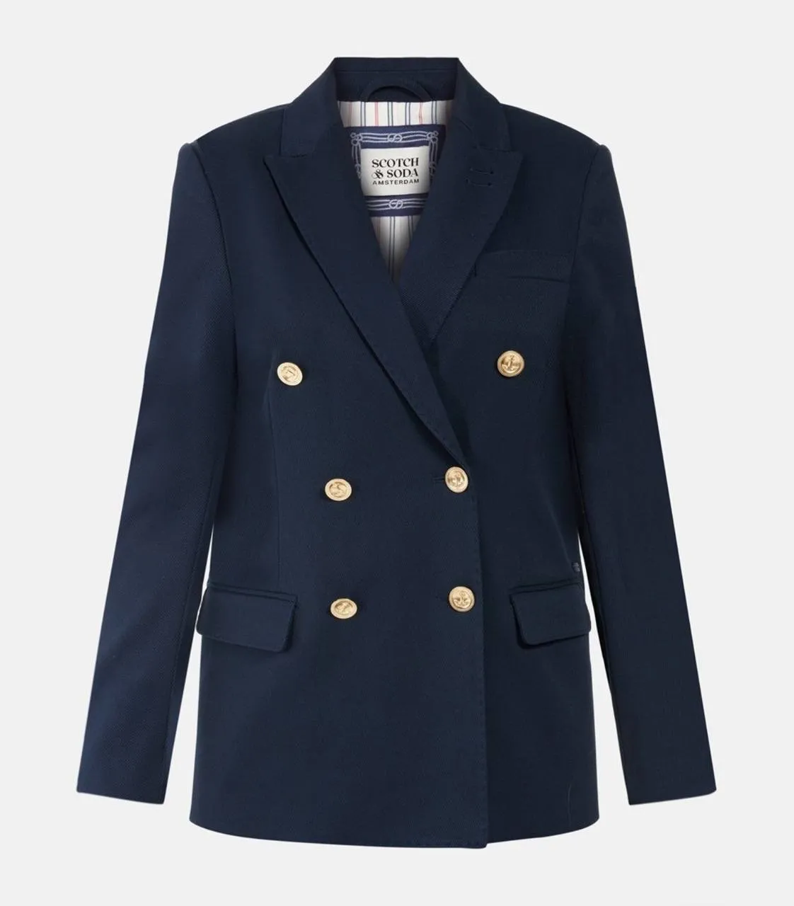 Оригинальный пиджак-блейзер Scotch&Soda из Амстердама — это идеальный выбор для стильных и современных женщин. Изготовленный из высококачественных тканей, он сочетает в себе элегантность и комфорт. Двубортный дизайн этого пиджака представлен в классическом силуэте с лёгким приталиванием, что подчёркивает фигуру, придавая образу стильный и аккуратный вид. Блейзер имеет два боковых кармана, что делает его не только модным, но и функциональным.