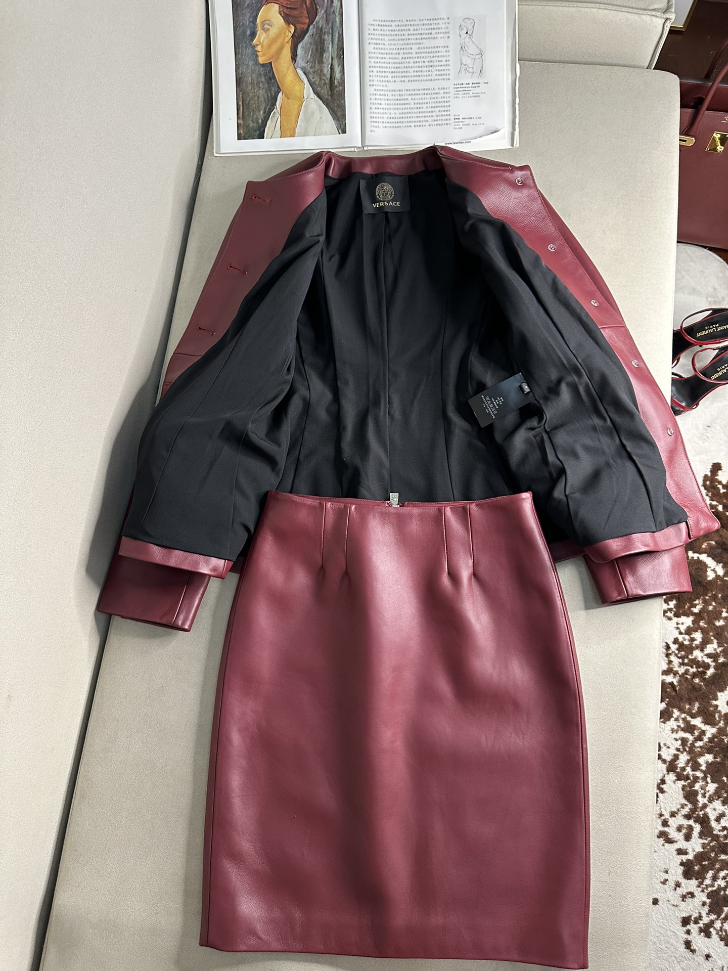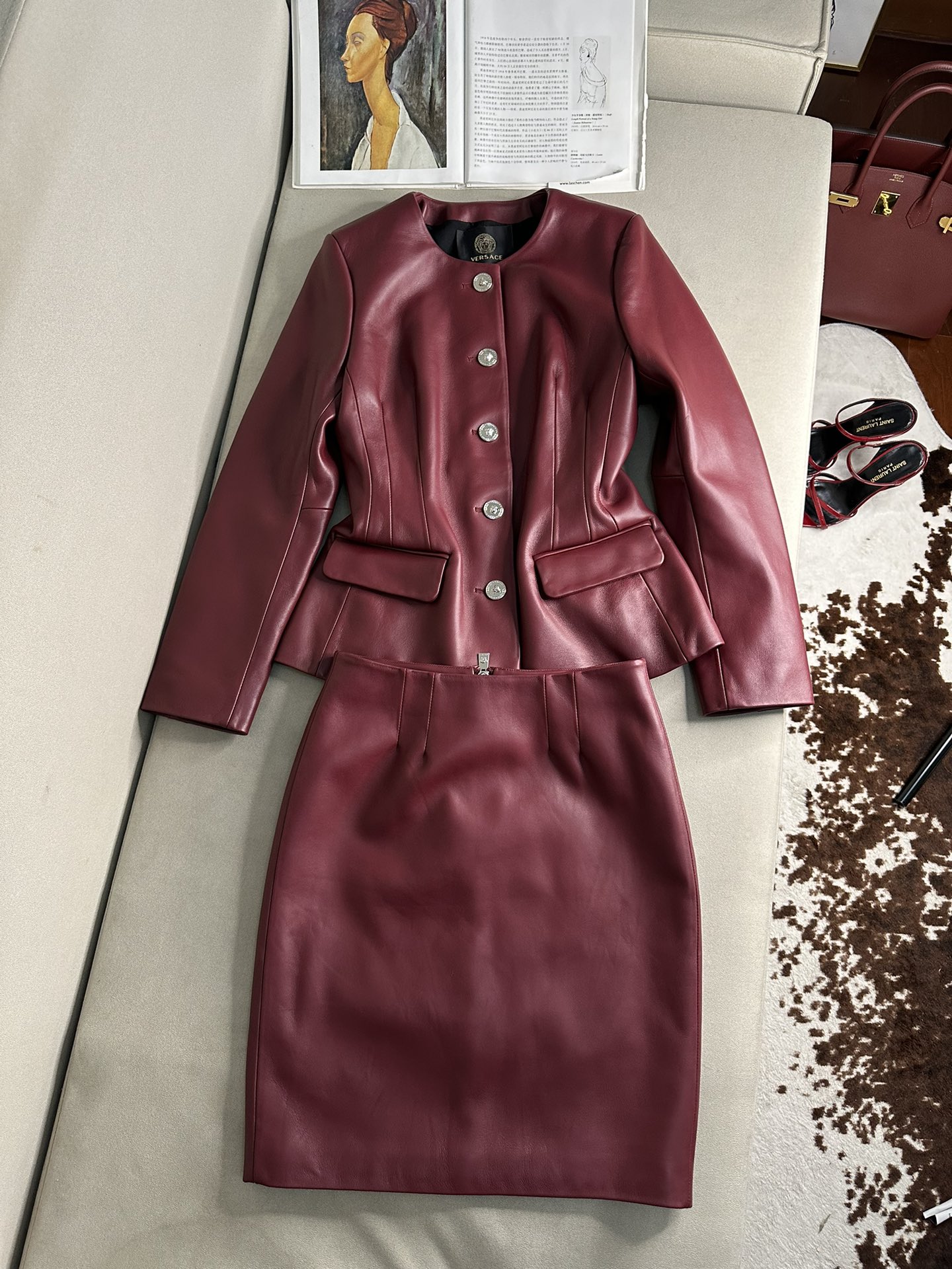Элегантный женский костюм Versace из высококачественной новозеландской овчины — воплощение роскоши и утончённого стиля.