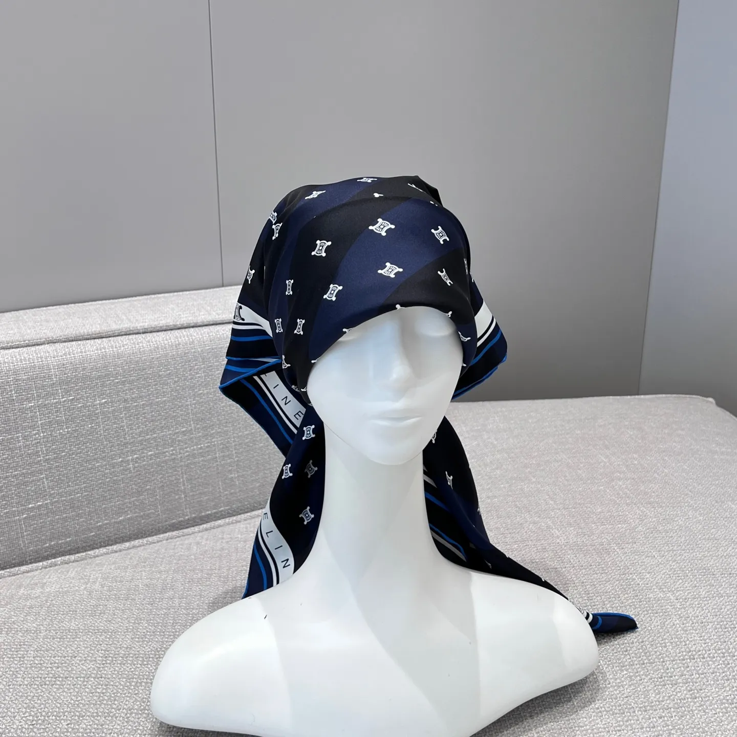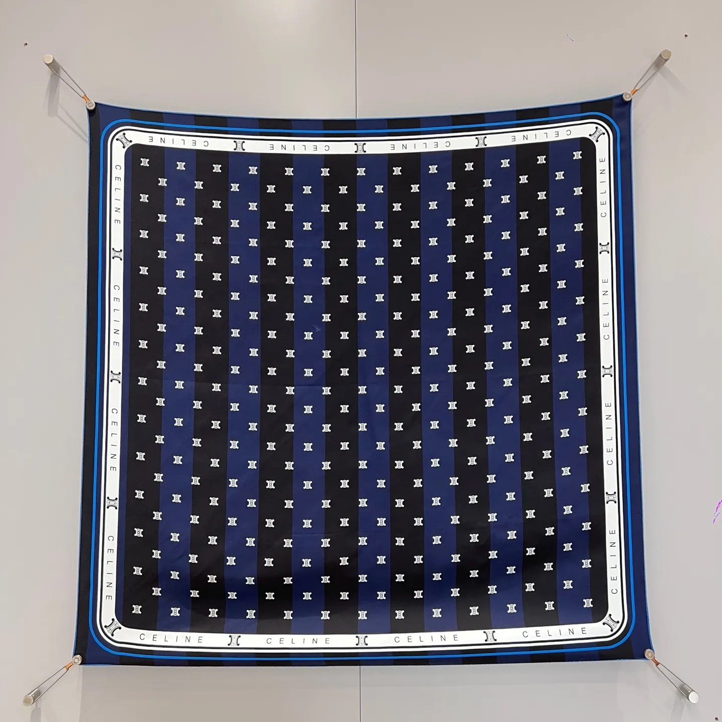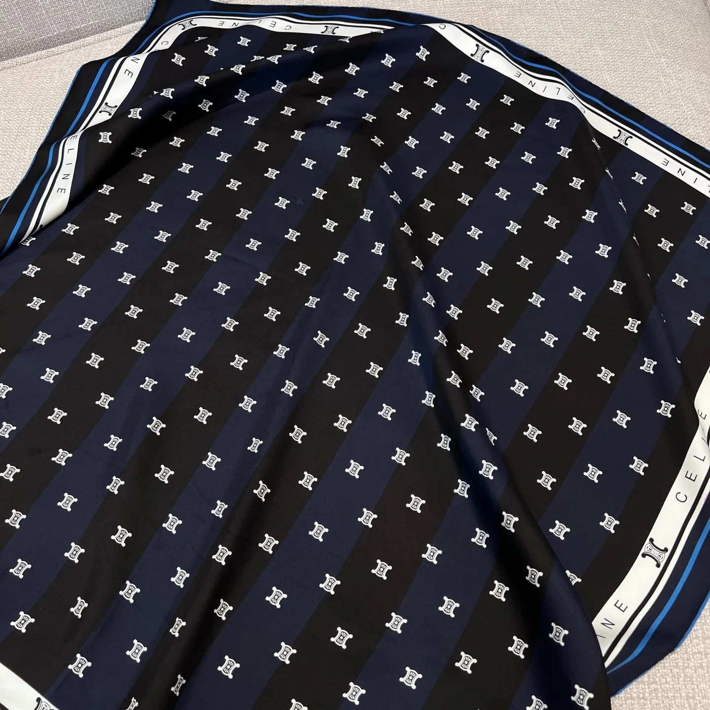 Белая и синяя кайма с чёрными надписями дополняет дизайнерскую задумку и придаёт аксессуару утонченность. Такой платок подчеркнёт Ваш вкус, подойдёт как для деловых, так и для повседневных образов, а также станет отличным подарком.