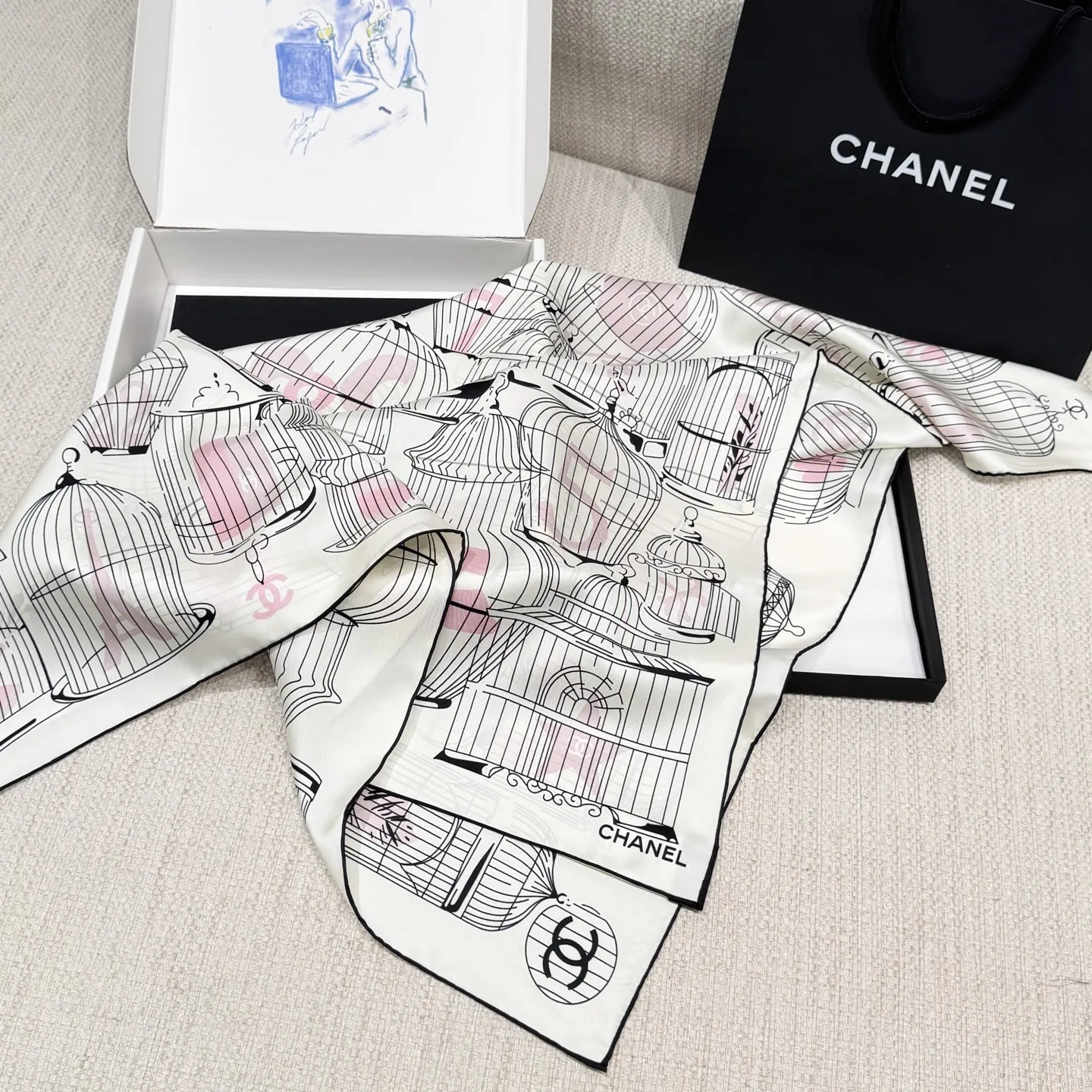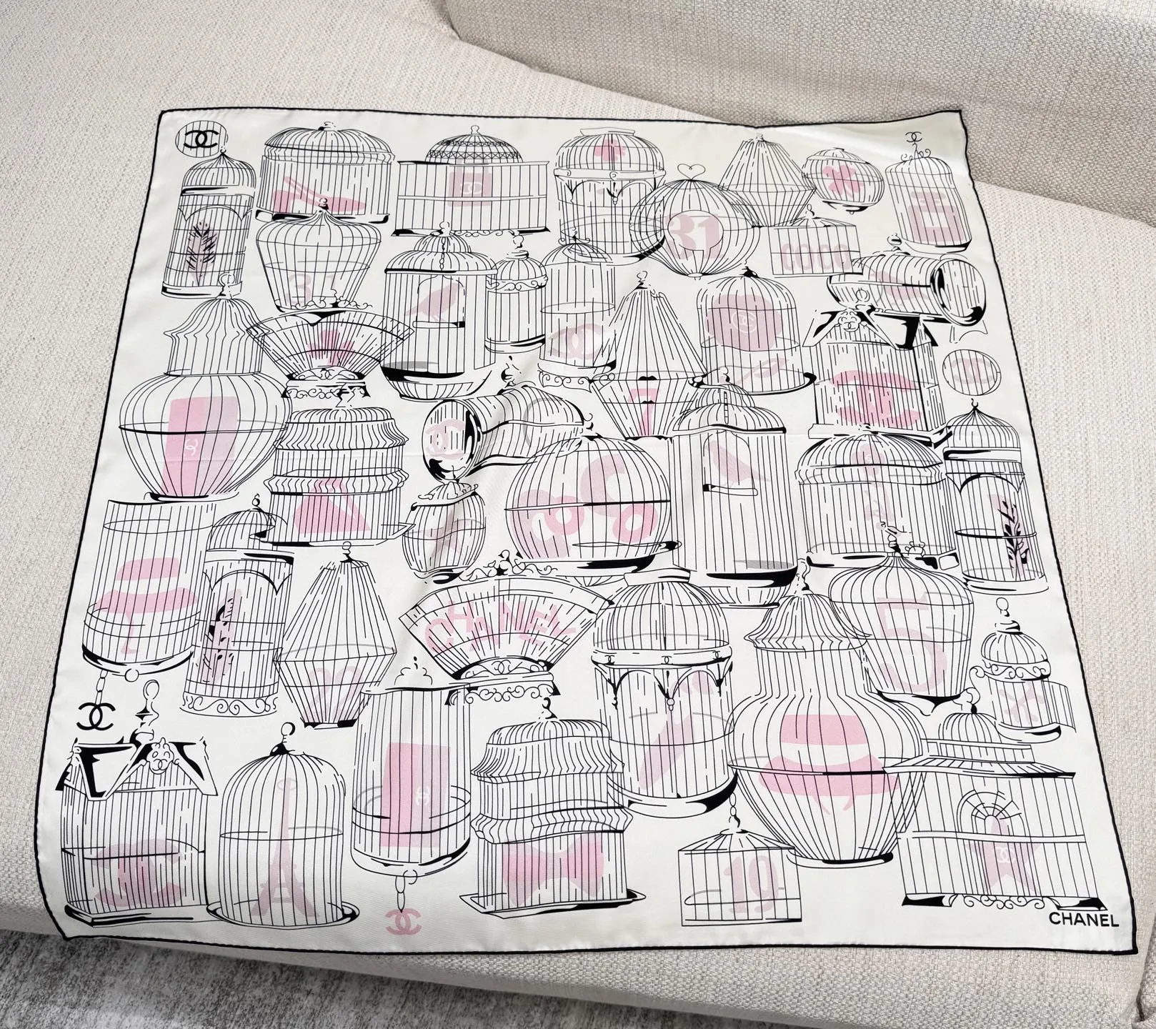 Шелковый платок Chanel 25 – универсальный и стильный аксессуар, который подчеркнет ваш безупречный вкус. Выполнен из 100% шелковой саржи и украшен узором, вдохновленным квартирой Габриэль Шанель. Детали в виде изящных птичьих клеток на черном фоне придают платку элегантность и утонченность. Этот платок станет прекрасным дополнением к любому гардеробу, будь то классический или современный стиль.