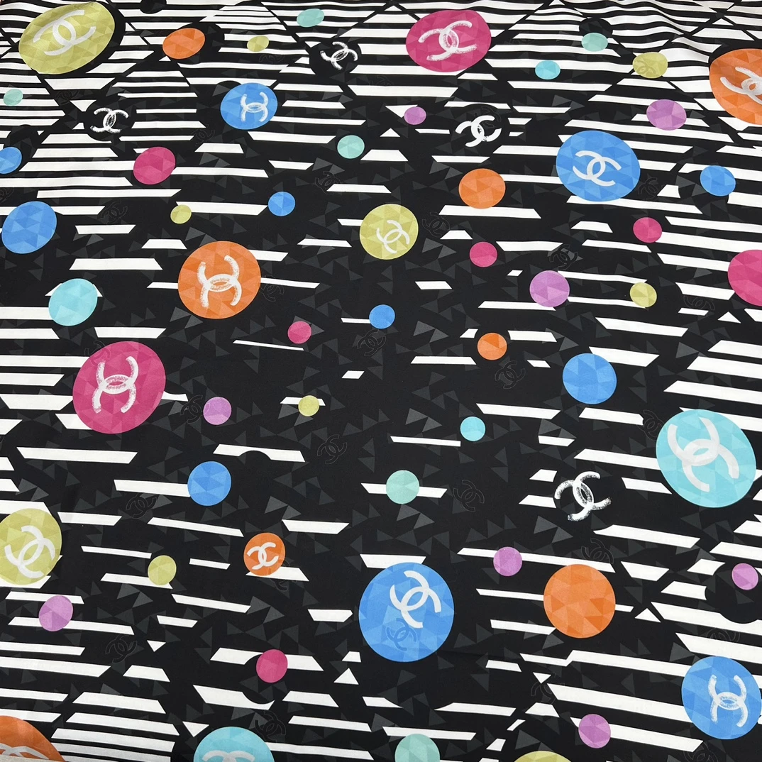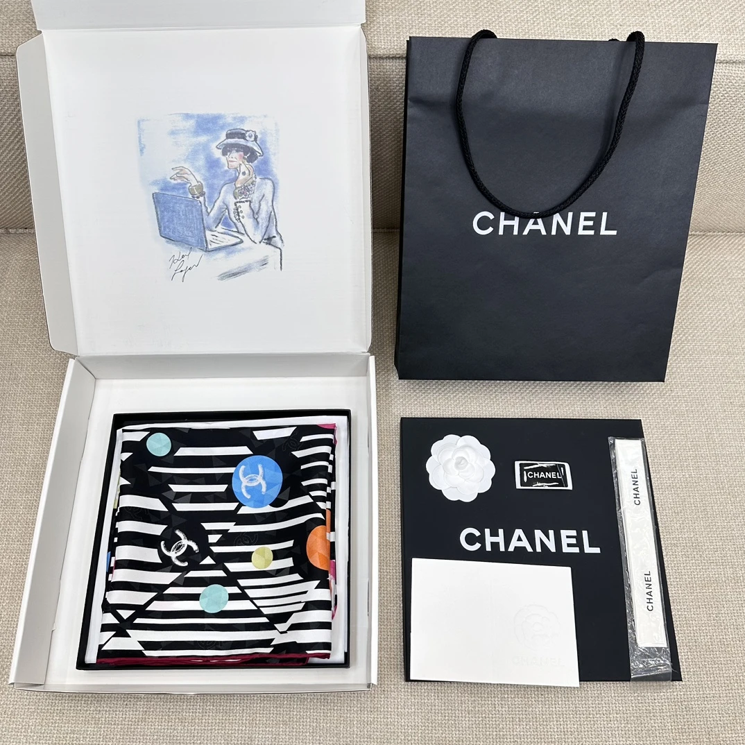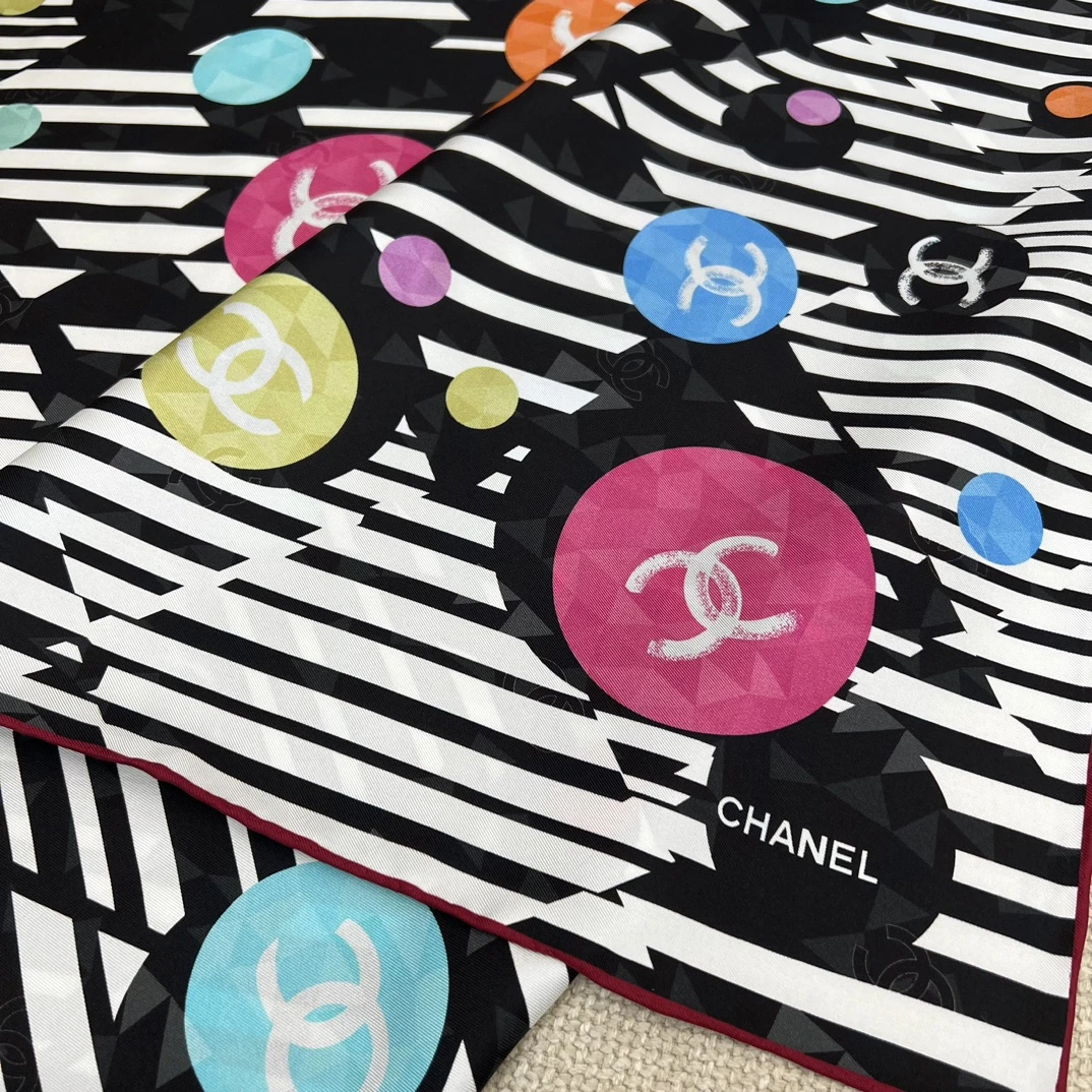 Роскошный шёлковый платок Chanel — воплощение элегантности и утончённого стиля. Легкая и приятная к телу ткань нежно струится, подчеркивая изысканность образа. Яркий дизайн с фирменным логотипом Chanel сочетает динамичные чёрно-белые полосы с разноцветными кругами, создавая эффект современного арта. Каждая деталь платка отражает уникальный подход модного дома к аксессуарам: безупречное качество, идеальная обработка краёв, гармония цвета и формы. Такой платок станет ярким акцентом вашего гардероба и добавит нотку французского шика, будь то классический наряд или повседневный стиль.
