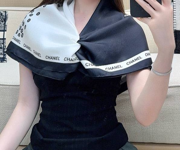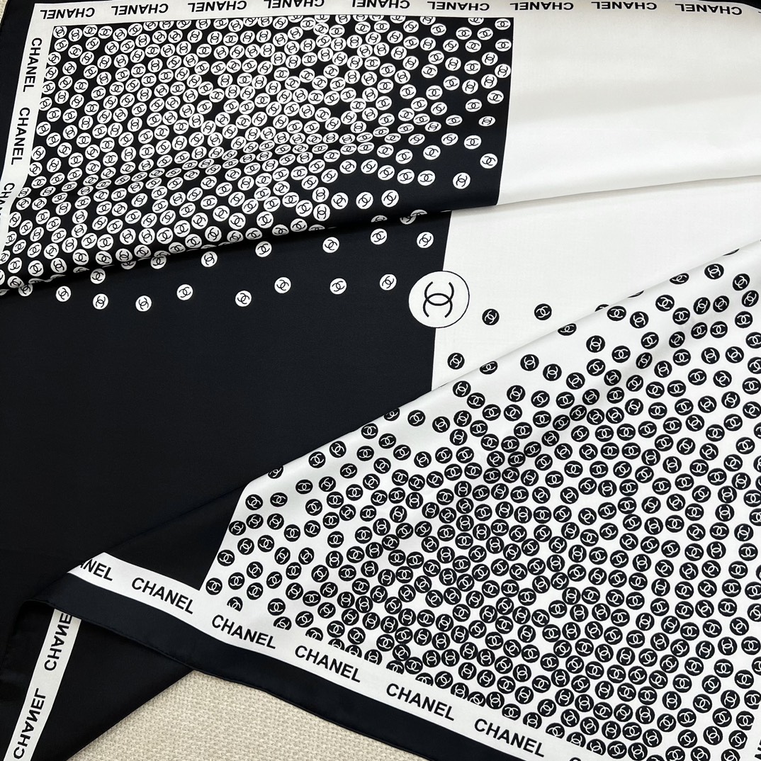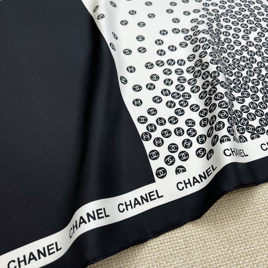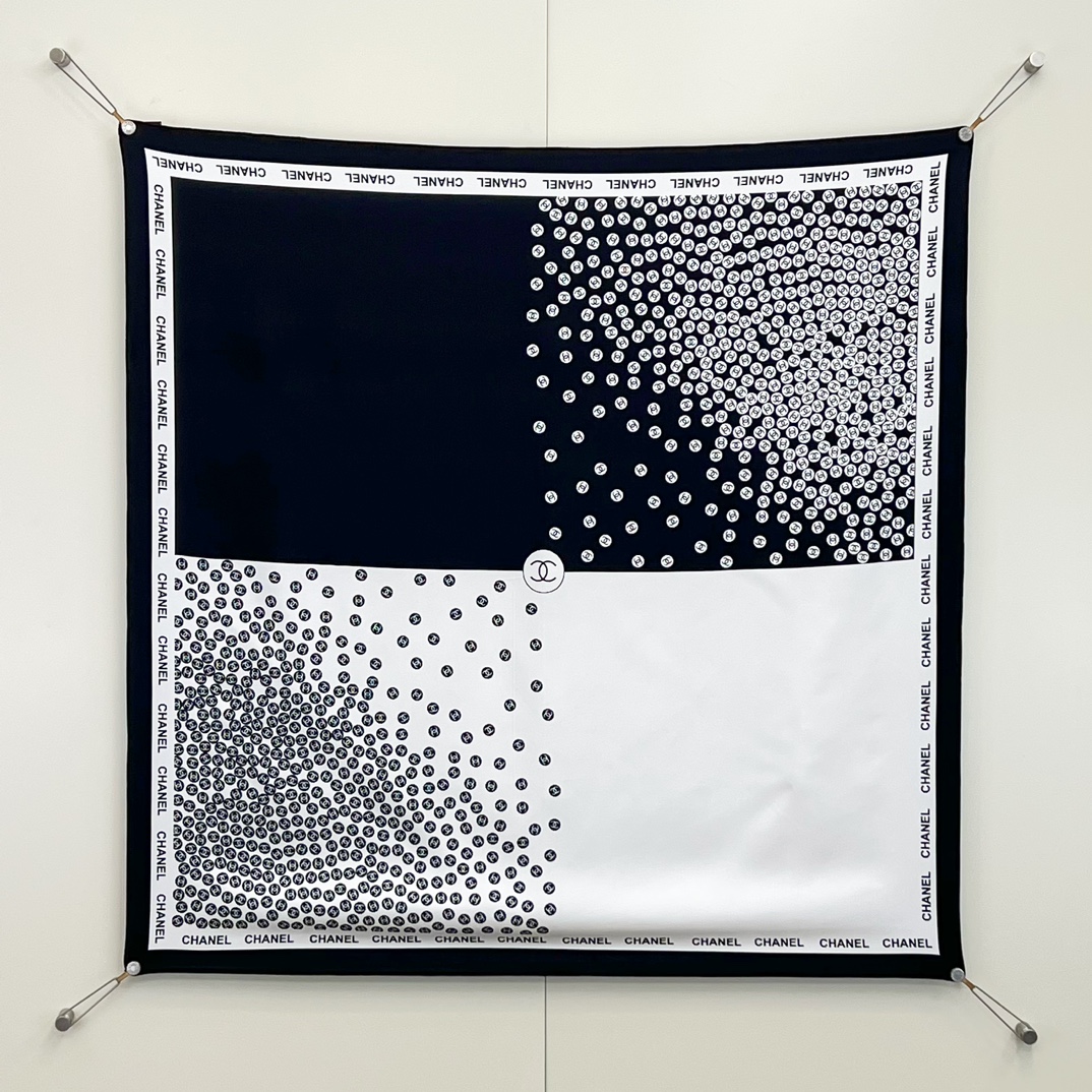 Изысканный шелковый платок CHANEL, воплощение элегантности и стиля. Этот маленький квадратный шарф размером 90х90 см выполнен из шелка высочайшего качества, что гарантирует его невероятную мягкость и приятное прикосновение к коже. Классическое сочетание черного и белого цветов в сочетании с игривым узором из маленьких кружочков придает аксессуару универсальность и позволяет ему идеально вписаться в любой образ. Будь то небрежно повязанный на шее, украшающий вашу сумочку или элегантно вплетенный в волосы, этот платок CHANEL станет незаменимым акцентом, подчеркивающим ваш безупречный вкус и любовь к легендарному бренду.