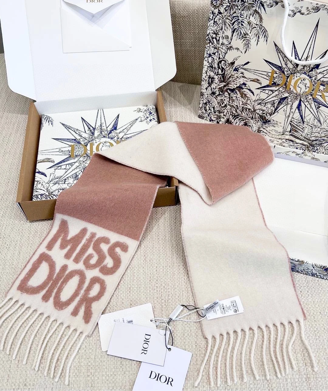 Элегантный и мягкий шарф из кашемира с крупным жаккардовым логотипом MISS DIOR. Идеальное дополнение к повседневному и вечернему образу — согреет в прохладную погоду и подчеркнёт стиль.