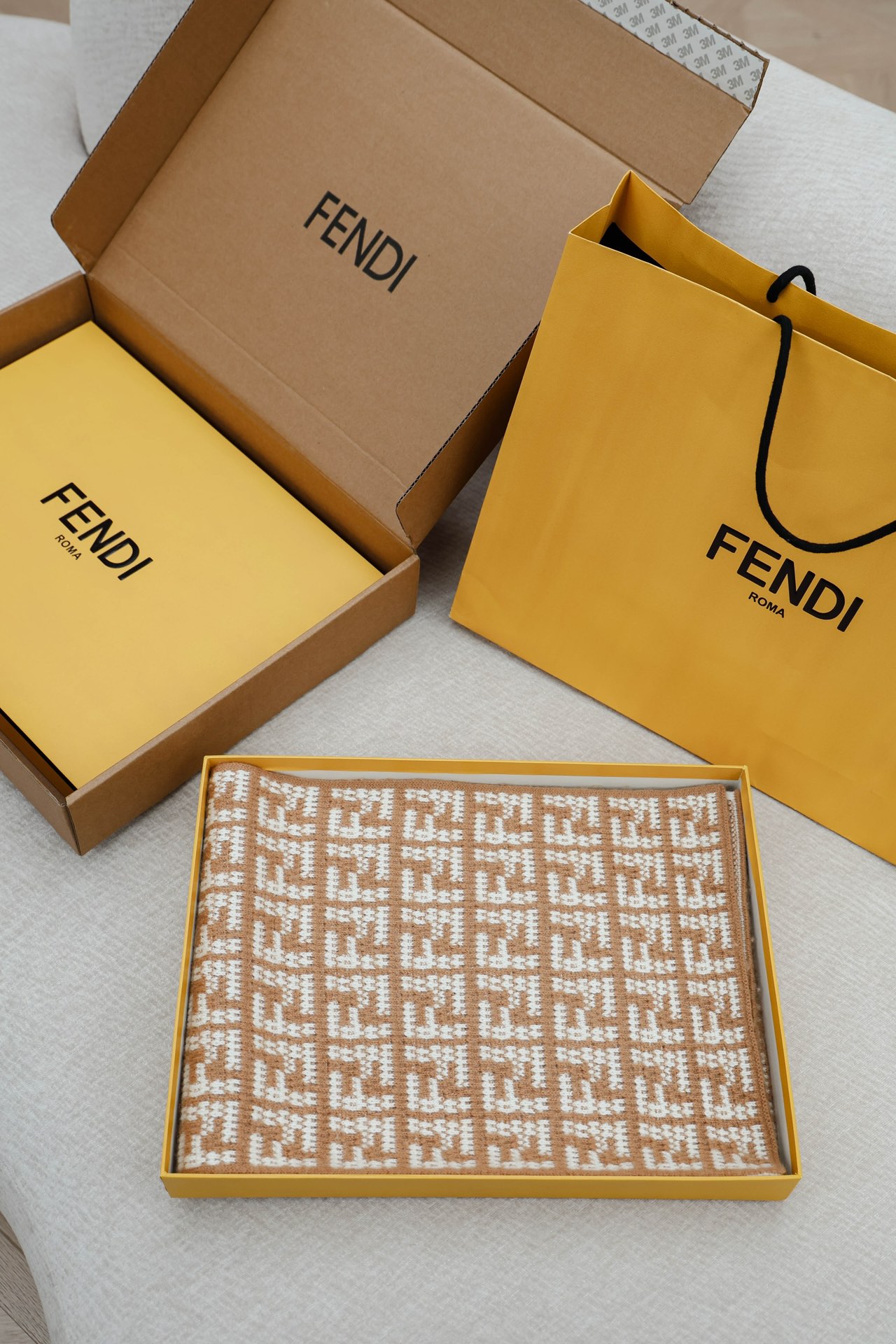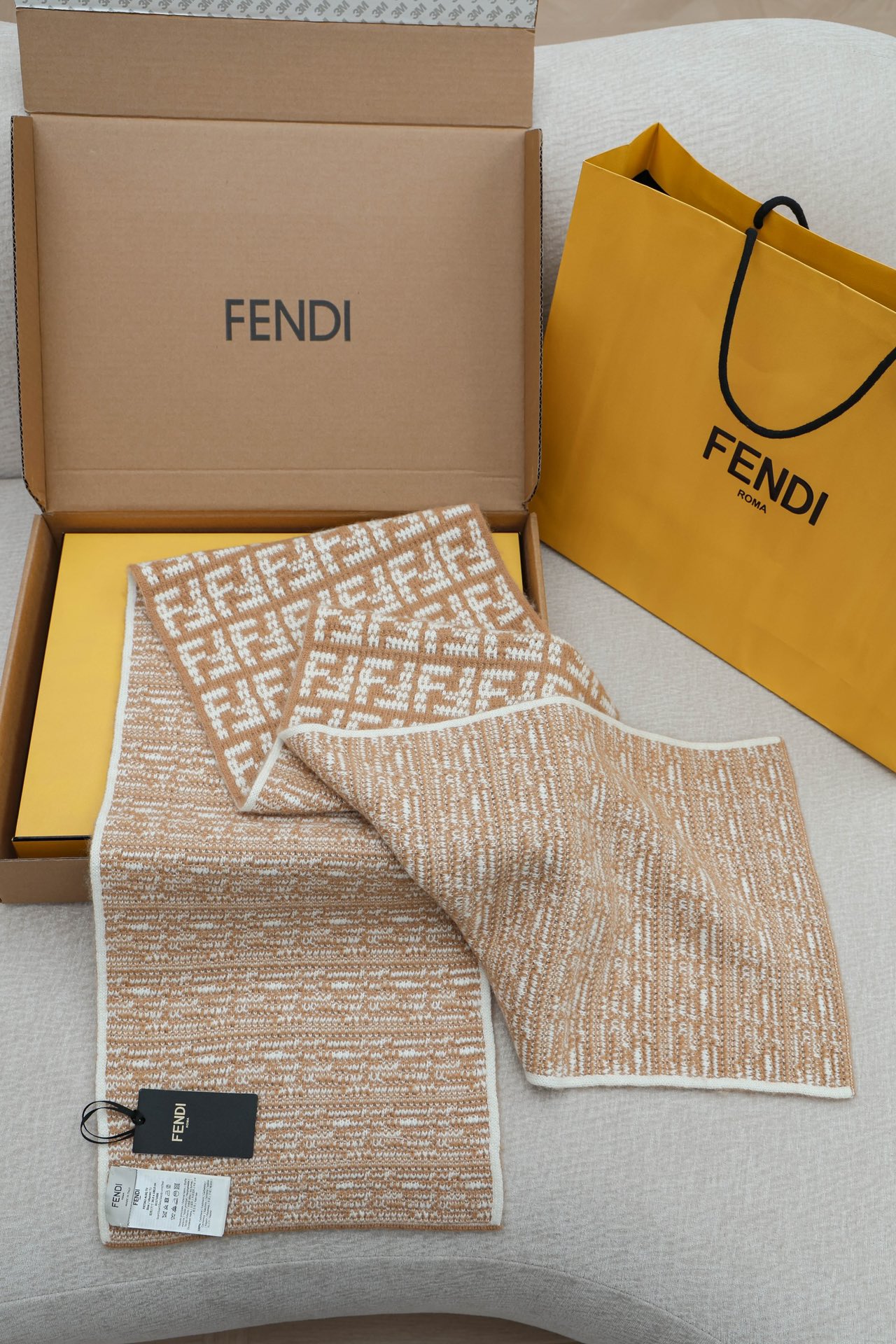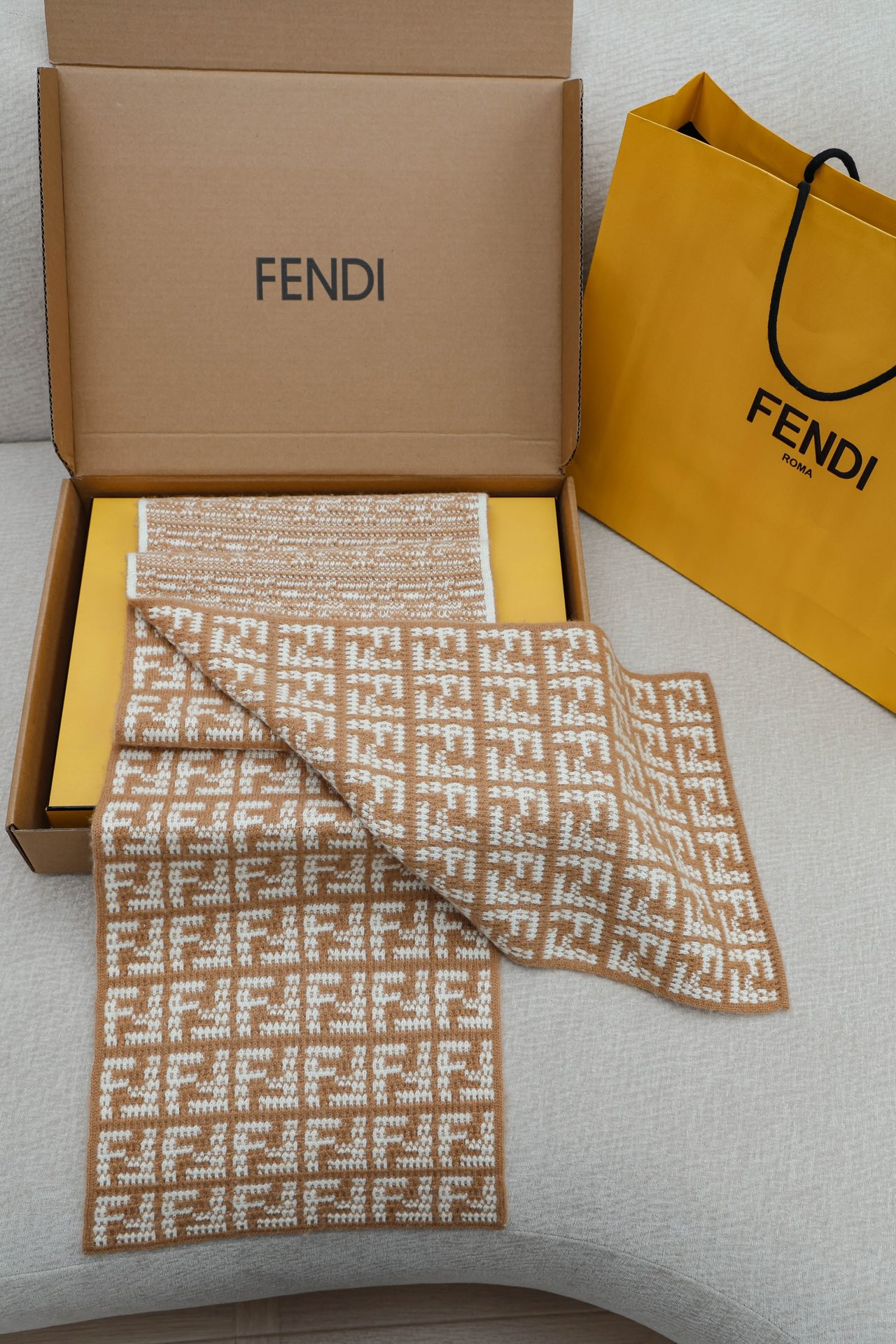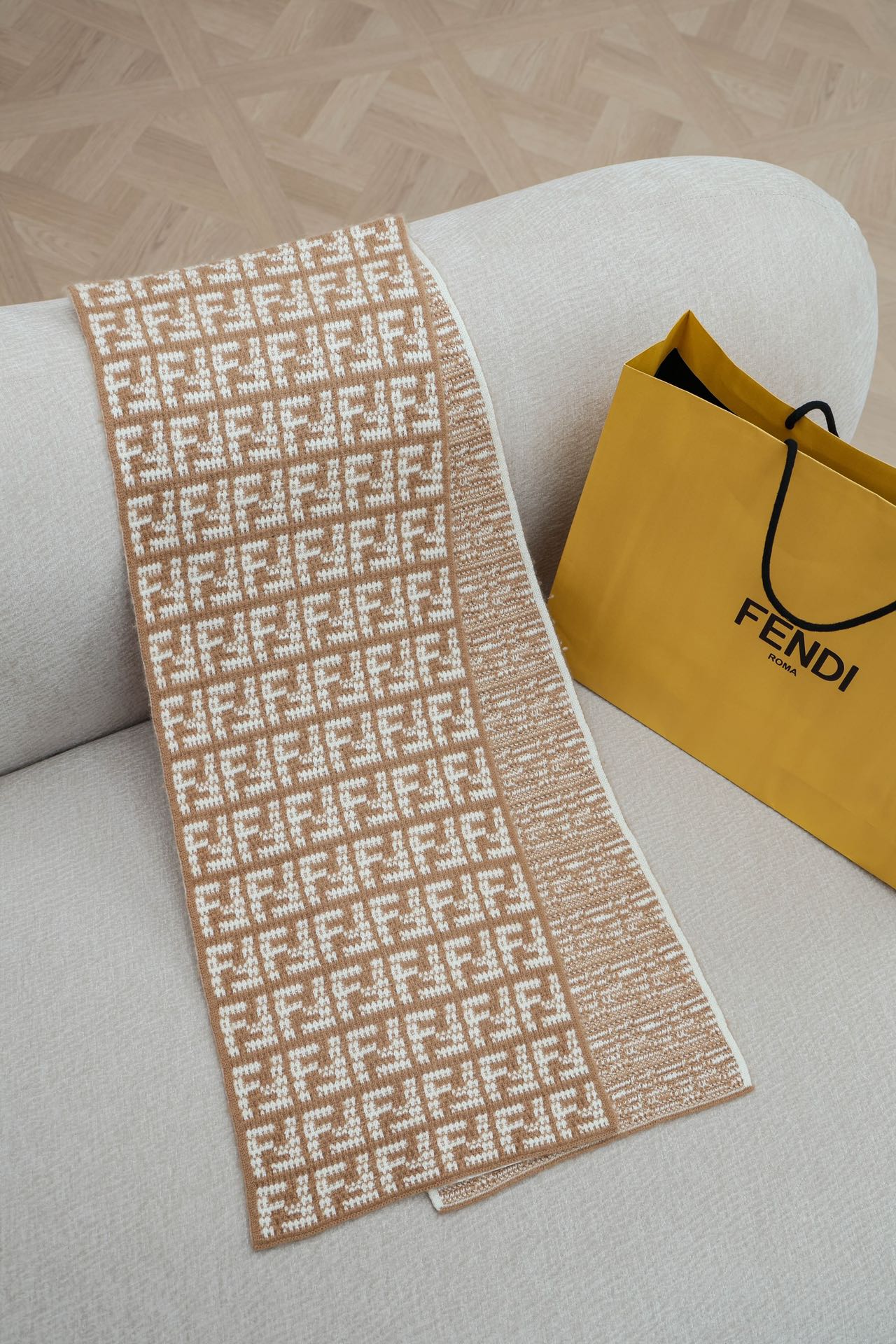 • Дизайн: жаккард с фирменным мотивом FF, реверсивная вязка.