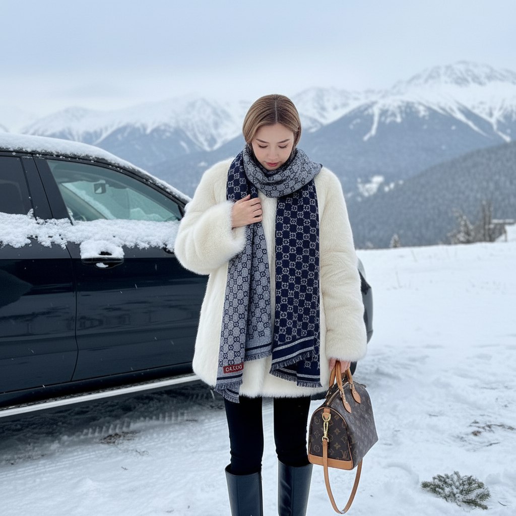 • Форма: прямоугольный шарф универсального кроя, можно носить как классически на шее, поверх пальто или накидывать на плечи.