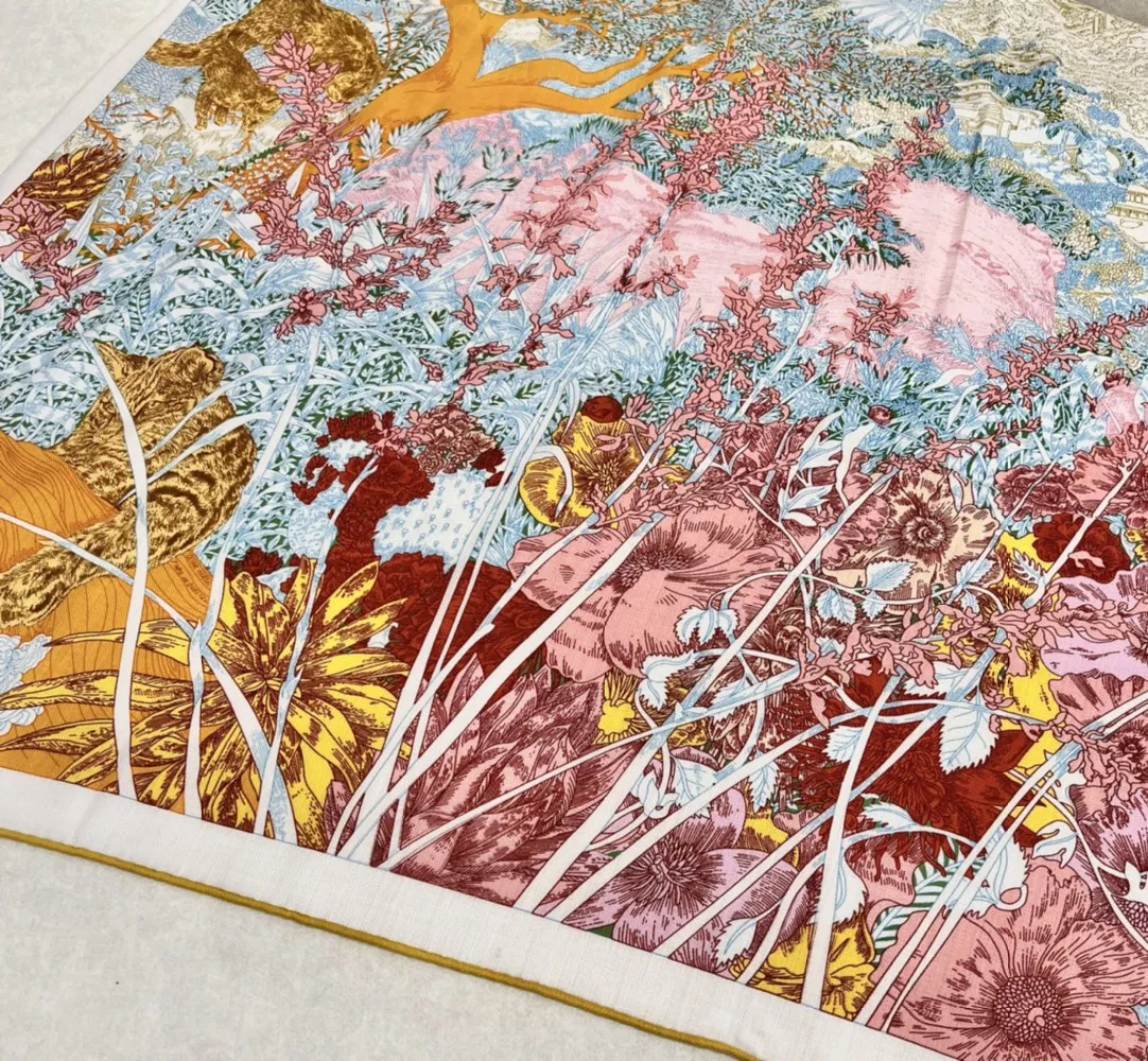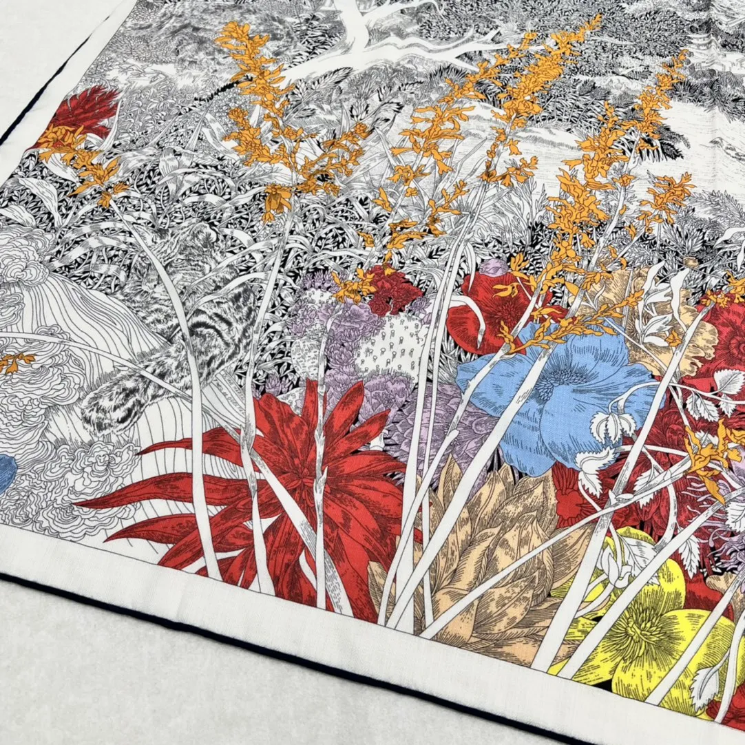 Погрузитесь в мир роскоши с этим великолепным платком, выполненным из 70% кашемира и 30% шелка тутового шелкопряда. Этот роскошный аксессуар, украшенный полностью ручной скруткой, представляет собой уникальное произведение искусства, отражающее красоту и многообразие окружающей природы Лос-Анджелеса.