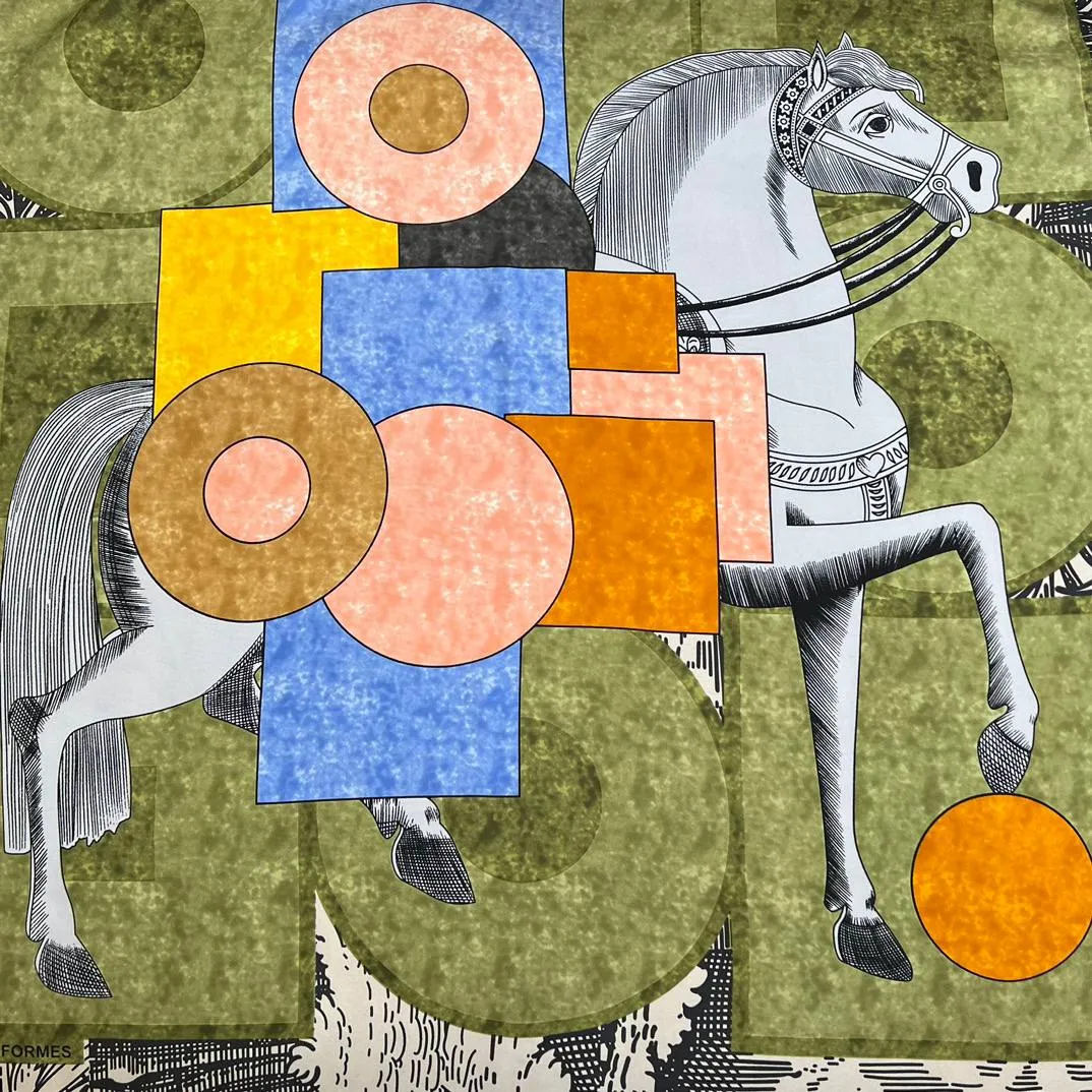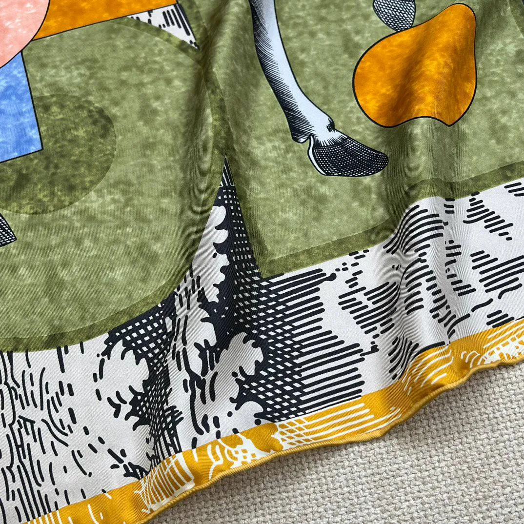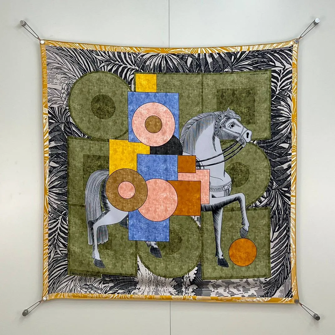 Платок от Hermès «Элегантный рыцарь» — это не просто платок, а истинный шедевр искусства, который объединяет в себе элегантность и традиции. Изготовленный из 100% шелка, этот платок обладает невероятной мягкостью и блеском, что придаёт ему эксклюзивный вид. Каждый элемент дизайна проработан с особым вниманием к деталям: уникальная техника печати, напоминающая о древних пирамидах, создаёт эффект глубины и объема, а сочетание классических и ретро-визуальных эффектов позволяет окунуться в мир исторической эстетики.