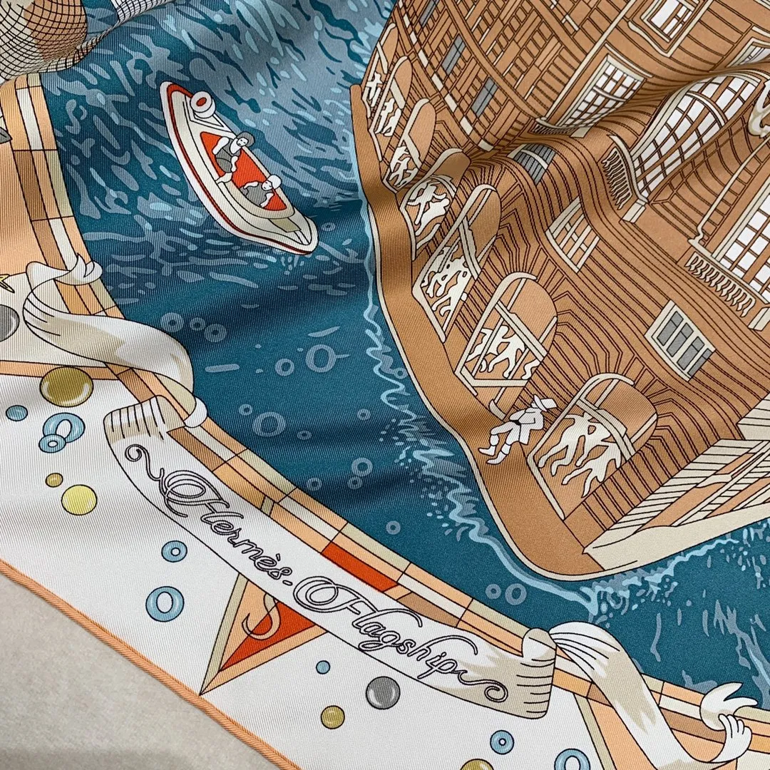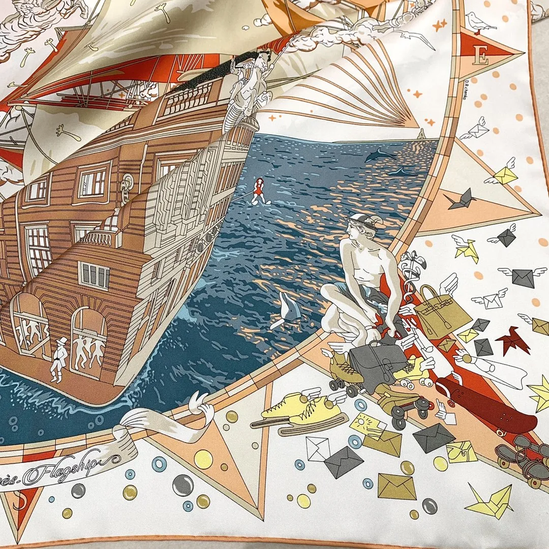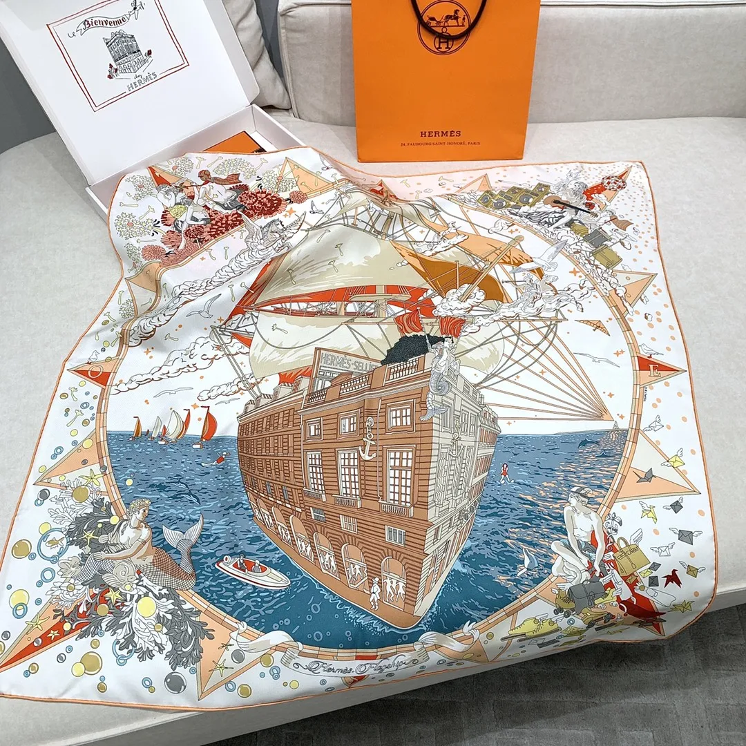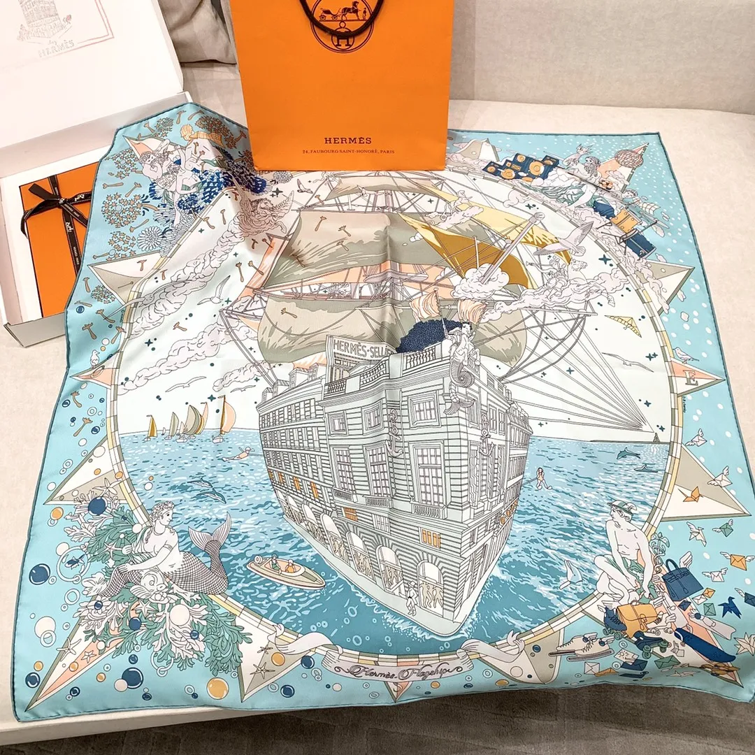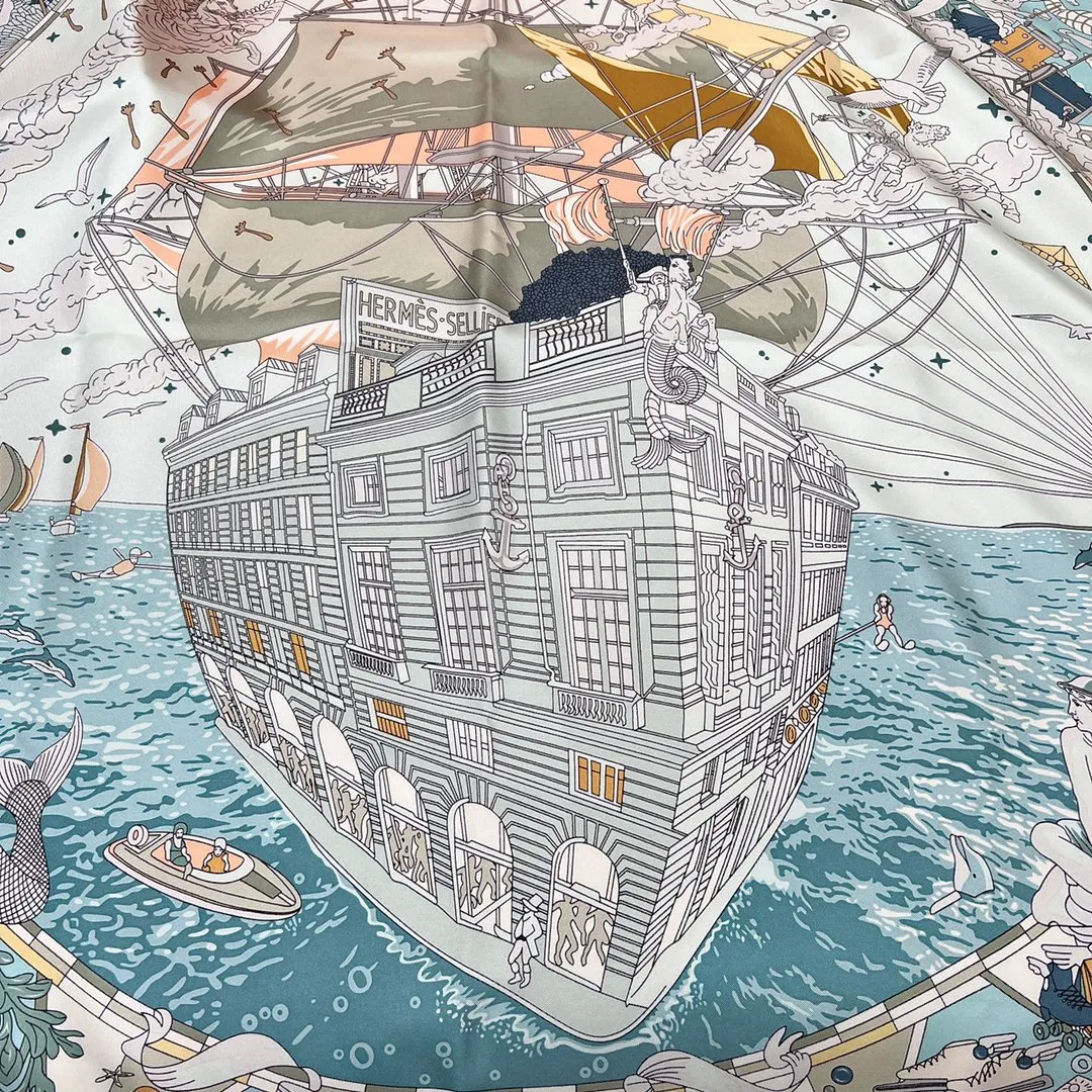 Изысканный шёлковый платок HERMES – это воплощение элегантности и стиля. Выполненный из 100% шелка плотностью 18 мм, он отличается превосходным качеством и тактильными ощущениями. Этот изысканный женский платок от HERMES выполнен из высококачественного шелка. Он имеет уникальный и яркий дизайн, который привлекает внимание. Его дизайн напоминает часть роскошного корабля, украшенную тесаным камнем, а также витрины, словно открывающие окна на праздничную сцену в самом разгаре торжества. В этот момент греческие боги наблюдают за происходящим с легкой завистью, ведь сама атмосфера наполнена магией и величием.