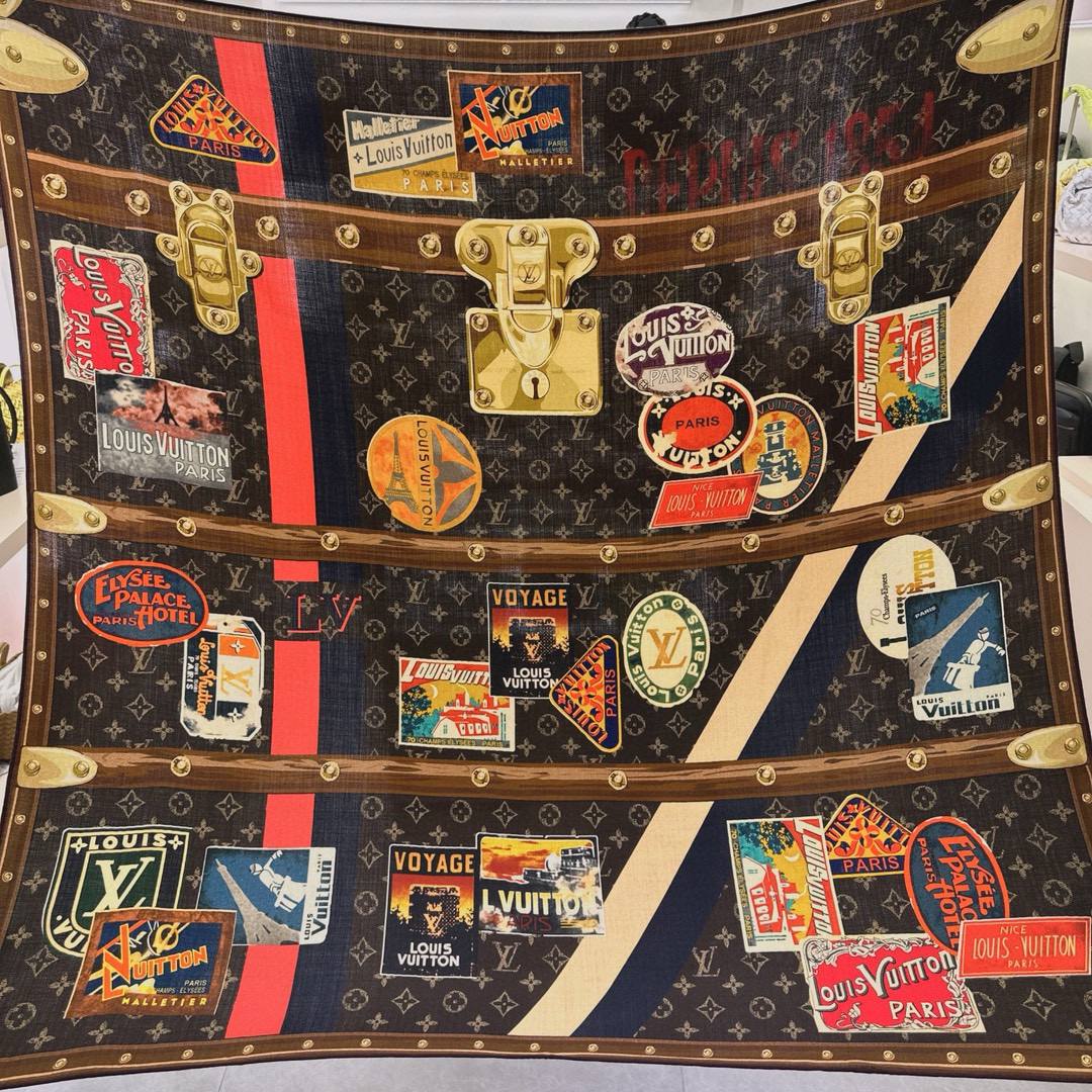 Шарф Louis Vuitton Elysée Palace Hotel Square — это не просто аксессуар, а настоящий кусочек истории и искусства. Состав из кашемира и шелка обеспечивает необыкновенную мягкость и уют, а также делает шарф приятным на ощупь. Дизайн шарфа вдохновлен историей Елисейского дворца, что добавляет ему особого значения. Изображения ретро багажа Monogram и дорожных наклеек не только рассказывают о традициях Louis Vuitton, но и создают уникальную атмосферу путешествий и роскоши.