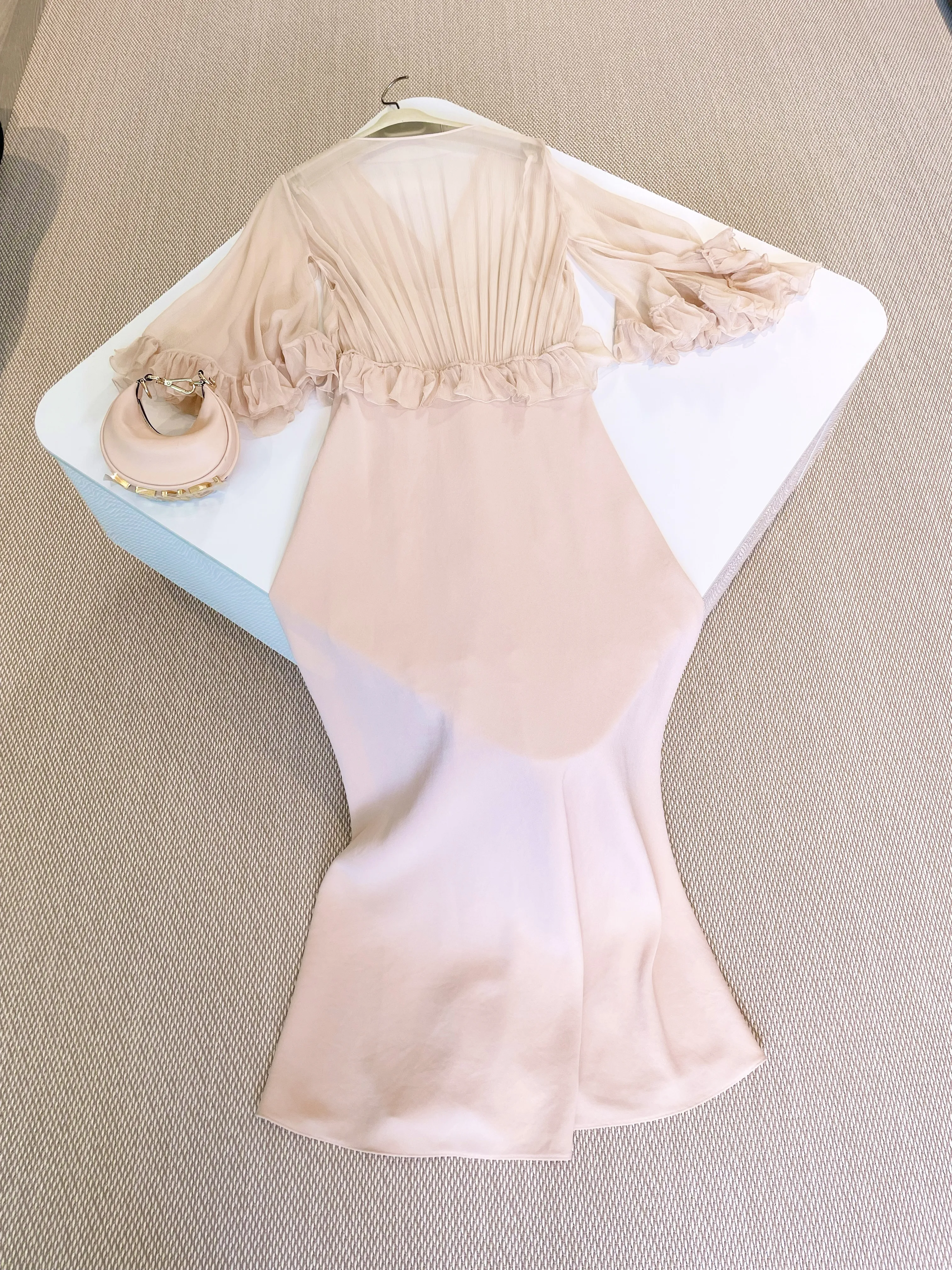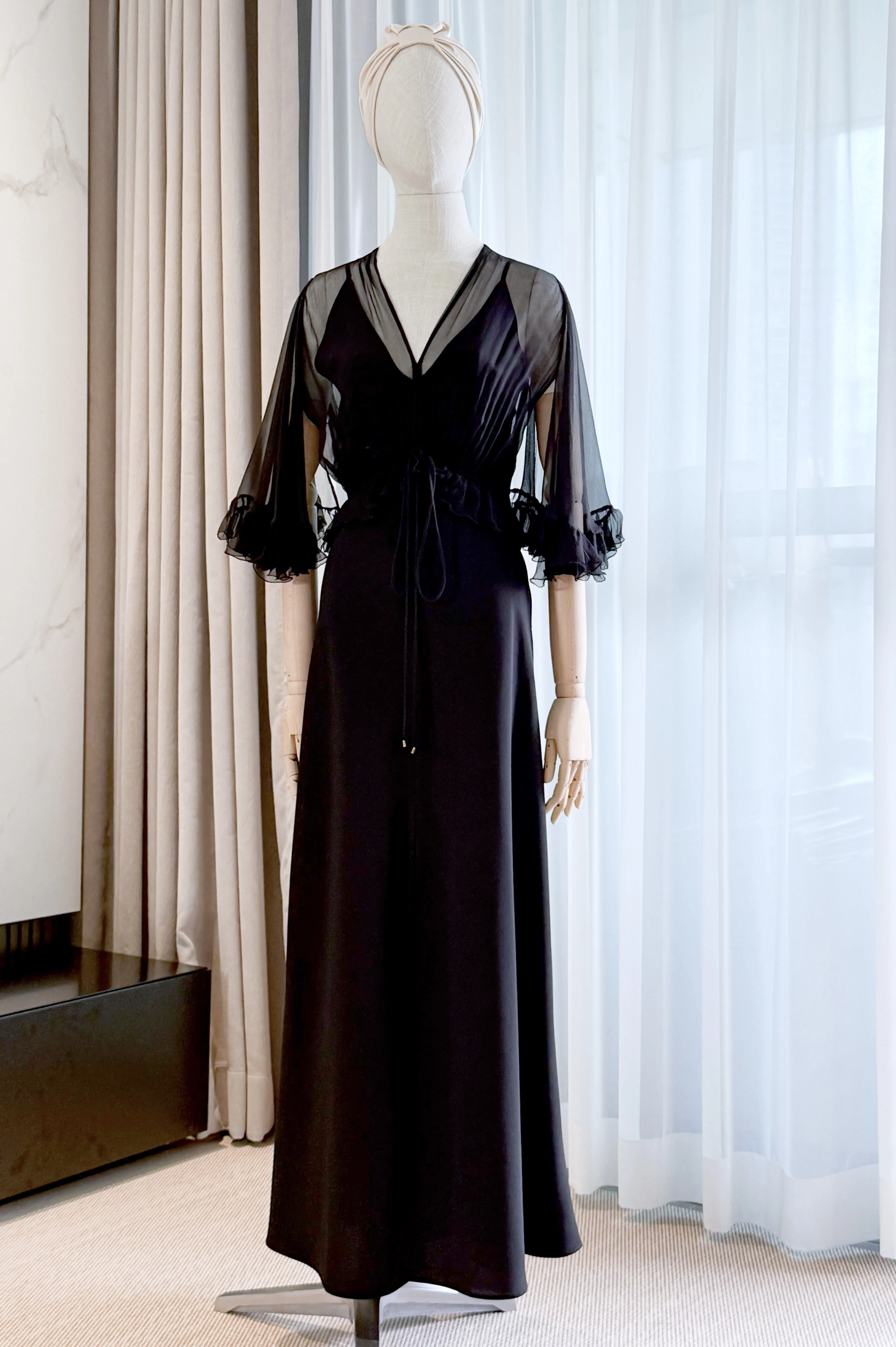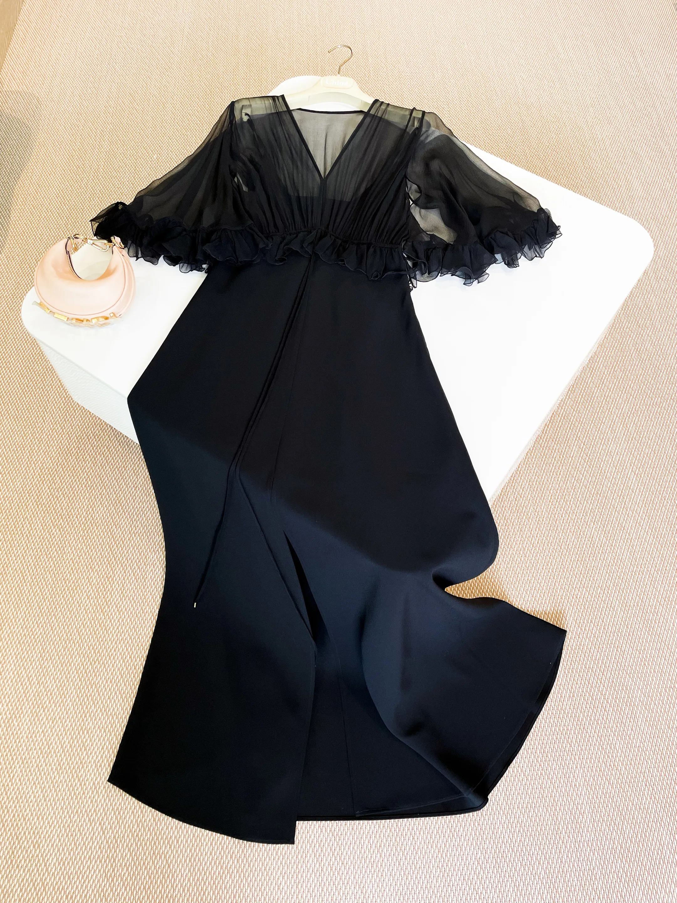 Женское платье CHLOÉ из шелка в стиле бохо впечатляет изысканностью и легкостью. Сочетание черного и телесного цветов создает магическую атмосферу и чарующий контраст. Глубокие V-образные кружевные рукава придают платью элегантность и утонченность, подчеркивая богемный стиль. Внутренняя подкладка гармонично сочетается с независимой перевязкой, позволяя создавать легкие летние образы и подчеркивая женственность. Это платье станет прекрасным выбором для особых случаев и романтических летних вечеров.