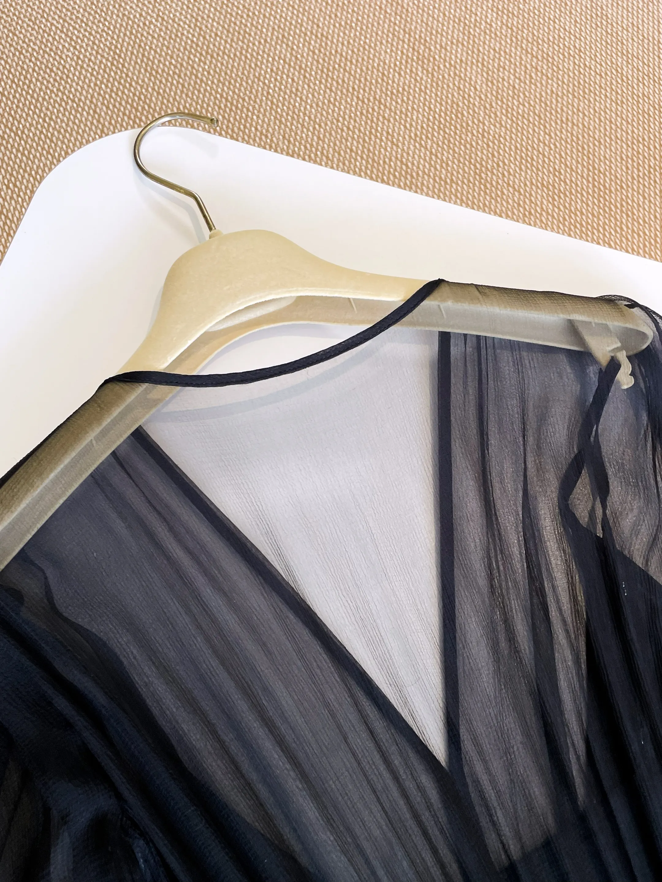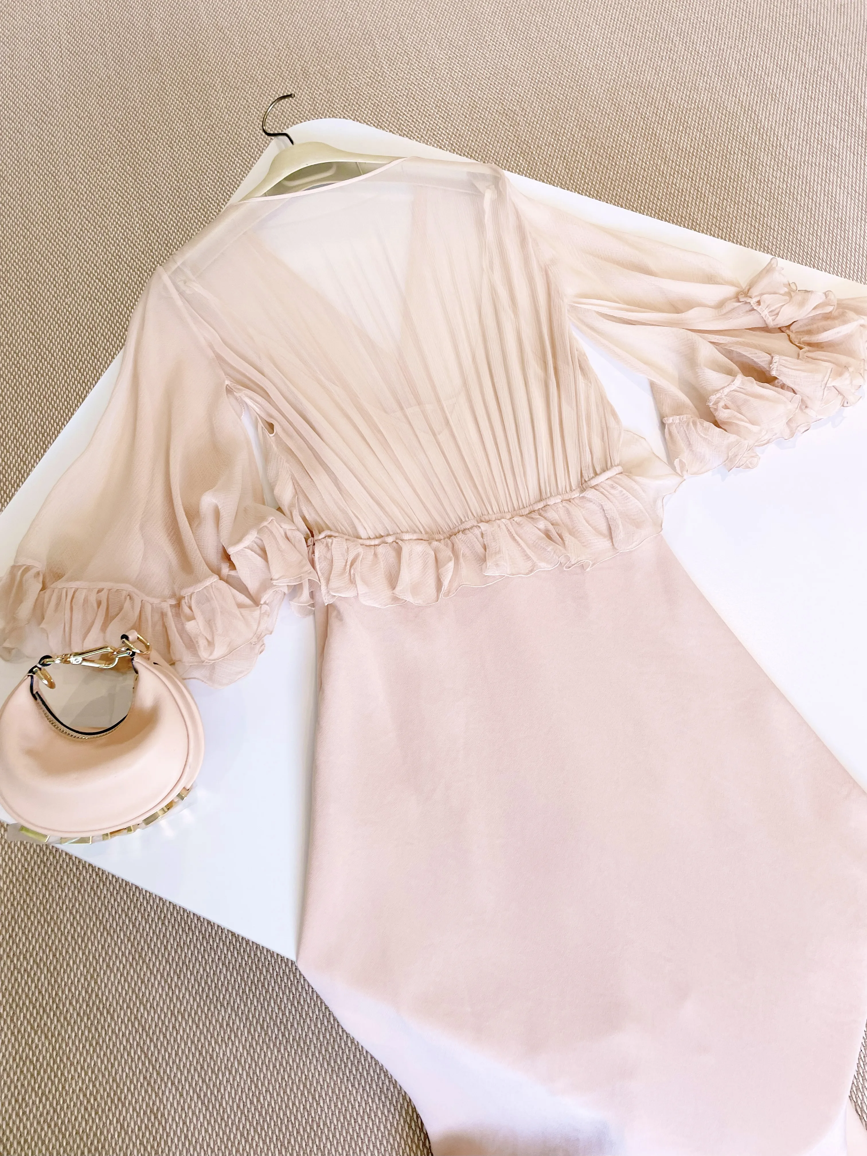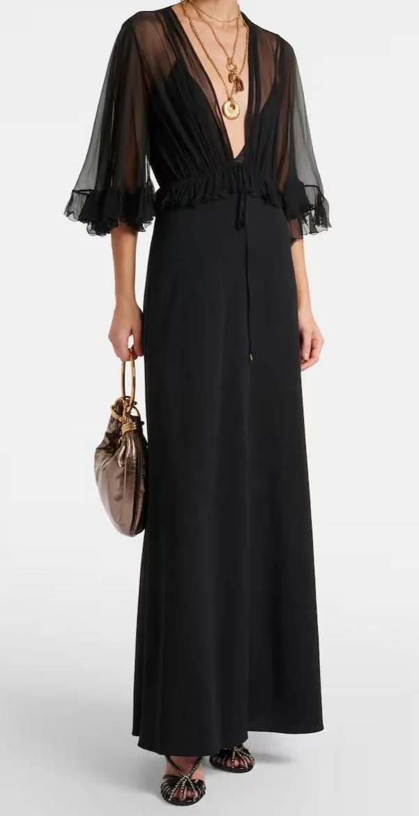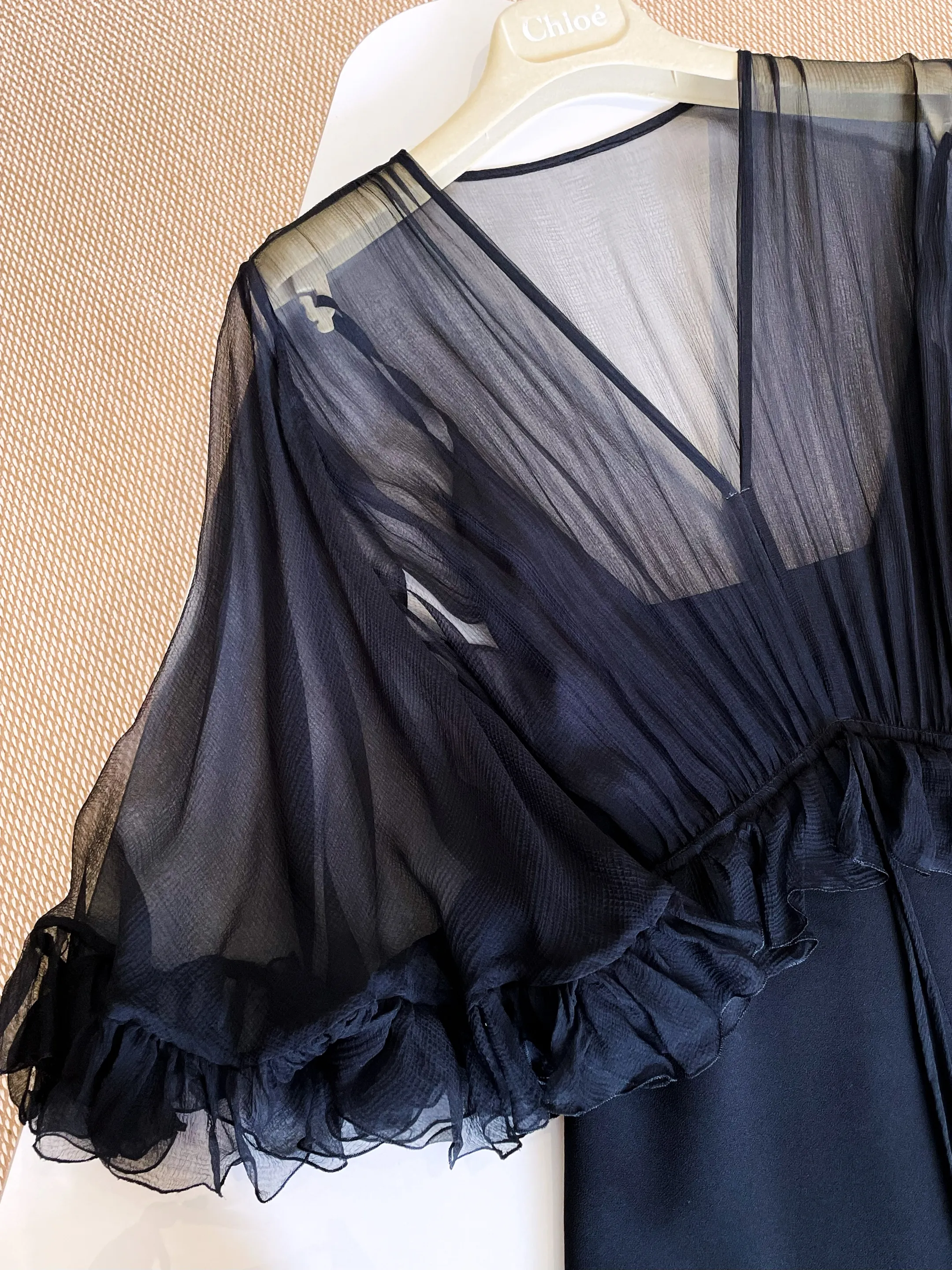 Женское платье CHLOÉ из шелка в стиле бохо впечатляет изысканностью и легкостью. Сочетание черного и телесного цветов создает магическую атмосферу и чарующий контраст. Глубокие V-образные кружевные рукава придают платью элегантность и утонченность, подчеркивая богемный стиль. Внутренняя подкладка гармонично сочетается с независимой перевязкой, позволяя создавать легкие летние образы и подчеркивая женственность. Это платье станет прекрасным выбором для особых случаев и романтических летних вечеров.
