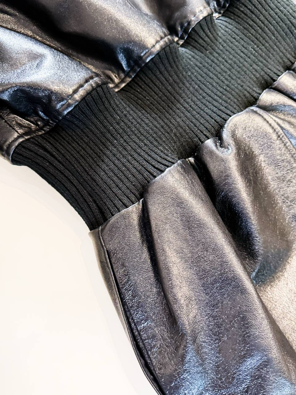 Платье выполнено из премиальной мягкой кожи ягнёнка плотной, но податливой текстуры, которая красиво ложится по фигуре и придаёт образу роскошный, структурированный вид. Широкий отложной воротник и центральная застёжка-молния с декоративной кисточкой придают модели современную динамику. Верхняя часть напоминает укороченный жакет: полуприлегающий лиф с втачными рукавами и аккуратной прострочкой, плотная эластичная резинка на талии мягко подчёркивает силуэт и плавно переходит в расклешённую юбку с лёгкими складками. По бокам — скрытые врезные карманы для удобства и практичности. Длина — чуть выше колена, что делает платье универсальным выбором как для дневных, так и для вечерних образов.